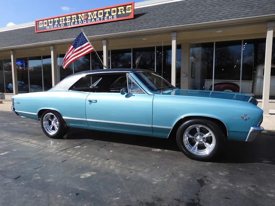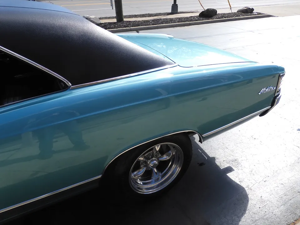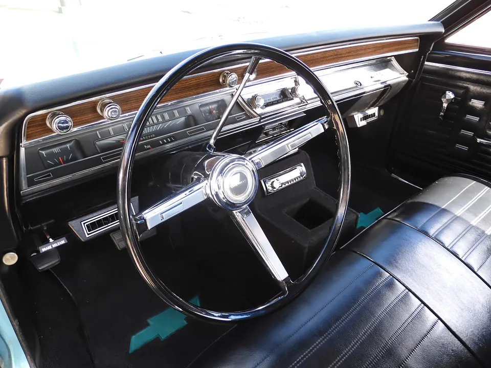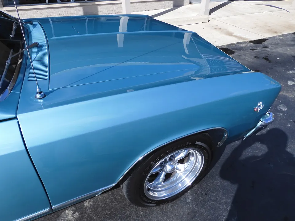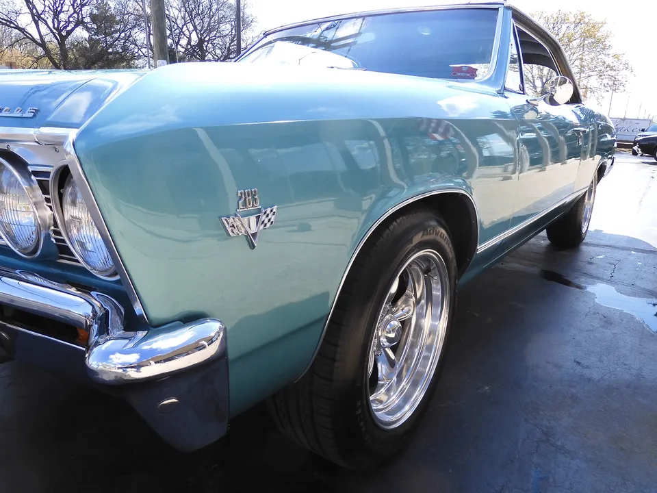 Beautiful factory (K) Emerald turquoise metallic, factory (2) black vinyl top, factory (761) black vinyl interior, matching numbers 283 ci engine, Edelbrock Thunder AVS 800 cfm 4 bbl, Edelbrock Performer EPS polished aluminum intake, Edelbrock Performer Plus camshaft, factory exhaust manifolds, chrome air cleaner & valve covers, Mallory HEI distributor, power steering, power front disc brakes, Vintage air conditioning, automatic transmission, factory bench seat, factory dash, am radio, Pioneer aftermarket radio, Flowmaster dual exhaust with chrome tips, factory 10 bolt 3.23 rear end, 215/60R16 BF Goodrich Advantage TA tires, 16” American Racing Torque Thrust II wheels, 65,000 original miles, 2019 Hot Rod Power Tour Participant, One Clean Bowtie!IN STOCK
