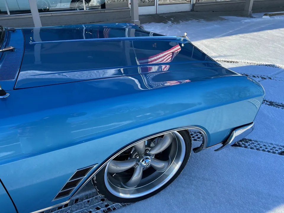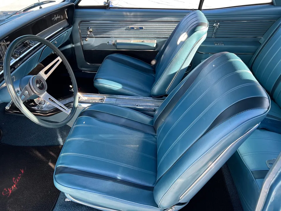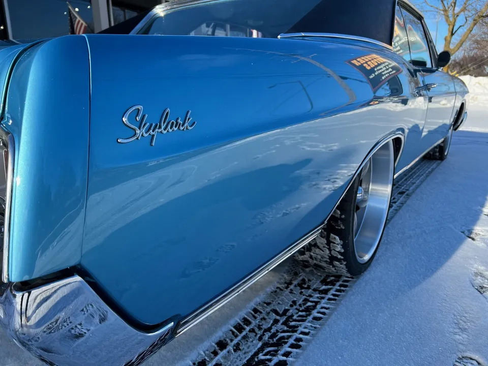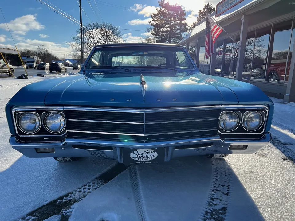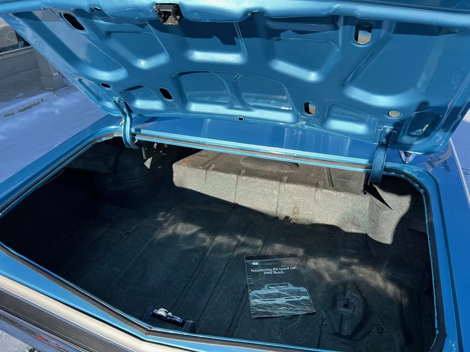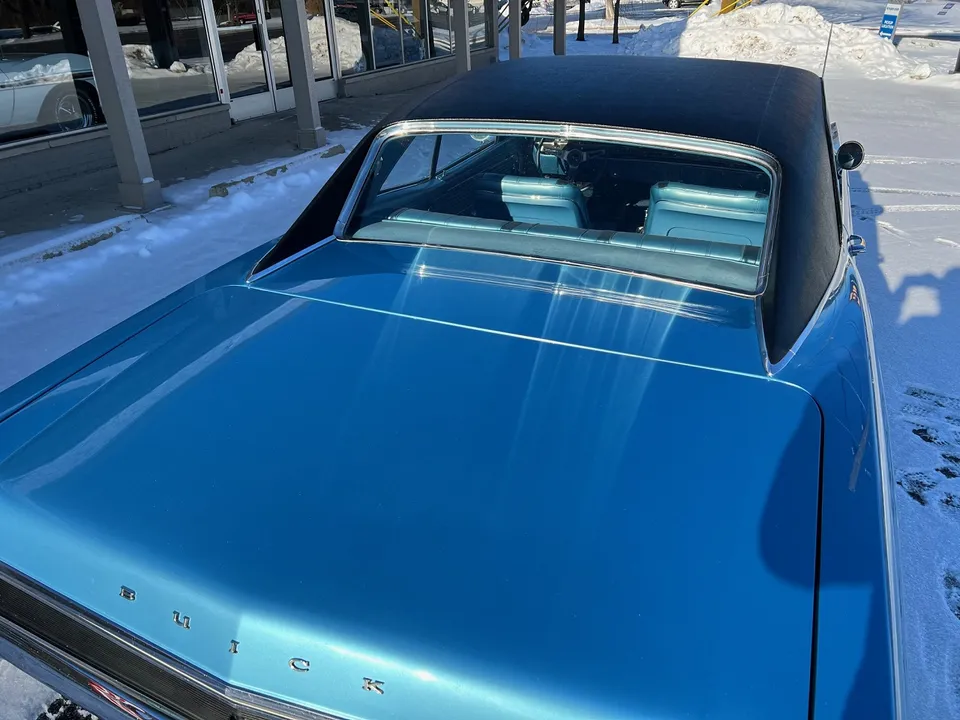 Clean Original State of Washington car, beautiful factory (F) Blue mist metallic, factory black vinyl top, rare factory deluxe blue vinyl interior, original 300 ci/310 Buick Wildcat engine, factory 2 bbl, factory intake & exhaust manifolds, original air cleaner & valve covers, power steering, C5 Corvette power front disc brakes with slotted & drilled rotors, drop spindles, CPP tubular upper & lower control arms, aftermarket front sway bar, 350 turbohydramatic transmission, bucket seats with console & factory tach, Buick Sport steering wheel, factory dash & gauges, original Sonomatic radio, remote drivers mirror, X pipe Flowmaster dual exhaust, 10 bolt rear end with boxed control arms & sway bar, 275/30ZR20 Nitto rear tires, 225/30ZR20 fronts, Coys C5 10” wheels, dual chrome mirrors, Ready to Cruise!IN STOCK