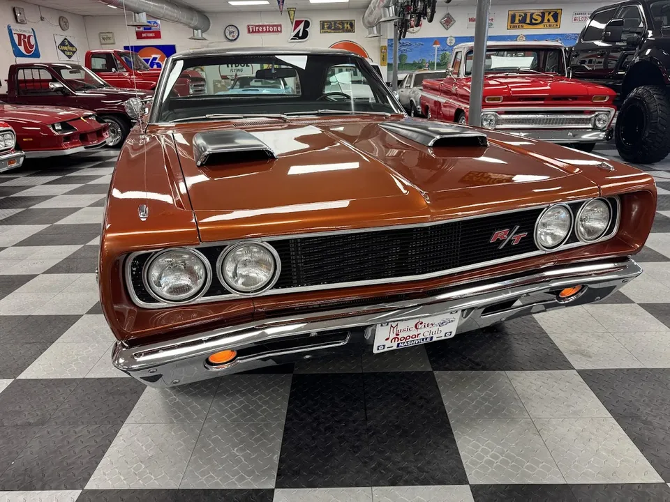 Coming Soon! 1968 Dodge Coronet, beautiful K5 bronze metallic, black vinyl interior, 440 ci engine, 6 pack carbs & intake, , 727 automatic transmission, power steering, power disc brakes, A/C, bucket seat interior with center console, factory tach & gauges, factory steering wheel, working AM radio, 8 3/4 rear axle, 15x8 & 15x10 Crager SS wheels, R/T tribute, Mopar Muscle! $49,900