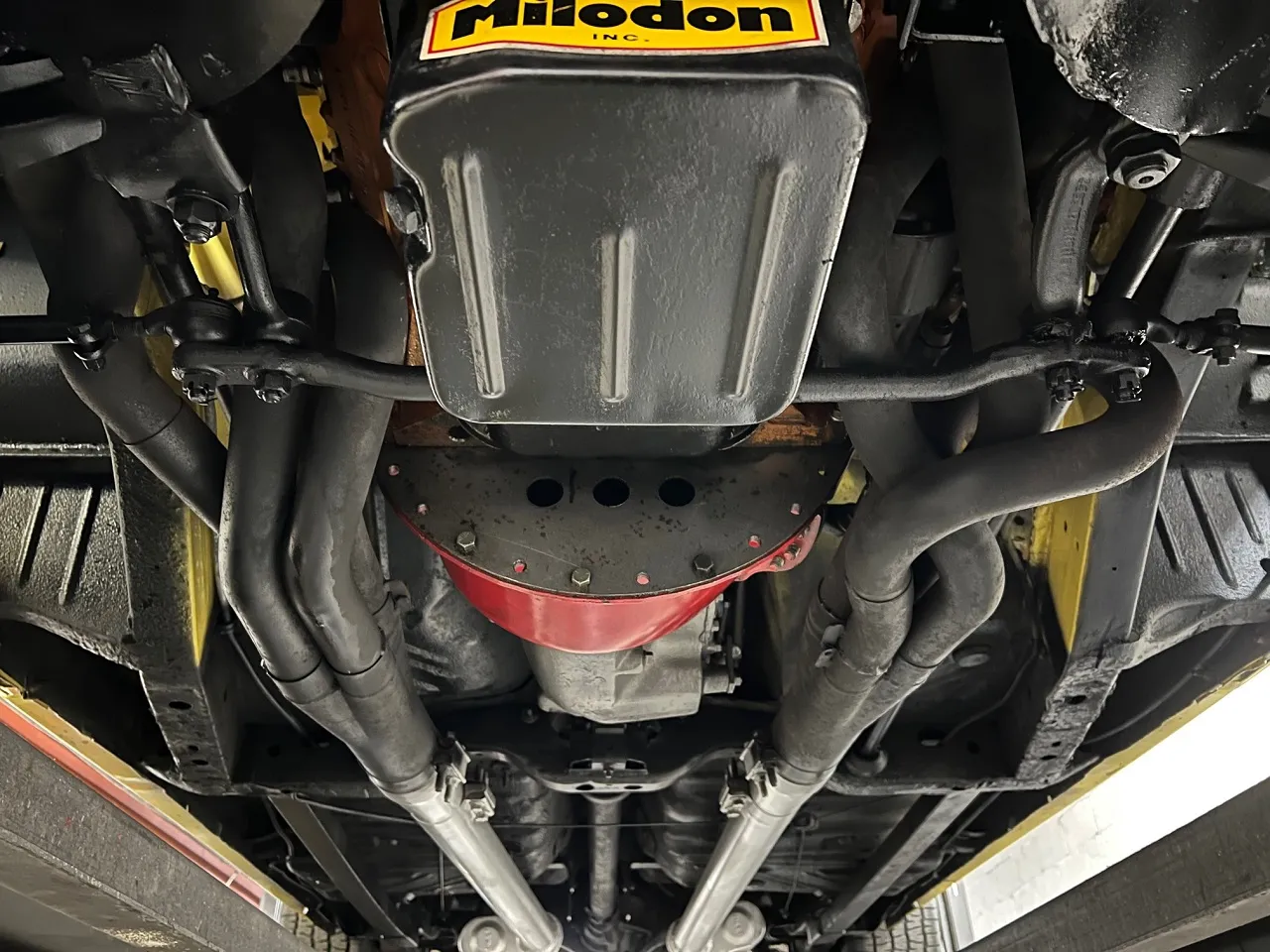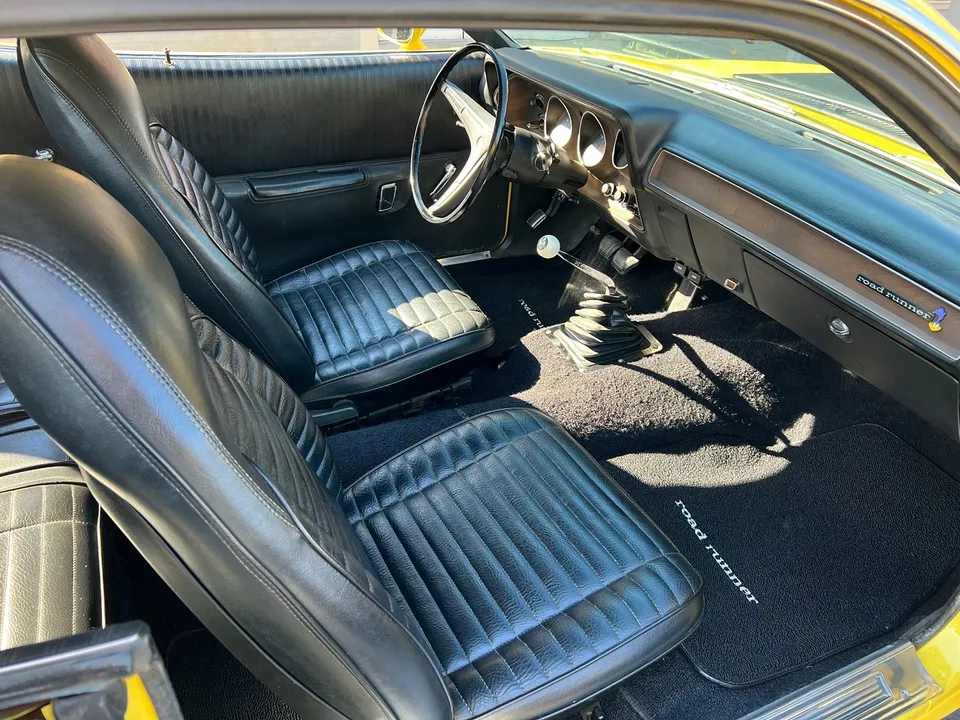 True (RM) Road Runner, beautiful Lemon Twist yellow paint, factory black vinyl interior, 451 ci Stroker engine, factory (D21) 4 speed manual transmission, Edelbrock 4 bbl, Edelbrock Torker aluminum intake, headers, Crane camshaft, double roller timing chain, Hi Volume oil pump, Milidon oil pan, electronic ignition, chrome valve covers, power steering, Mopar radiator with flex fan, bucket seats, Hurst shifter, factory tach & gauges, am radio, remote mirror, Flowmaster dual exhaust with chrome tips, frame ties, 8 ¾ 3.23 Sure Grip rear end, 275/60R15 BF Goodrich Radial TA rear tires, 245/60R15 fronts, 15” Rally wheels, Air Grabber hood, dual sport mirrors, chin spoilers, Mopar Muscle!IN STOCK