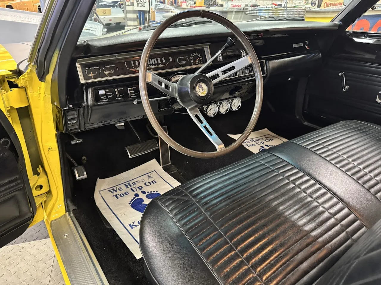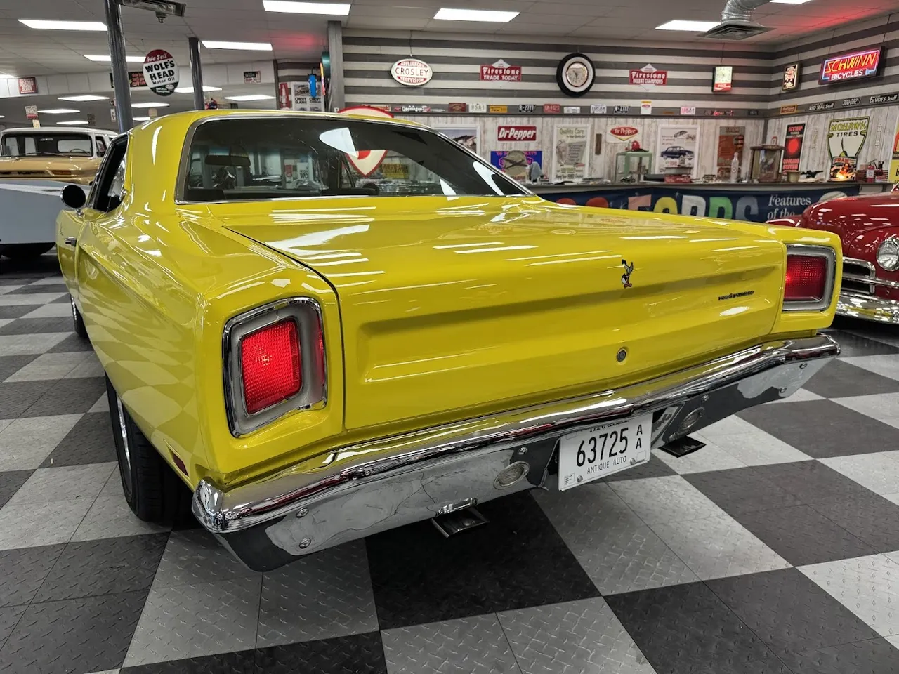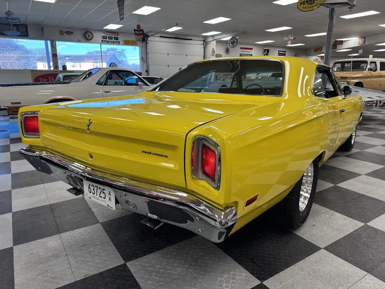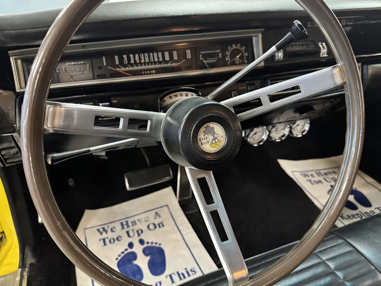 Coming Soon! 1969 Plymouth Road Runner, Competition yellow paint, Black Vinyl interior, 440 ci engine, 727 automatic transmission, Edelbrock carb, HP manifolds, power steering, bench seat interior, factory tach & gauges, factory simulated wood wheel, functional factory AM/FM radio, factory 8 3/4 rear axle, New 15” American Racing Torque Thrust D wheels, Beep! Beep! $49,500
