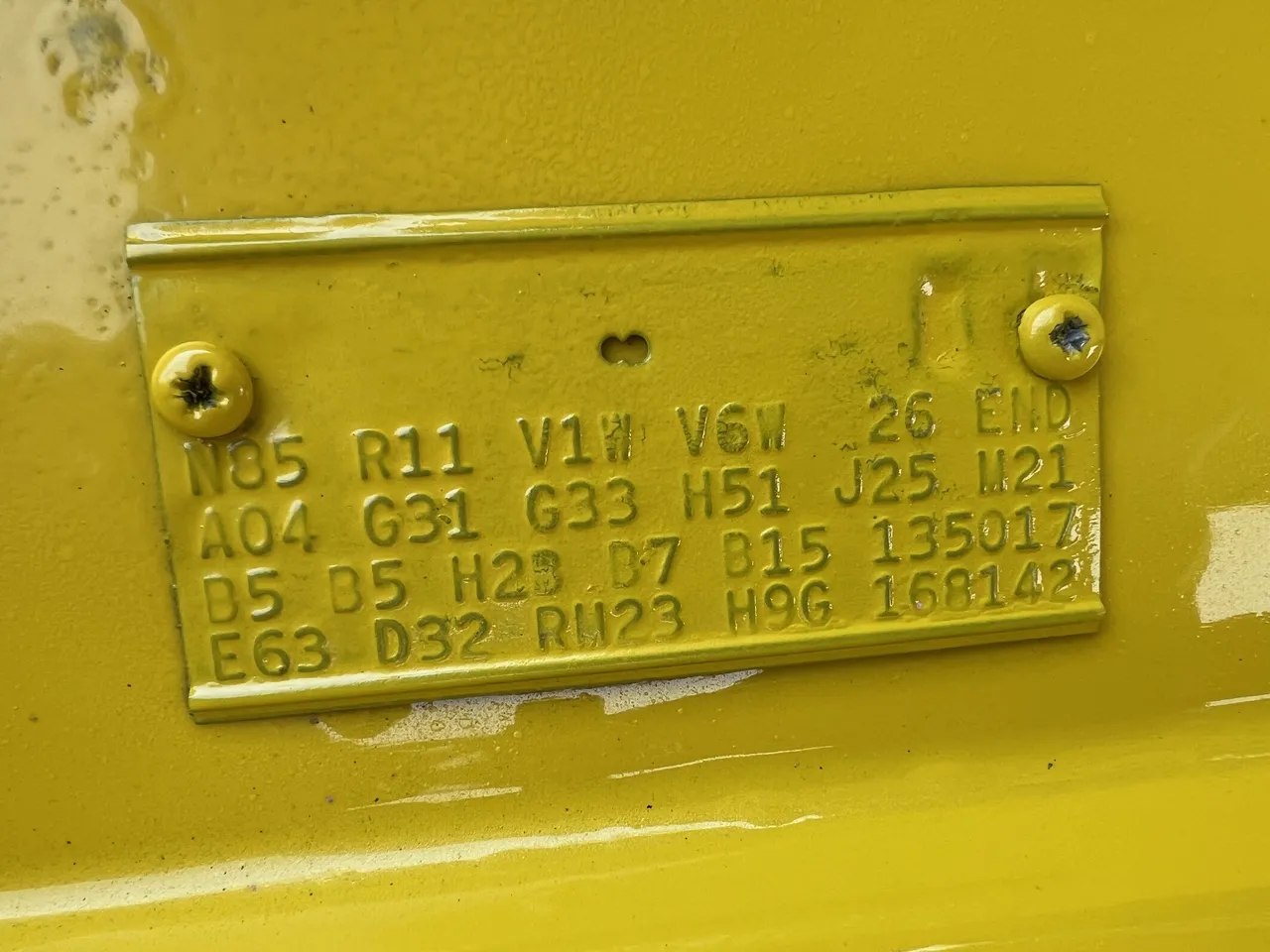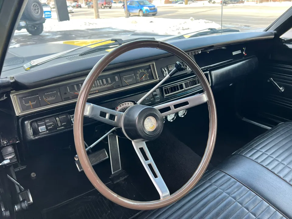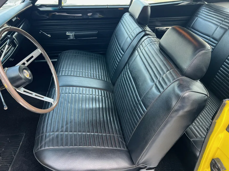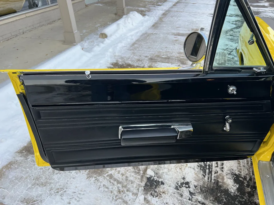 Recent Body-Up Restoration, True (RM) Road Runner, beautiful Competition yellow paint, black vinyl interior, black performance hood striping, mild built 440 ci engine, Edelbrock 4 bbl, factory intake & exhaust manifolds, electronic ignition, factory air cleaner, Mopar Performance aluminum valve covers, power steering, 727 Torqueflite automatic transmission, factory bench seat, factory steering wheel, factory tach & gauges (aftermarket under dash), factory am-fm radio, dual exhaust, factory 8 ¾ 3.23 rear axle, 275/60R15 rear tires, 215/65R15 fronts, 15” American Racing Torque Thrust D wheels, dual chrome mirrors, Mopar Muscle, Beep! Beep!