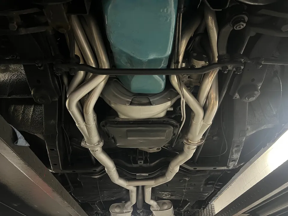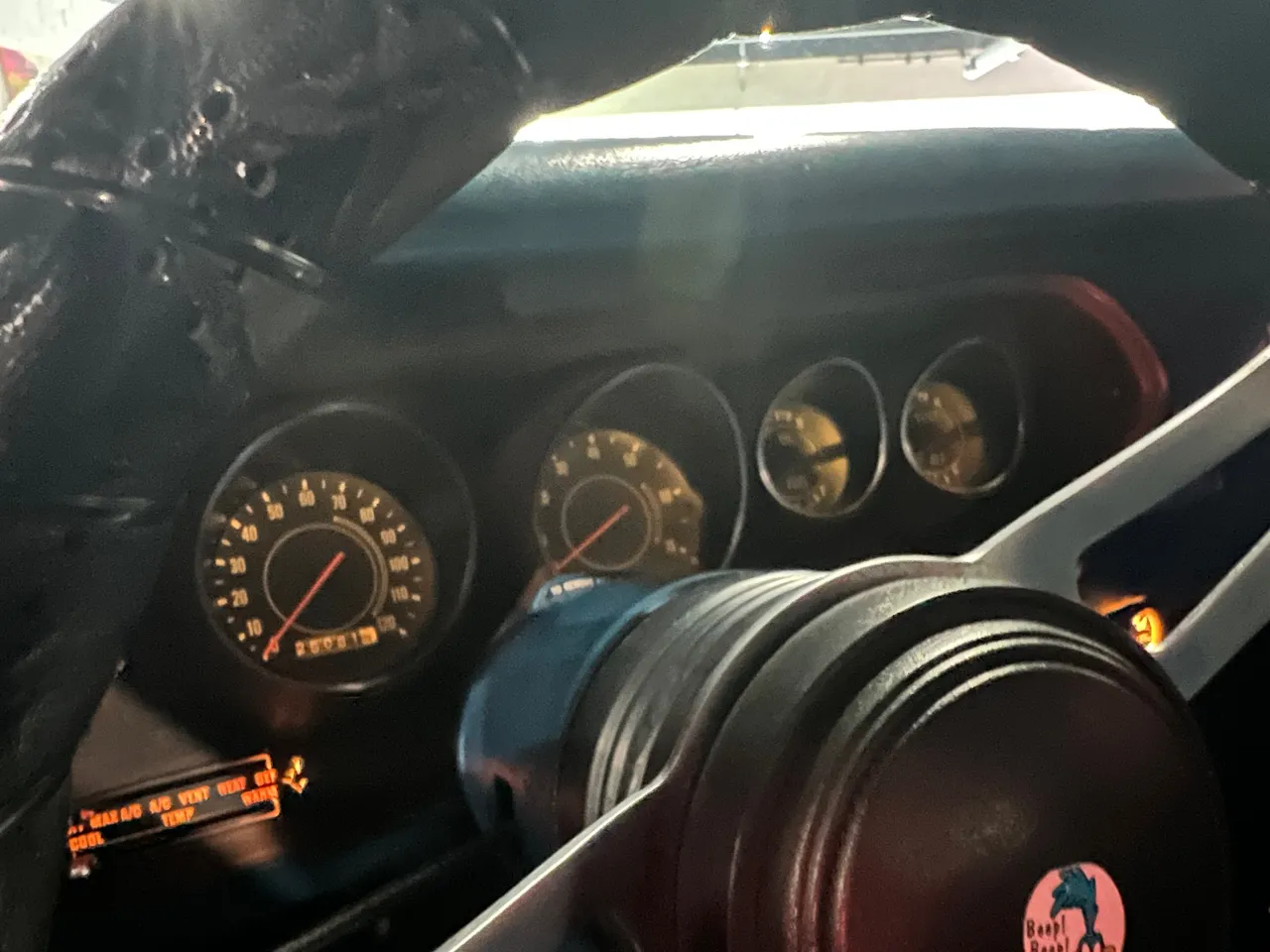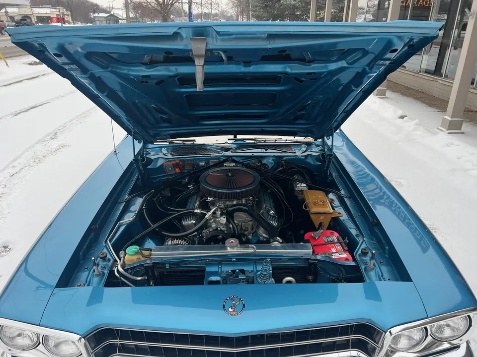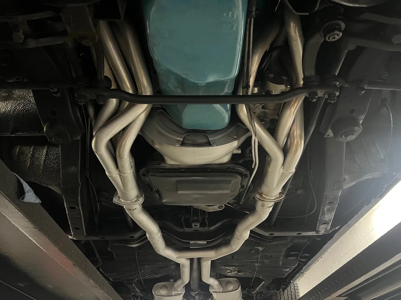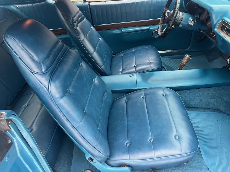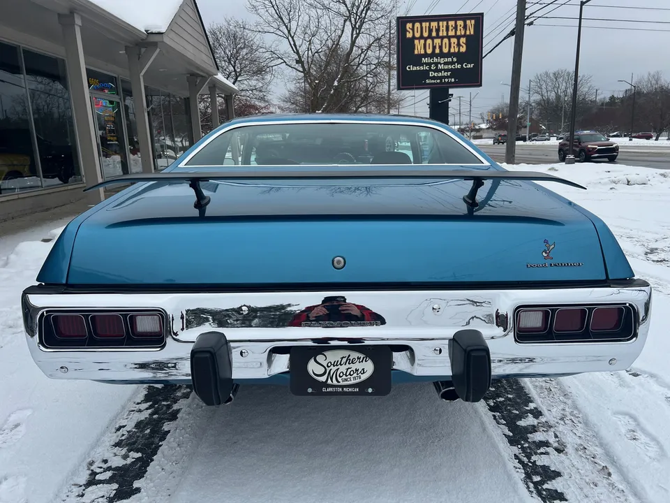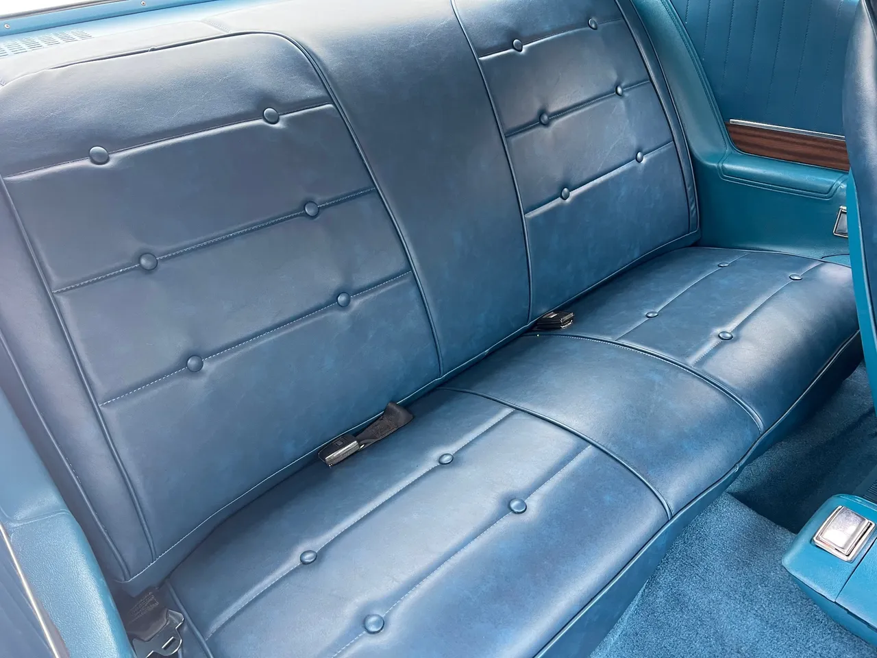 True (RM) Road Runner, factory B5 blue metallic, factory B6 blue vinyl interior, 74’ date coded 360 ci enginge, Demon 4 bbl, Mopar Performance aluminum intake, Doug’s ceramic headers, K&N filter top air cleaner, Mopar Performance valve covers, electronic ignition, March billet pulley’s & brackets, power steering, power front disc brakes, factory air conditioning, aluminum radiator with dual electric fans, 727 Torqueflite automatic transmission, factory bucket seats with center console, Pistol Grip shifter, Tuff wheel, factory Rally dash, Audiosounds radio, remote driver’s mirror, H-pipe dual exhaust with machine gun tips, 8 ¾ 3.23 rear axle with sway bar, 295/60R15 BF Goodrich Radial T/A rear tires, 245/60R15 fronts, 15” chrome Rally wheels, factor Power Bulge hood, Go Wing, hood pins, Mopar Muscle!