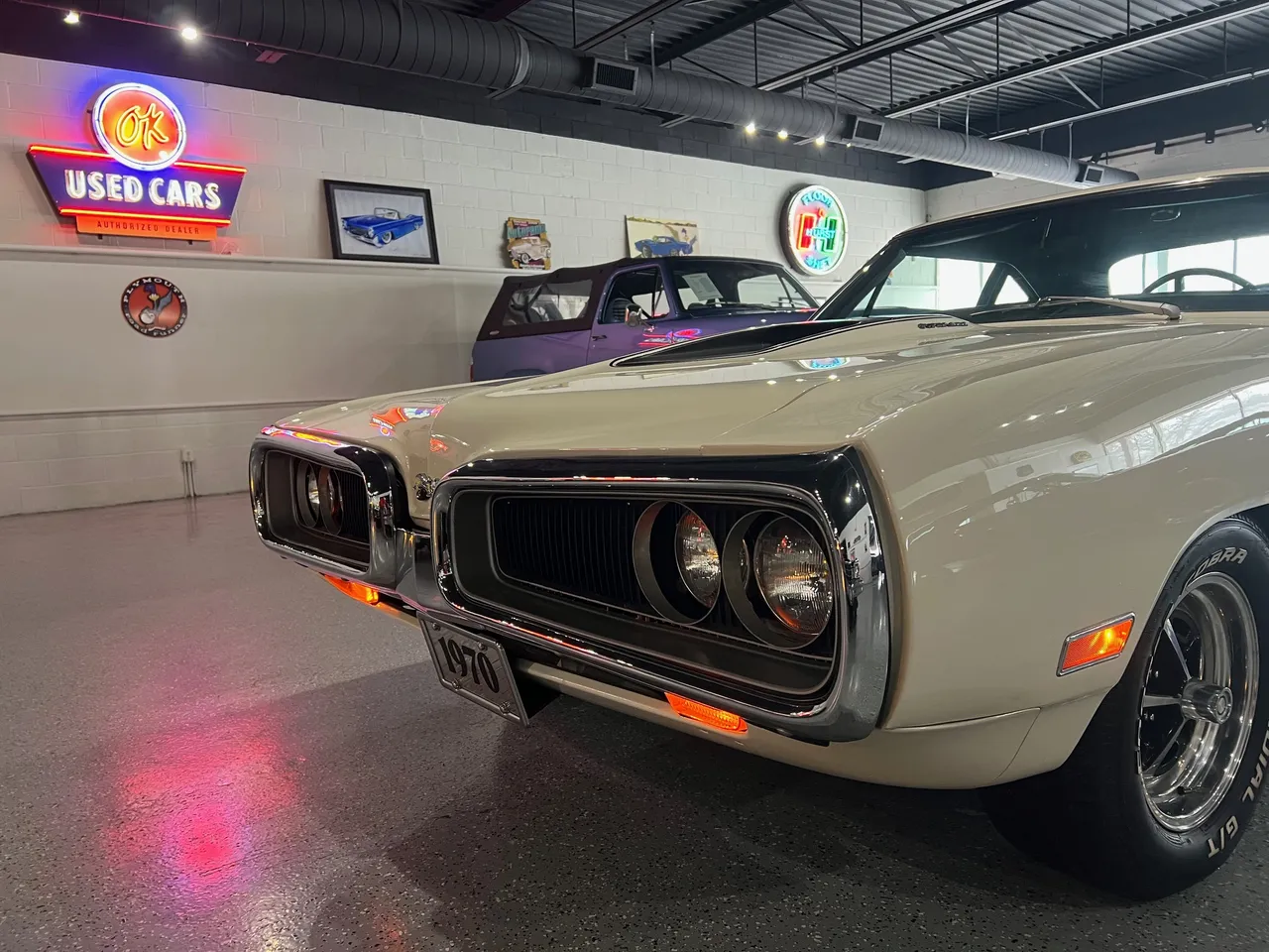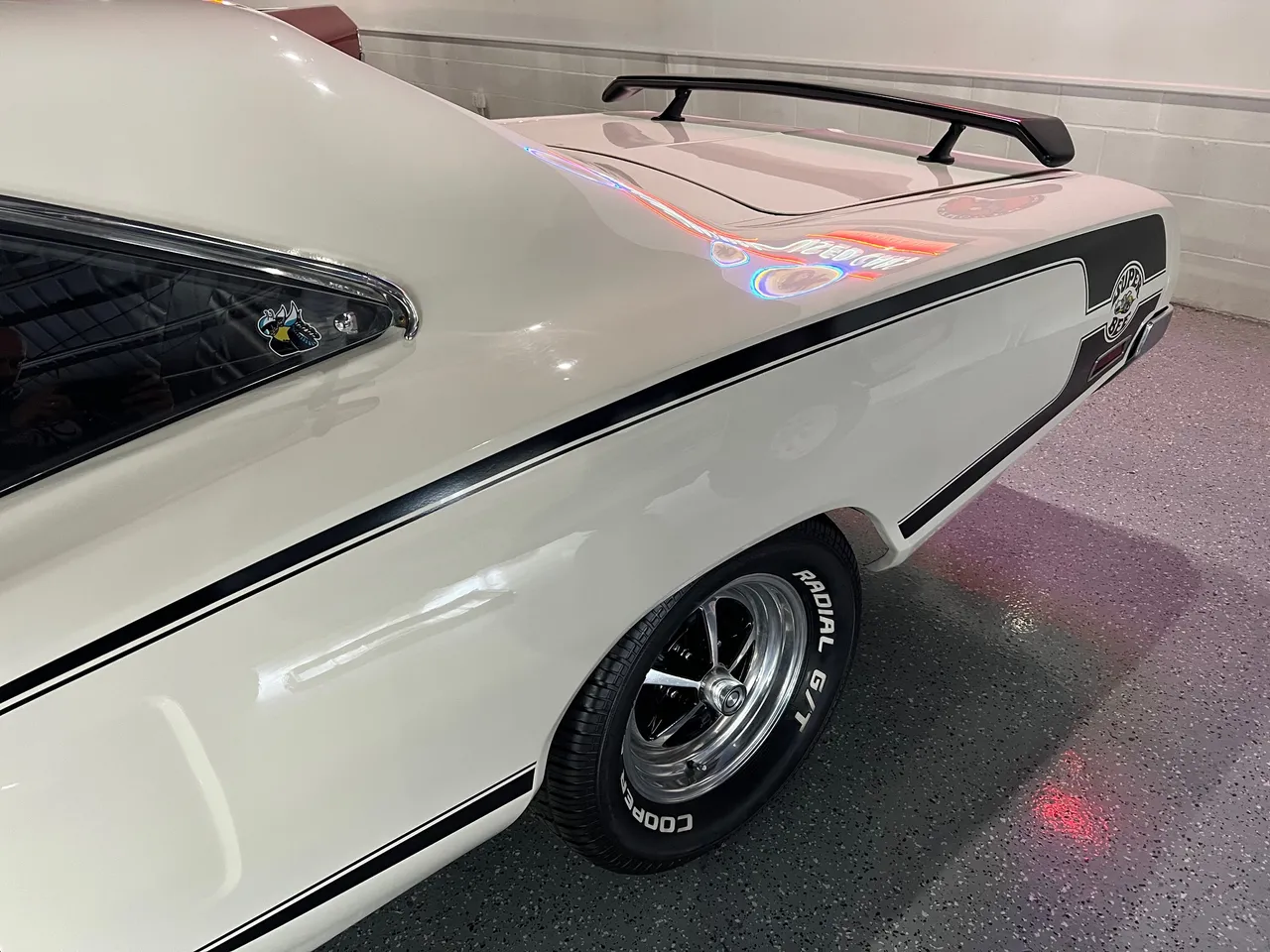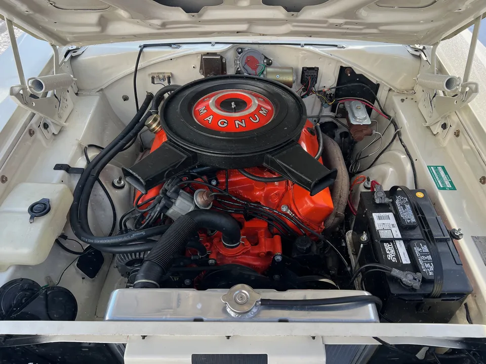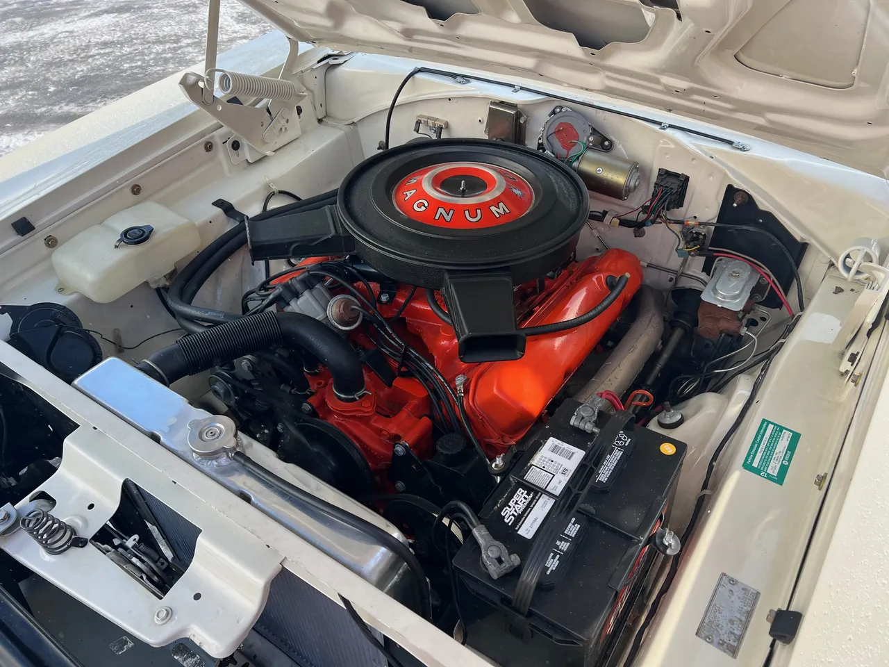 True (WM) Super Bee, clean Georgia car, Recent Body-Up Restoration, beautiful factory (W1) white car, black Bee striping, factory (X9) black vinyl interior, mild build 440 ci engine, factory (D21) 4 speed manual transmission, 650 Edelbrock 4 bbl, factory intake & exhaust manifolds, electronic ignition, dual snorkel air cleaner, factory valve covers, power steering, Wilwood front disc brakes, aluminum radiator, factory bench seat, factory Rally dash, original am radio, Hurst Pistol Grip shifter, rear defog, dual exhaust with chrome tips, factory 8 ¾ 3,23 Sure Grip with rear sway bar, 295/60R15 Cooper rear tires, 245/60R15 fronts, 15X8 billet Magnum 500 wheels, rear spoiler, factory jack with spare, Mopar Muscle!