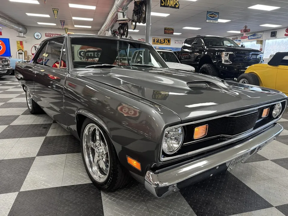 Coming Soon! 1971 Plymouth Valiant Resto-Mod, Graphite Gray Metallic Exterior, Black leather interior, 418 ci stroker engine, Tremec 5 speed, rack & pinion steering, Wilwood front disc brakes, CVF billet front runner, Vintage A/C, custom black bucket seat interior with center console, custom smoothed dash with digital gauges, tilt column, billet steering wheel, touch screen stereo, power windows, custom trunk upholstery with subwoofers, 8 3/4 rear axle w/391 sure grip, mini-tubbed, tubular K member with tubular suspension & coil overs, Bonspeed 17x8 and 17x11 Billet wheels, custom built hood, No Expense Spared Custom Built Resto Mod! $52,900