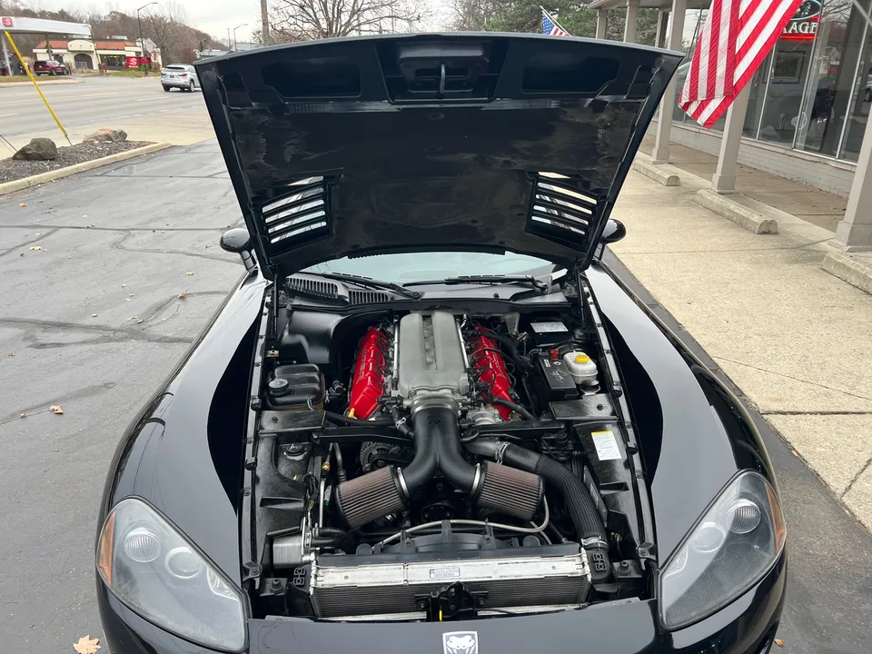 Beautiful Viper Black paint, black leather interior, black convertible top, V10 578 hp engine professionally built by Prefix Motorsports, Designed & Tuned by Mr. Viper (Dick Winkles), all Gen 5 forged internals, 6 speed manual transmission, K&M cold air intake, factory air conditioning, ABS 4-wheel disc brakes, new leather & suede seats, factory tach & gauges, center console with factory shifter, factory am-fm-cd sound system, power windows, remoted mirrors, Cat Delete Borla exhaust system, Eibach 1” lowering springs, 355/30ZR19 Pirelli rear tires, 295/30ZR18 fronts, factory 18 & 19” alloy wheels, Singed by Bob Lutz & Roy Sjoberg, 87,000 original miles, Ready to Cruise!