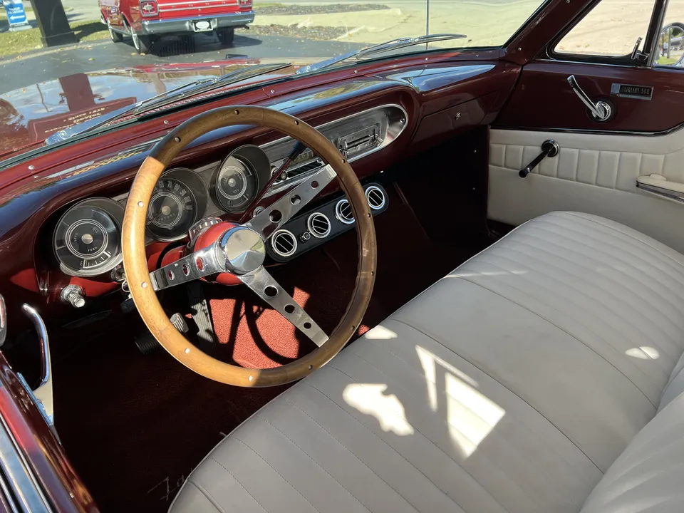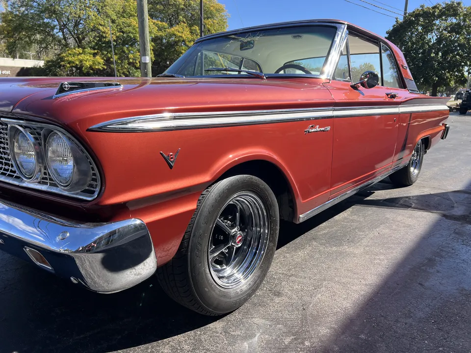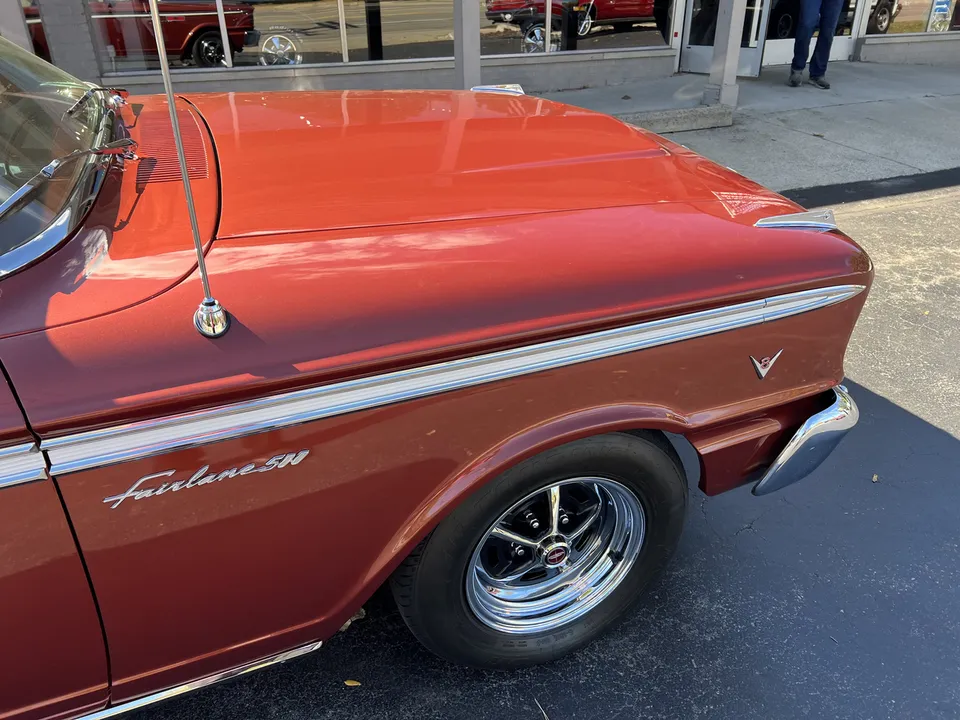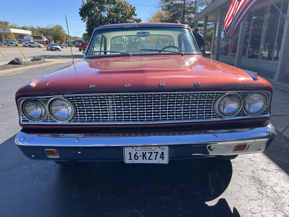 Sneak Peek! 1963 Ford Fairlane 500, beautiful factory (V) Chestnut metallic car, white vinyl interior, 302 ci engine, automatic, air conditioning, factory bench seat, dual exhaust, factory 3.25 year axle, Magnum 500 wheels, Ready to Cruise! $29500