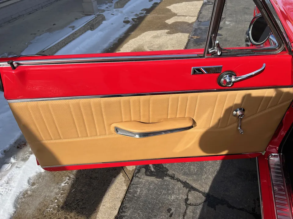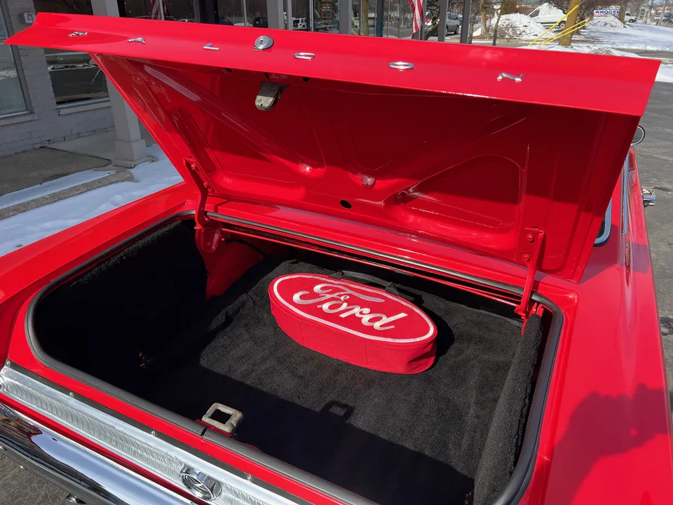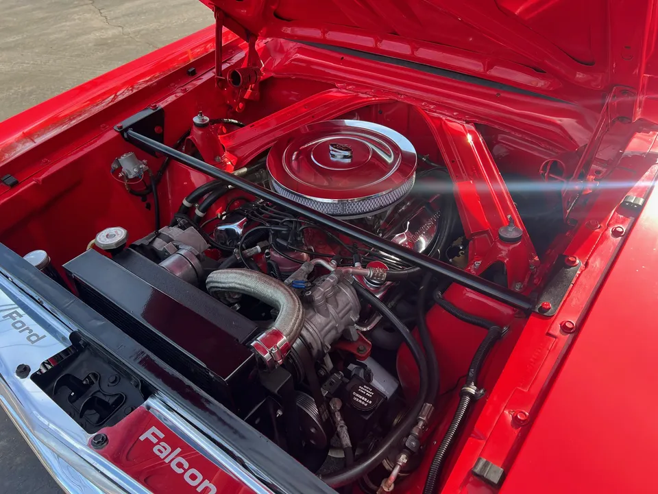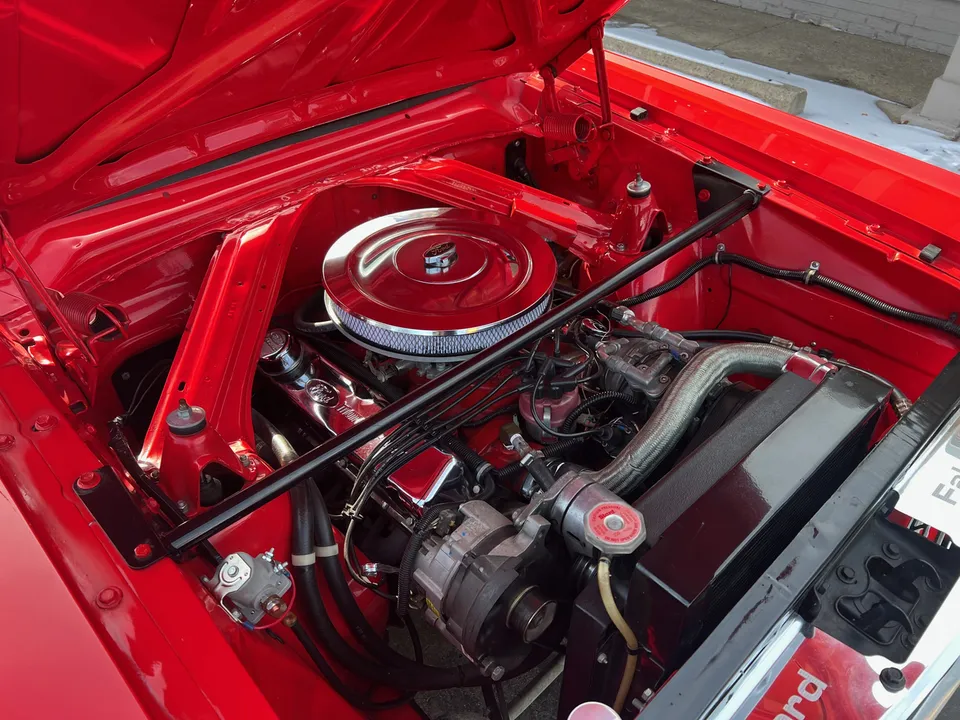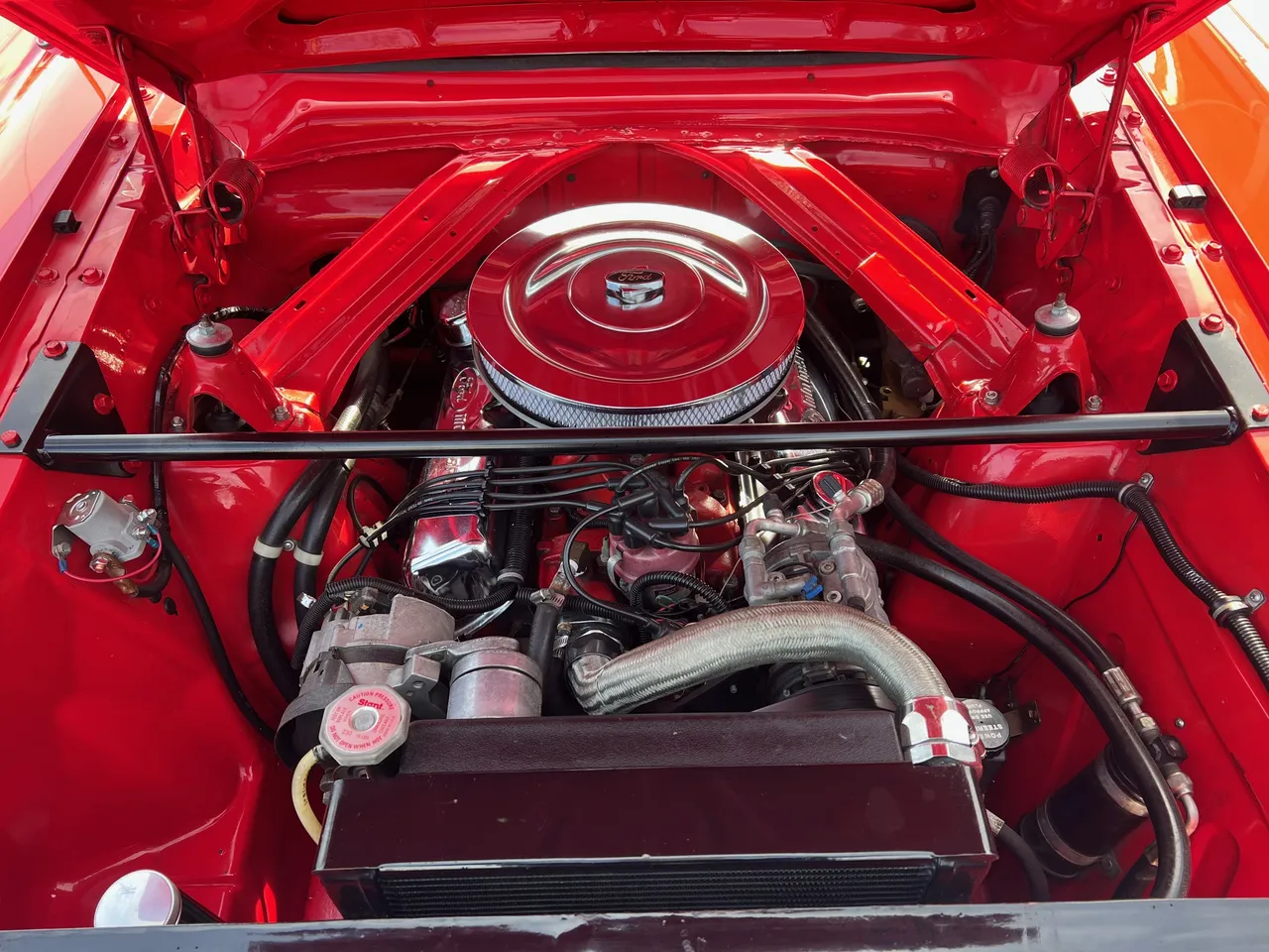 Custom Built Restomod, stunning Viper red paint, custom Saddle leather interior, 93’ 302 ci engine, Edelbrock 4 bbl, Edelbrock aluminum intake, headers, chrome air cleaner, Motorsports chrome valve covers, Mallory distributor, power rack & pinion steering, aftermarket front sway bar, power front disc brakes, air conditioning, serpentine pulley system, aluminum radiator with electric fans, automatic overdrive transmission, adjustable bucket seats with center console, tilt column with billet wood wheel, Dakota digital dash, JVC custom sound system with custom kick panel speakers, Flowmaster dual exhaust with chrome tips, Ford 3.50 traction-lock rear axle with traction bars, 245/45ZR17 BF Goodrich GForce Comp 2 rear tires, 215/45R17 fronts, 17” chrome Eagle wheels, finished trunk area, dual chrome mirrors, Drive Anywhere!