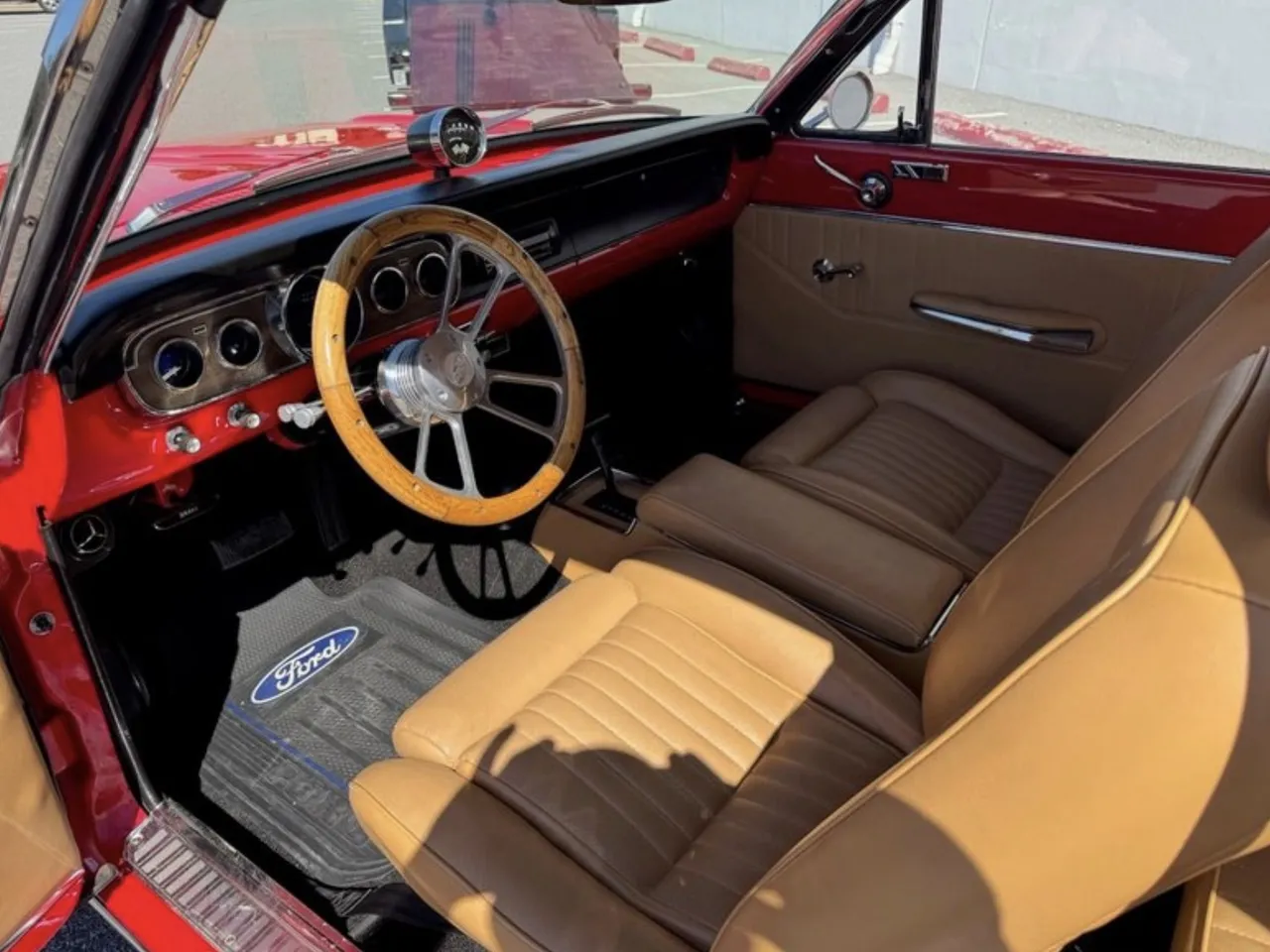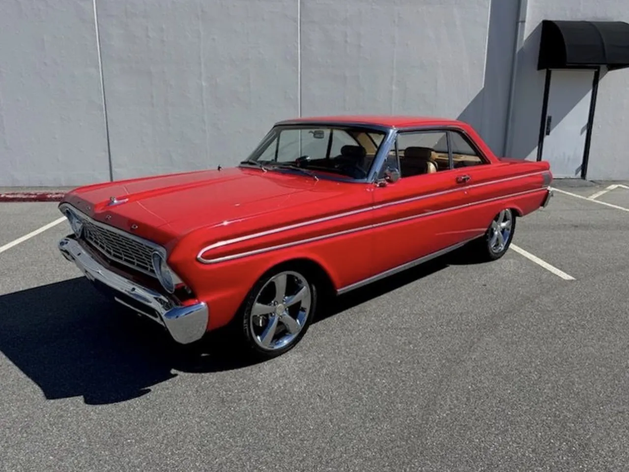 Coming Soon! 1964 Ford Falcon Futura, stunning Torch red pant, custom tan leather interior, 302 ci engine, automatic overdrive transmission, power steering, front disc brakes, air conditioning, bucket seats with center console, Dakota digital dash, tilt column with billet wheel, dual exhaust, custom wheels, Ready to Cruise! $42,900