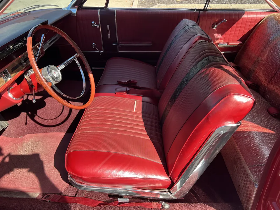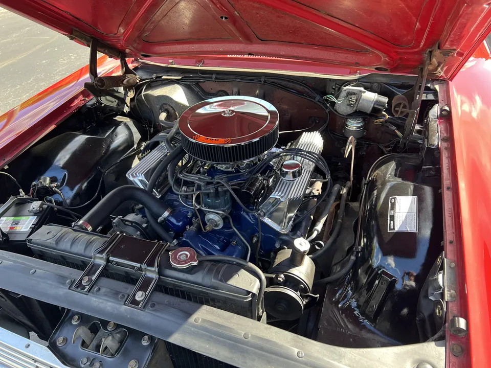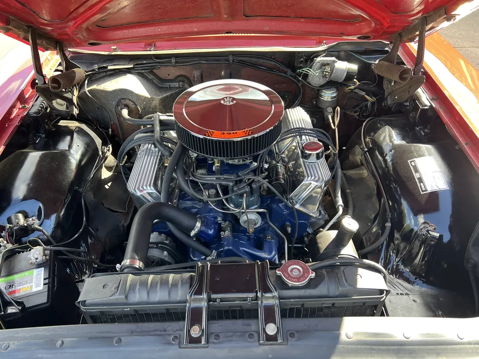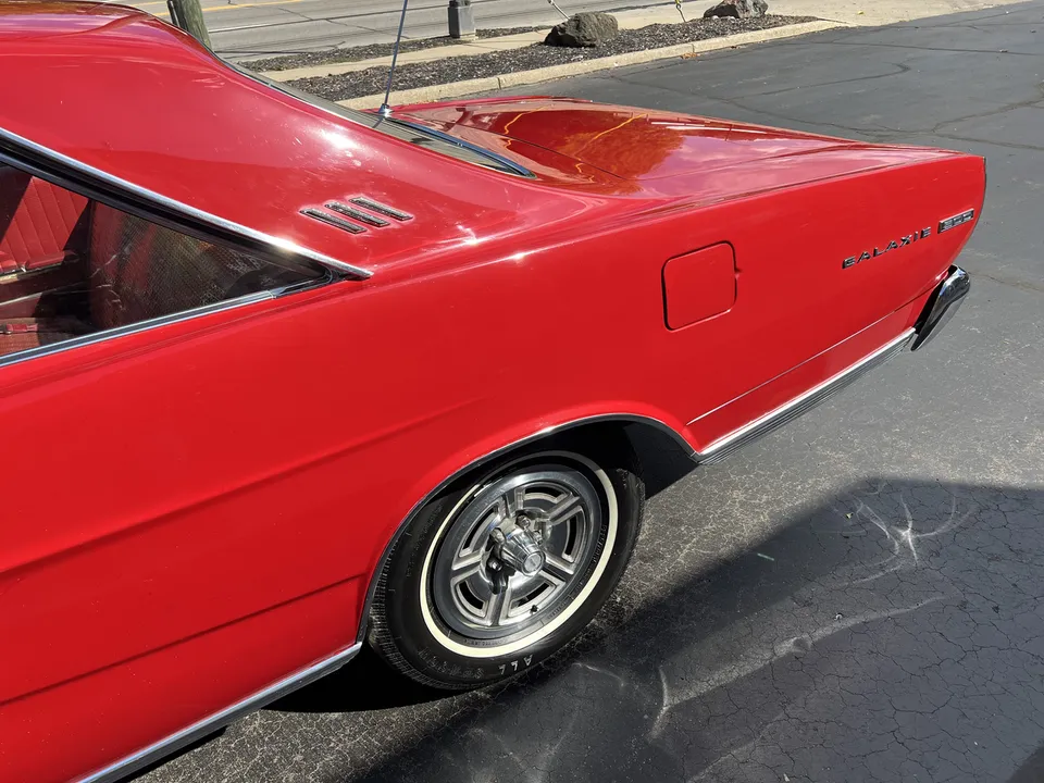 Sneak Peek! 1966 Ford Galaxie 500, 1 owner car with 32,000 original miles, original (T) red paint, original (65) red interior, factory (Y) 390 ci engine, chrome air cleaner & finned aluminum valve covers (comes with originals), factory C6 automatic transmission, power steering, factory bench seat, original radio, remote driver's mirror, factory dash & gauges, factory exhaust, factory 3.00 rear axle, white wall tires with factory wheel covers, factory jack with spare, recent mechanical restoration, Ready to Cruise! $24,900