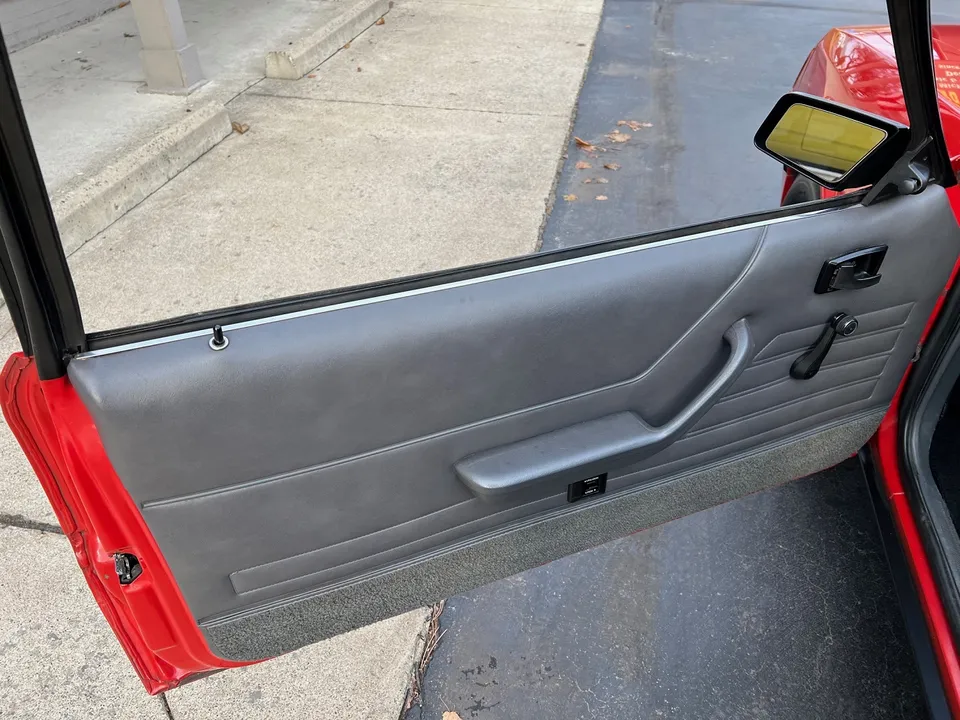 2 Owner 26,000 original mile car, factory GT hatchback, factory (2E) Canyon red with black striping, factory (A) Charcoal cloth interior, factory (S-C) Sunroof car, original 5.0 liter 4V HO engine, factory Borg Warner 5 speed manual transmission, power steering, power disc brakes, factory air conditioning, bucket seats with console, factory shifter, factory tach & gauges, Panasonic am-fm-cassette, power locks, rear defog, cruise, factory exhaust with chrome headlights, factory 3.08 limited slip rear end with sway bar, Michelin 220/88R390 tires, factory aluminum wheels, factory Carlite glass, original owner’s manuals, Collector Quality!IN STOCK