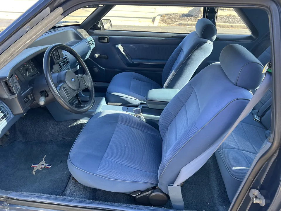Sneak Peek! 1987 Ford Mustang LX 5.0, factory Dark Shadow Blue, factory Regatta blue interior, 5.0 liter V8 engine, upgraded automatic transmission with shift kit, K&N filter , 65mm throttle body, Demon coil, Hypertech module, power steering, power disc brakes, factory air conditioning, buckets with console, factory dash & gauges, Magnaflow stainless exhaust, frame connectors, aluminum driveshaft, 3.73 rear axle, Motorsports front & rear springs, 61,000 original mile car, Original Papwerwork & Marti-Report, One Clean Pony! $17,900