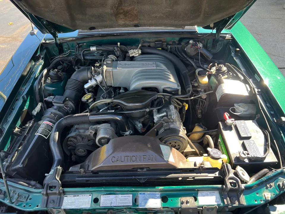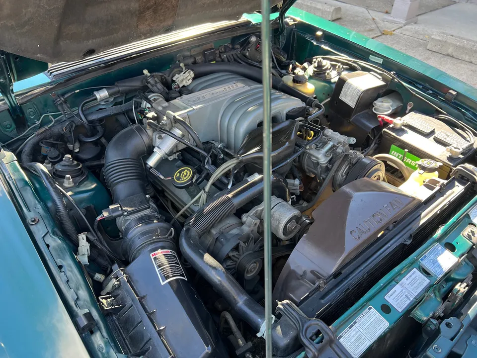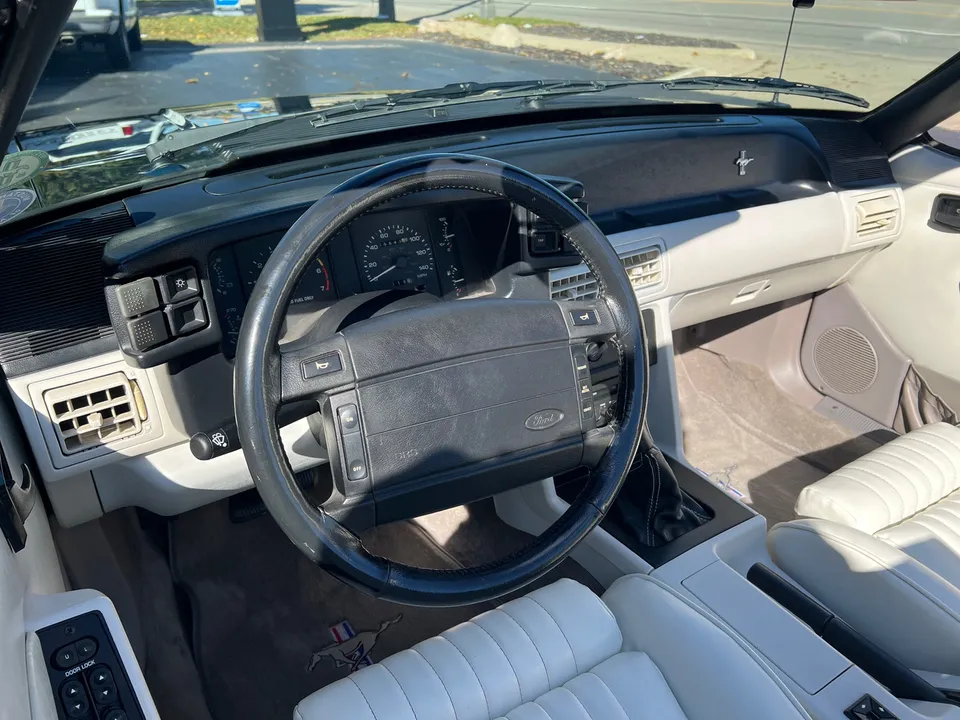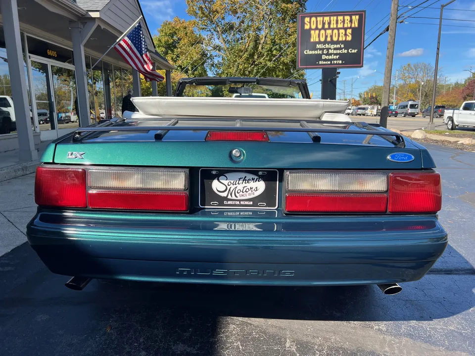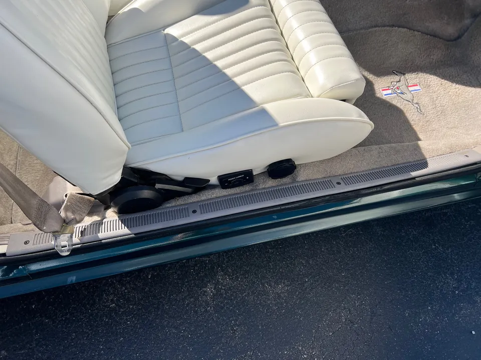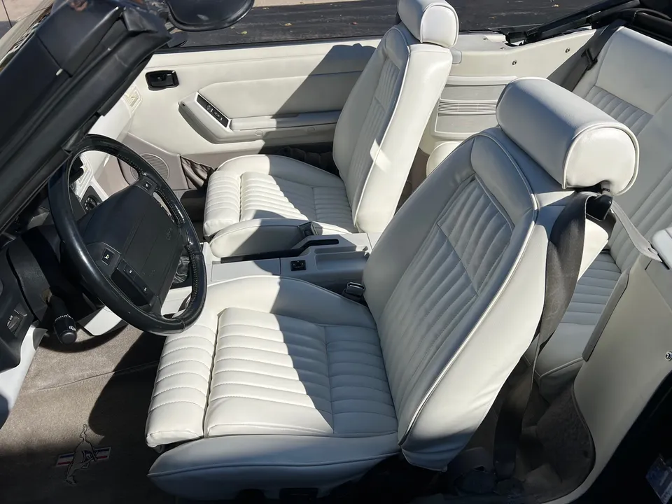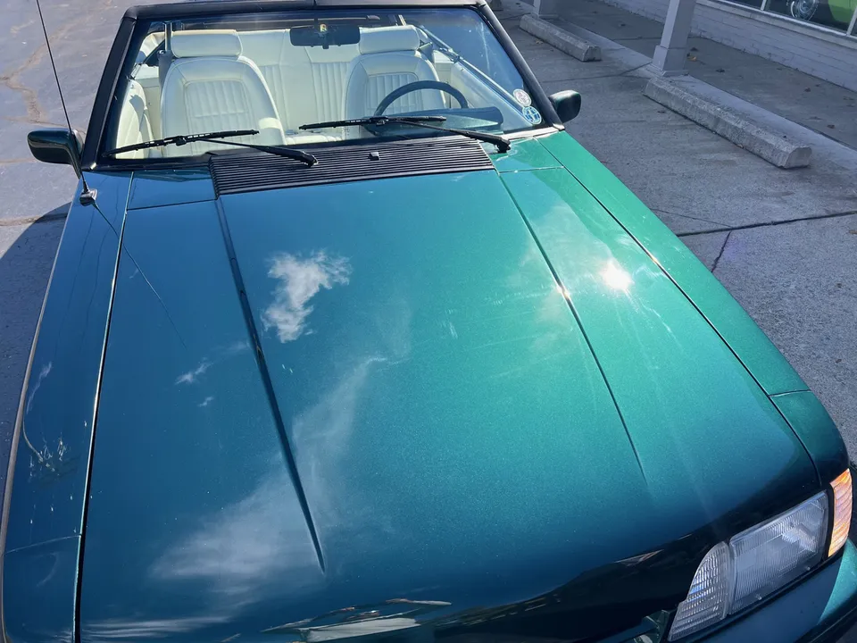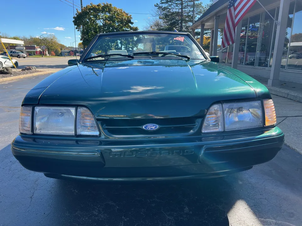 Rare 7UP edition (1 pf 1360 5 speed cars), LX package, factory (PA) Deep Emerald green metallic paint, factory (C2) Oxford white leather interior, factory white convertible top, 5.0-liter HO EFI V8 engine, 5 speed manual, power rack & pinion steering, power disc brakes, factory air conditioning, factory bucket seats with center console, factory tach & gauges, factory premium sound package, power windows-locks-mirrors, cruise control, power lumbar seats, power top, H-pipe Flowmaster dual exhaust with chrome tips, factory handling package with 2.73 traction-lock rear axle, 225/60R15 Cooper tires, factory 15” aluminum wheels, luggage rack, 85,000 original miles, Original Marti Report with documentation, Clean Carfax, Drive Anywhere!