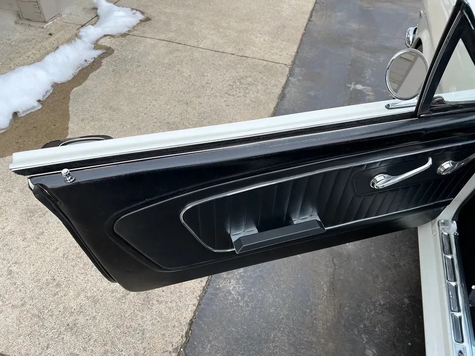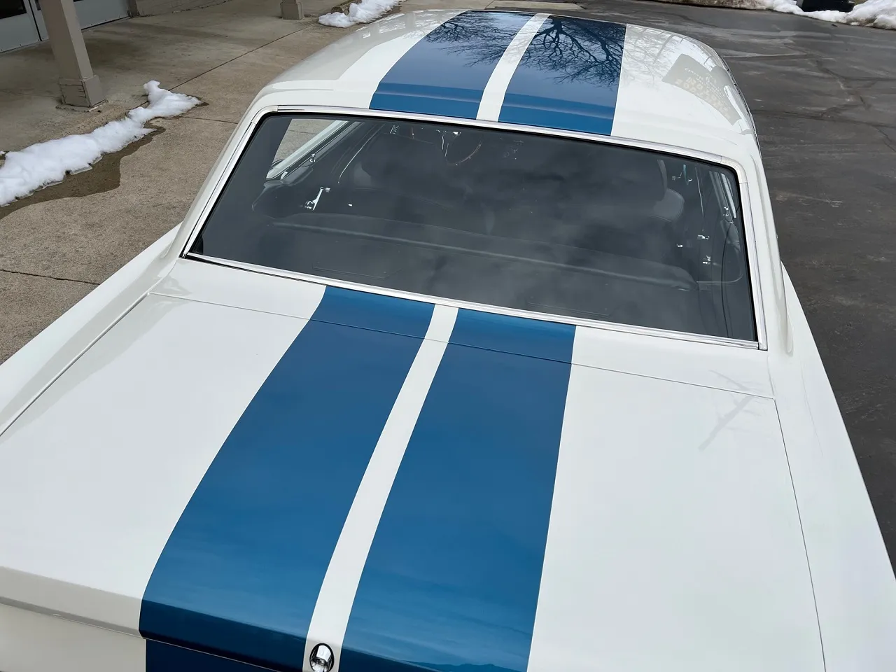 Recent Rotisserie Restoration, Clean Arizona car, stunning pearl white paint with blue metallic Shelby striping, new black vinyl interior, 5.0 liter HO EFI engine, T5 manual transmission, K&N breather, stock exhaust manifolds, power steering, Wilwood front disc brakes, aftermarket adjustable strut towers, big front sway bar, aluminum radiator with electric fan, bucket seats, factory style shifter, custom steering wheel, Phantom gauge cluster, am-fm radio, H pipe dual exhaust with Trumpet tips, factory rear end, 205/60R15 BF Goodrich Radial TA tires, 15” Legend Series Torque Thrust wheels, GT rear valve, Shelby hood scoop, oxidized primer floors, Drive Anywhere!IN STOCK
