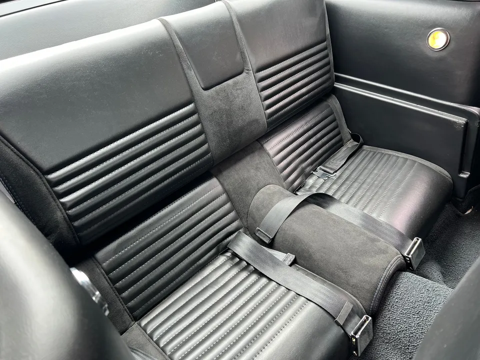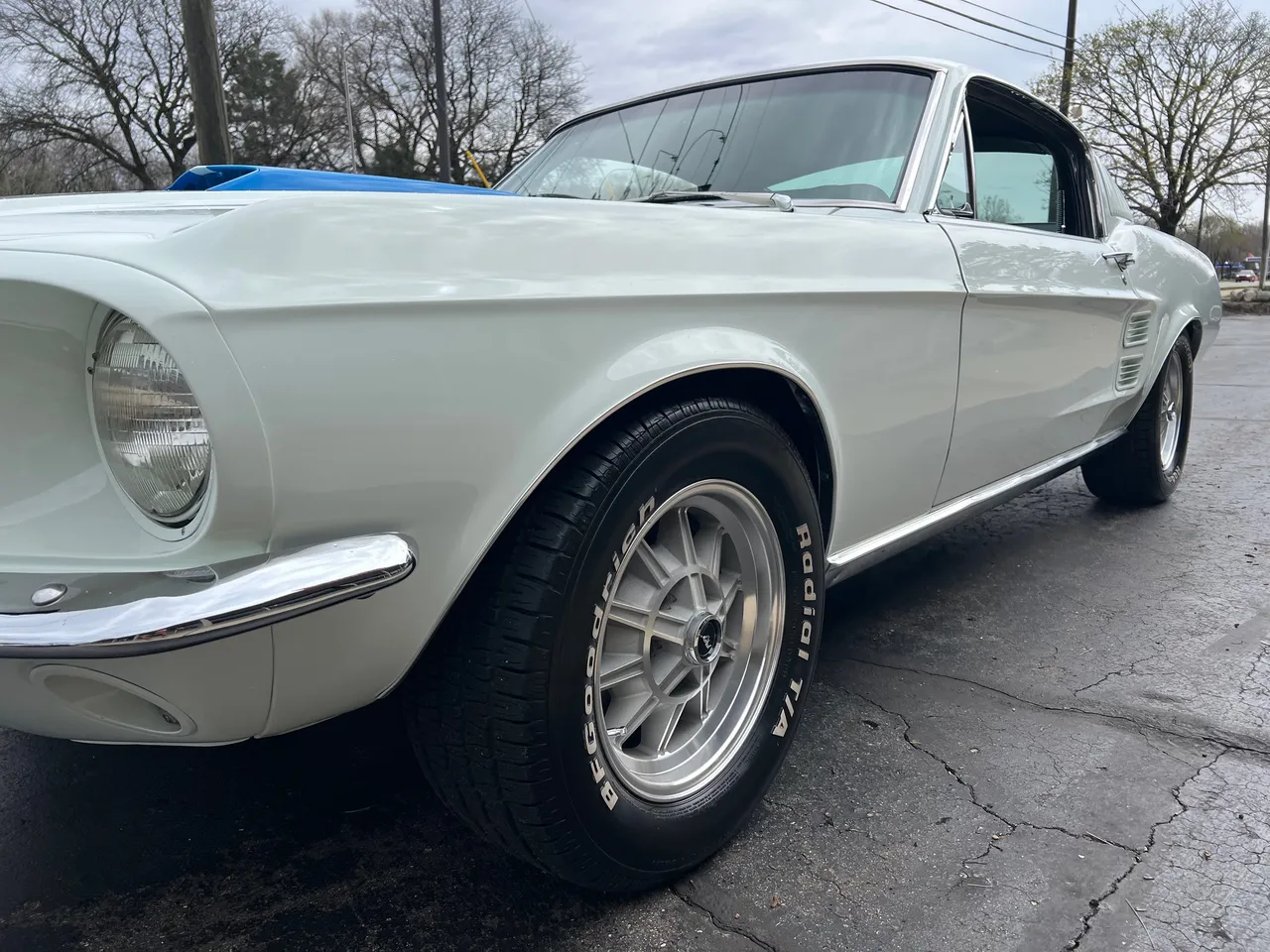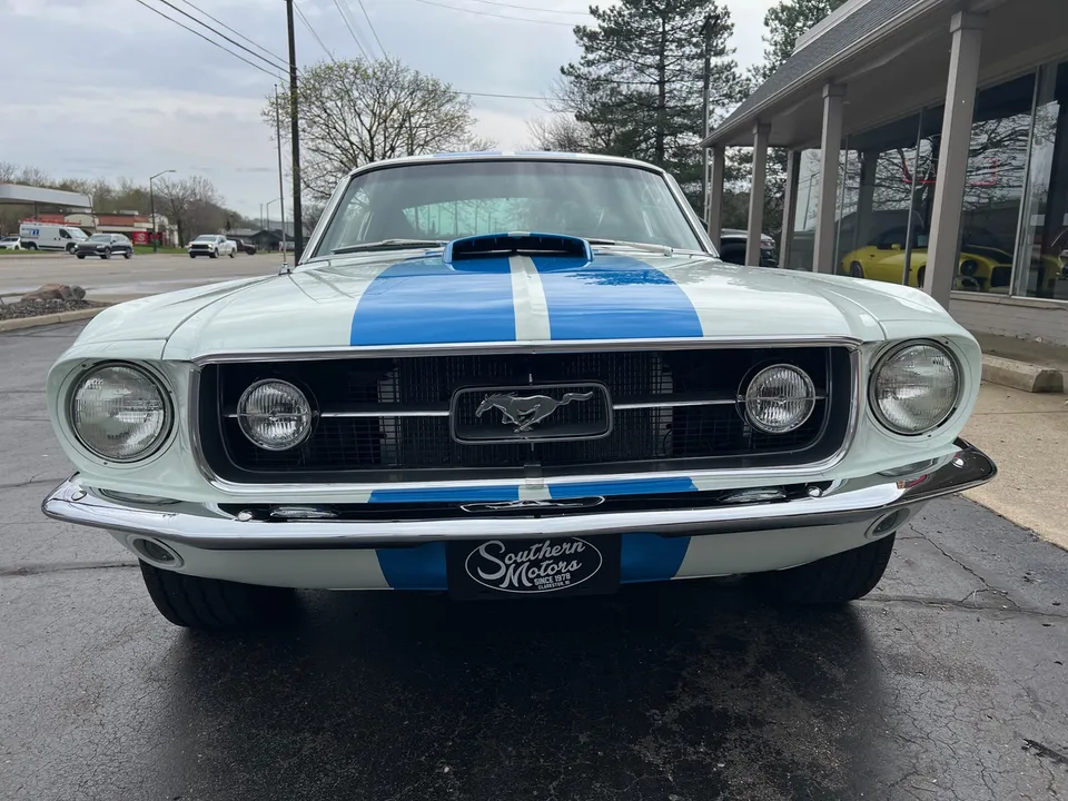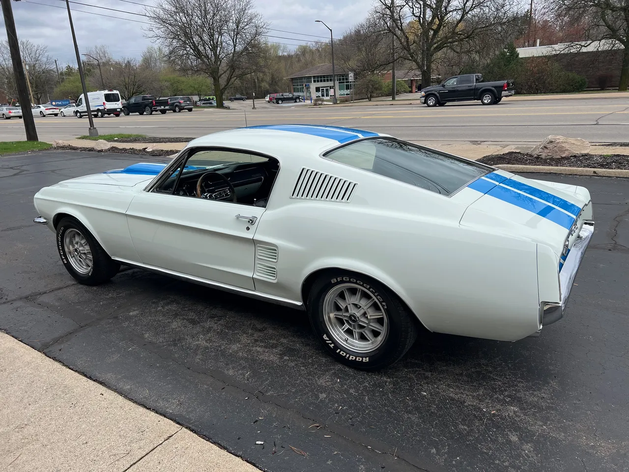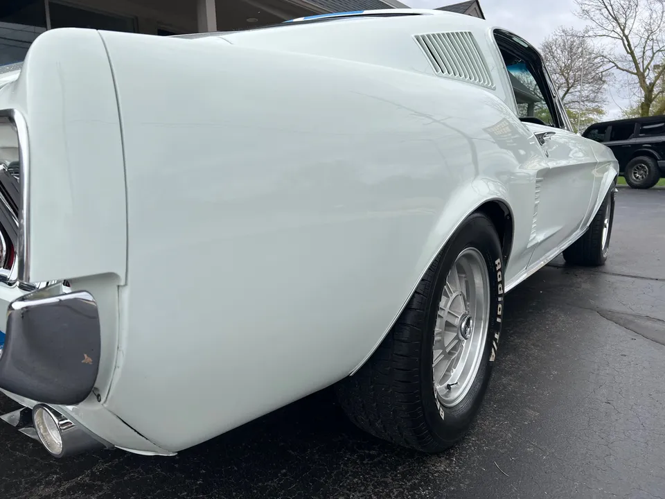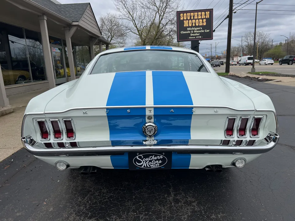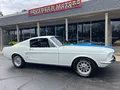 Recent Complete Body-Up Restoration, stunning Wimbledon white paint, Grabber blue Shelby striping, all new custom TMI black interior, factory C code 289 ci engine, Edelbrock 600 cfm 4 bbl, aluminum intake manifold, solid lift camshaft, factory exhaust manifolds, MSD 6AL ignition with Pro Billet distributor, chrome air cleaner, finned aluminum valve covers, billet pulley’s & brackets, power steering, power front disc brakes, chrome strut toner brace, aluminum radiator with electric fan, C4 automatic transmission, TMI buckets seats with full length center console, factory shifter with Lokar linkage, wood wheel factory dash & gauges, Audiosounds am-fm radio with custom kick panel speakers, fold-down rear seat, Flowmaster dual exhaust with correct chrome tips, , factory rear axle with 3.50 gear, new fuel tank, 235/60R15 BF Goodrich Radial T/A tires, 15” Shelby style wheels, GT350 hood scoop, fog lights, new wiring harness, comes with bullet chrome mirrors, One Clean Pony!