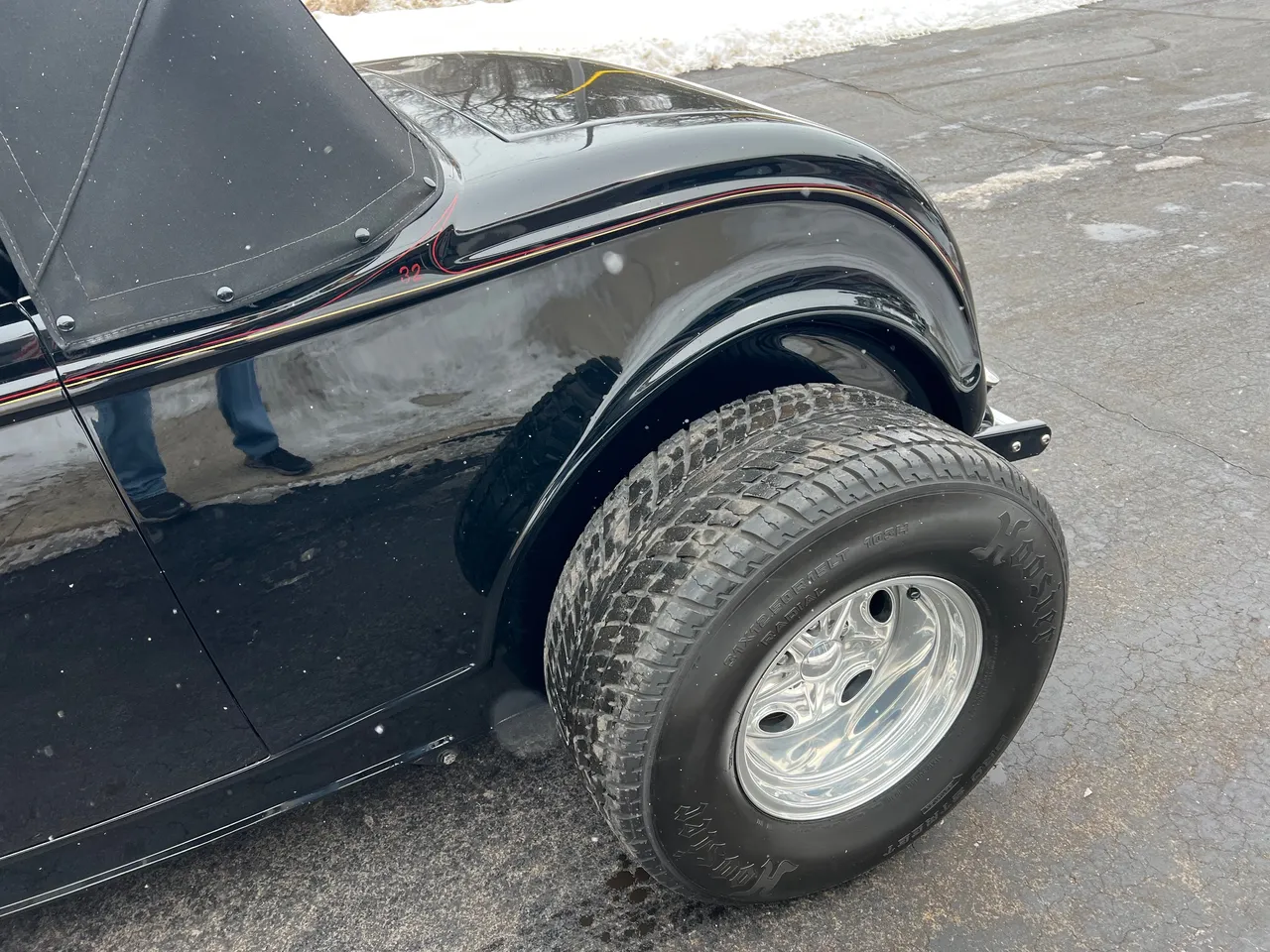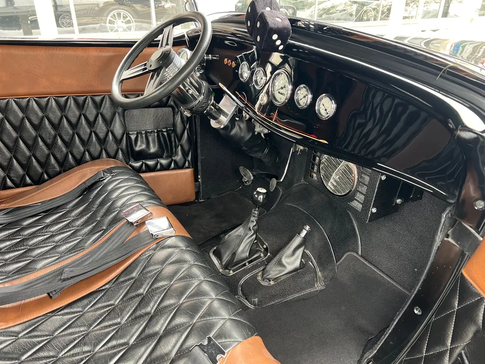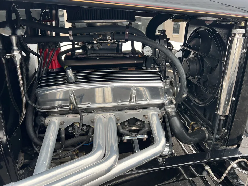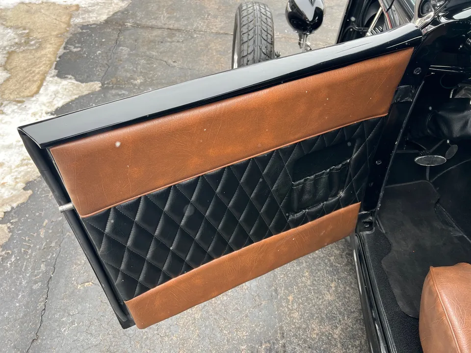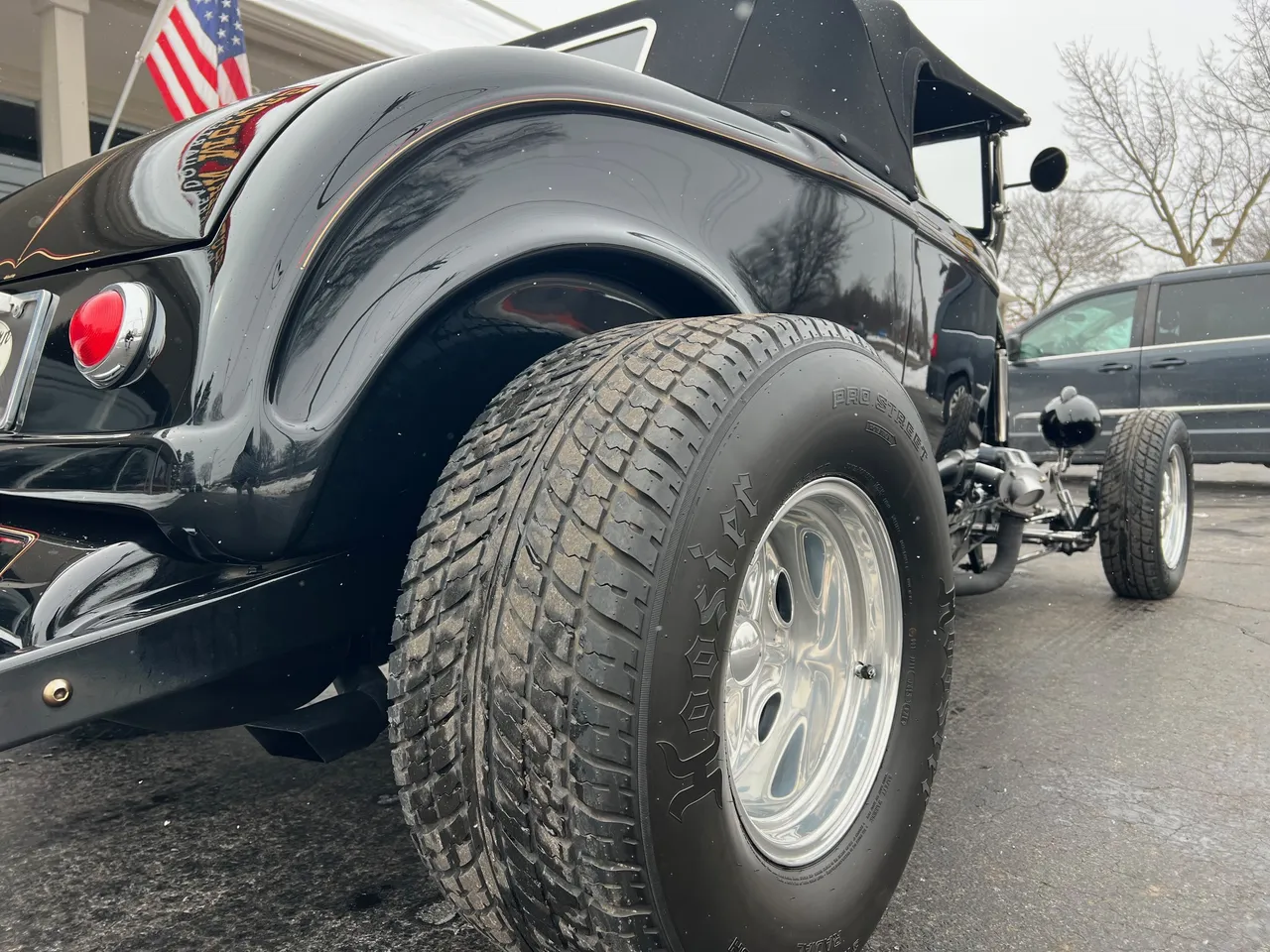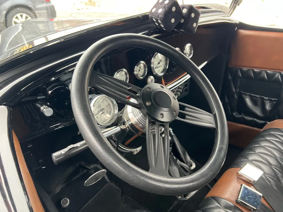 Custom Built Hi-Boy Street Rod, beautiful ceramic coated Tuxedo black with custom pin-striping, custom two-tone leather interior, 350 ci engine with Holley Sniper EFI, aluminum intake, GM Performance aluminum heads, roller cam & rockers, Sanderson ceramic street Rod headers, MSD 6A ignition, Flaming River electric rack & pinion steering, front disc brakes, aluminum pulley’s & brackets, Walker cooling system, 200R4 automatic overdrive transmission with B&M lock-up converter, custom bench seat, chrome tilt column with billet wheel, Stewart Warner gauges, cruise control, electric heater, dual exhaust, Currie 9” 3.23 rear axle with coil-over shocks, 31X12.5R15 Hoosier rear tires, 26X7.5R15 fronts, 15” Wheelsmith wheels, finished trunk area, side curtains, Canvas top, LED lighting with 3rd brake light, Drive Anywhere!