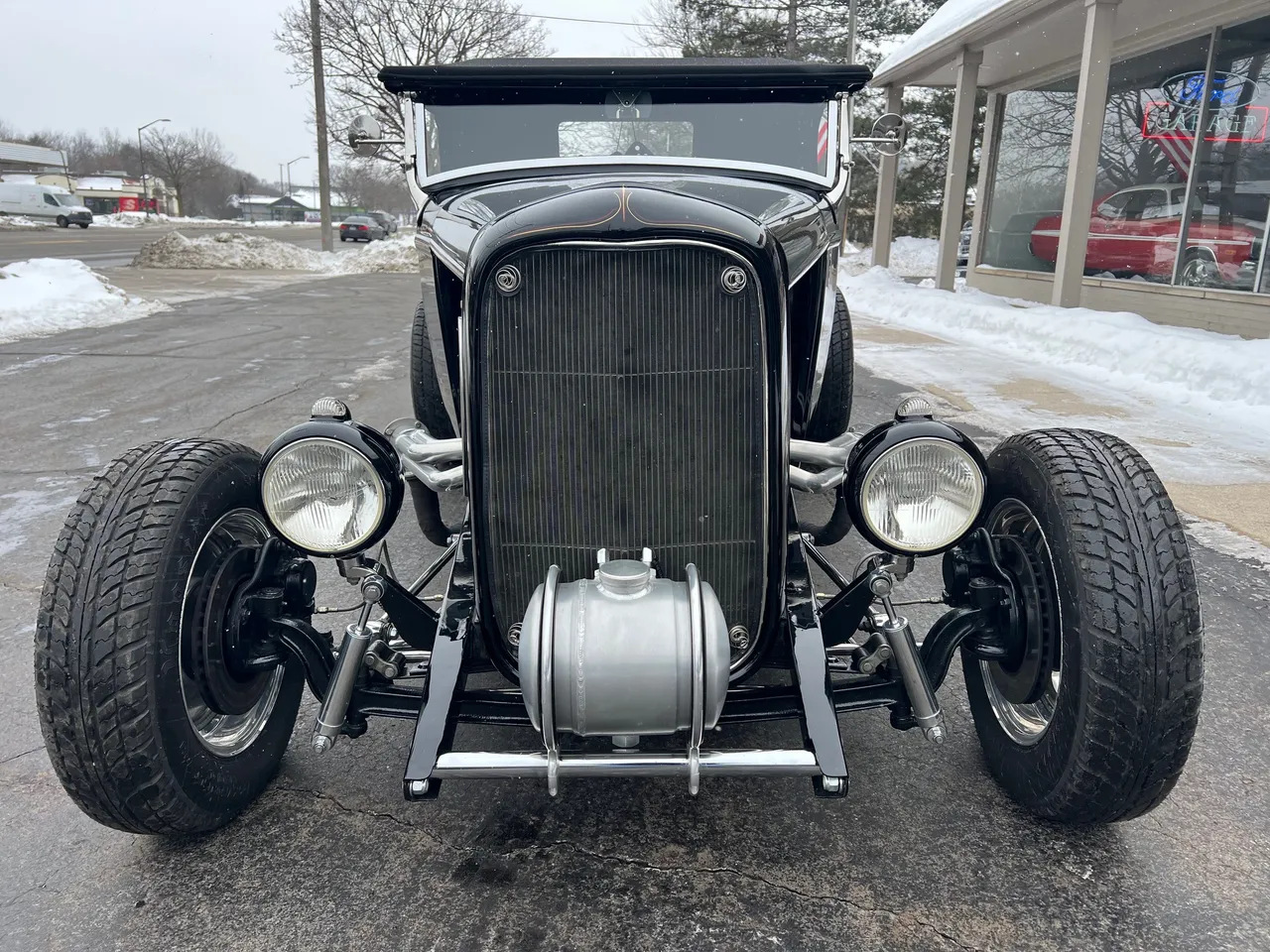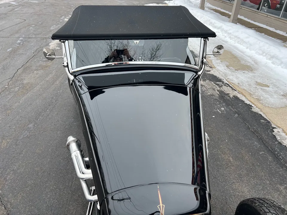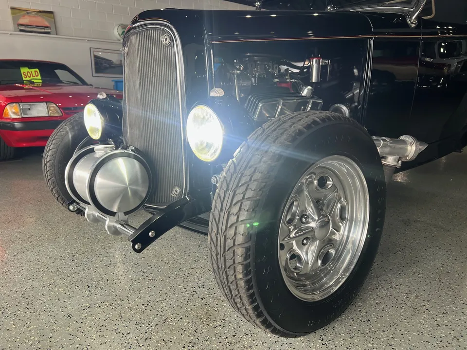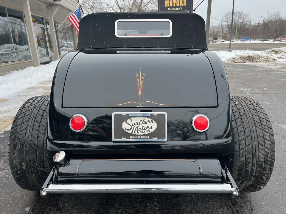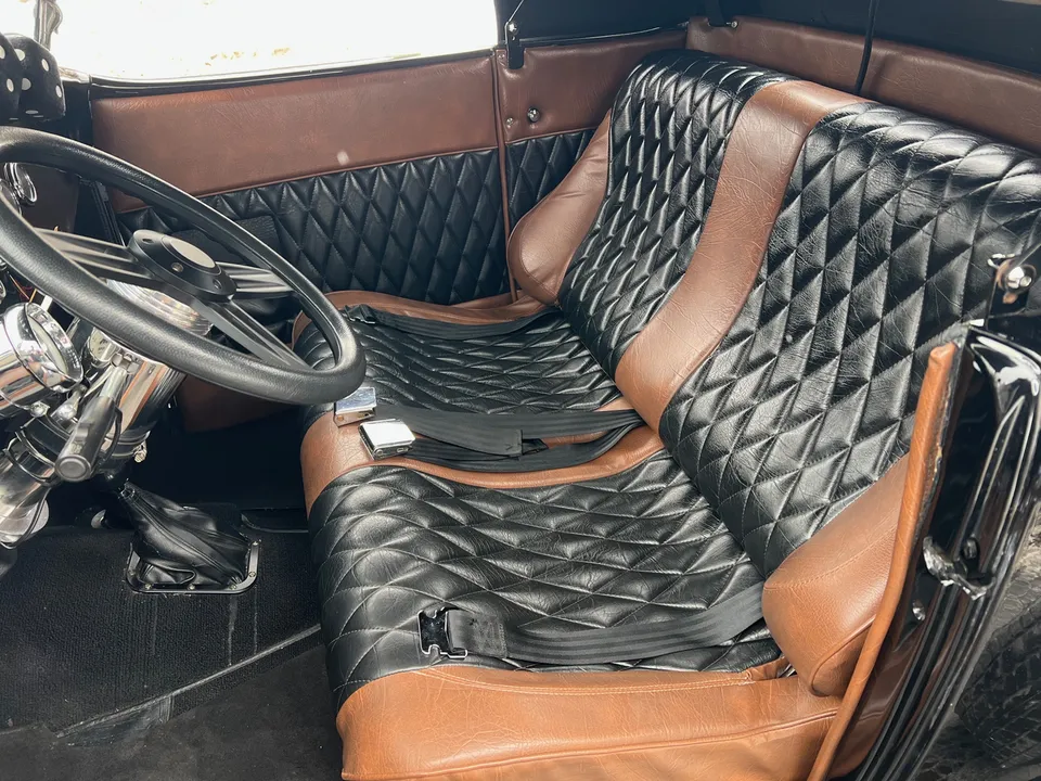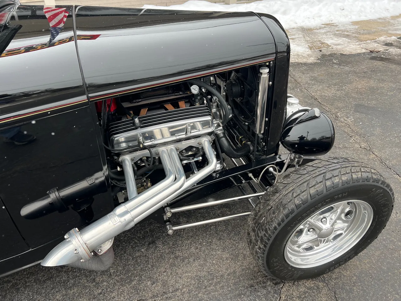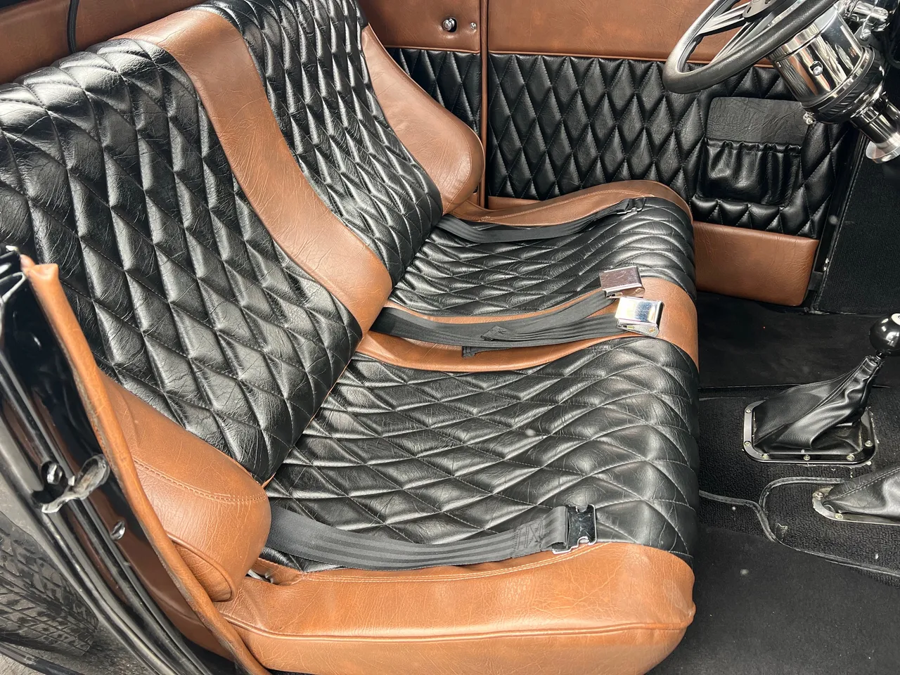Custom Built Hi-Boy Street Rod, beautiful ceramic coated Tuxedo black with custom pin-striping, custom two-tone leather interior, 350 ci engine with Holley Sniper EFI, aluminum intake, GM Performance aluminum heads, roller cam & rockers, Sanderson ceramic street Rod headers, MSD 6A ignition, Flaming River electric rack & pinion steering, front disc brakes, aluminum pulley’s & brackets, Walker cooling system, 200R4 automatic overdrive transmission with B&M lock-up converter, custom bench seat, chrome tilt column with billet wheel, Stewart Warner gauges, cruise control, electric heater, dual exhaust, Currie 9” 3.23 rear axle with coil-over shocks, 31X12.5R15 Hoosier rear tires, 26X7.5R15 fronts, 15” Wheelsmith wheels, finished trunk area, side curtains, Canvas top, LED lighting with 3rd brake light, Drive Anywhere!