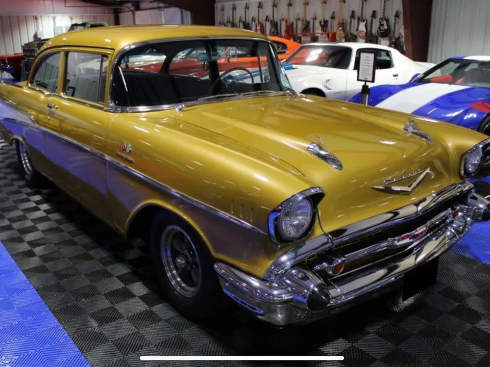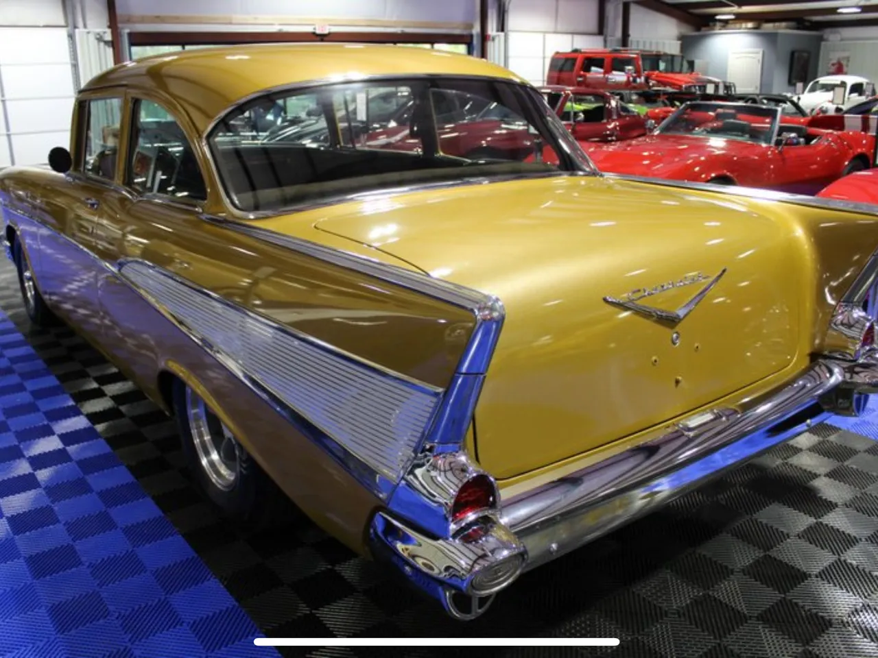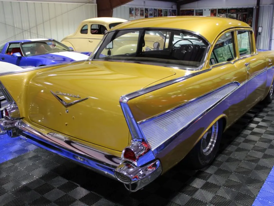 Coming Soon! 1957 Chevrolet 210, stunning Saturn gold metallic paint, black cloth interior, 14K original miles, Body Up Restoration, 406 ci engine with Holley Sniper EFI, Muncie M22 4-speed manual transmission, ceramic headers, GM double hump heads, disc brakes, Be Cool aluminum radiator, factory bench seat, factory dash, Hirst shifter, Vintage tach, Flowmaster dual exhaust, Currie 9" 3.73 traction-lock rear axle, Torque Thrust D wheels, Ready to Cruise! $48,900