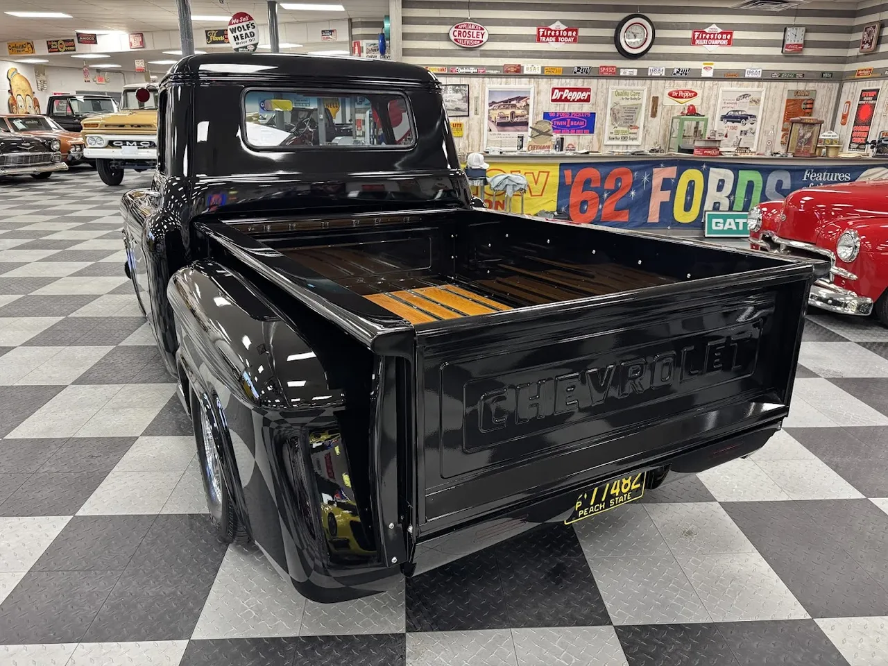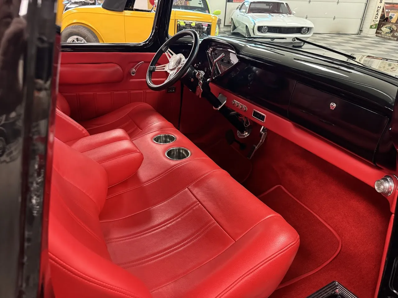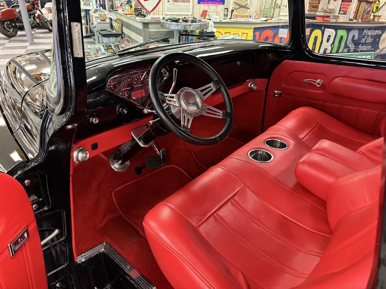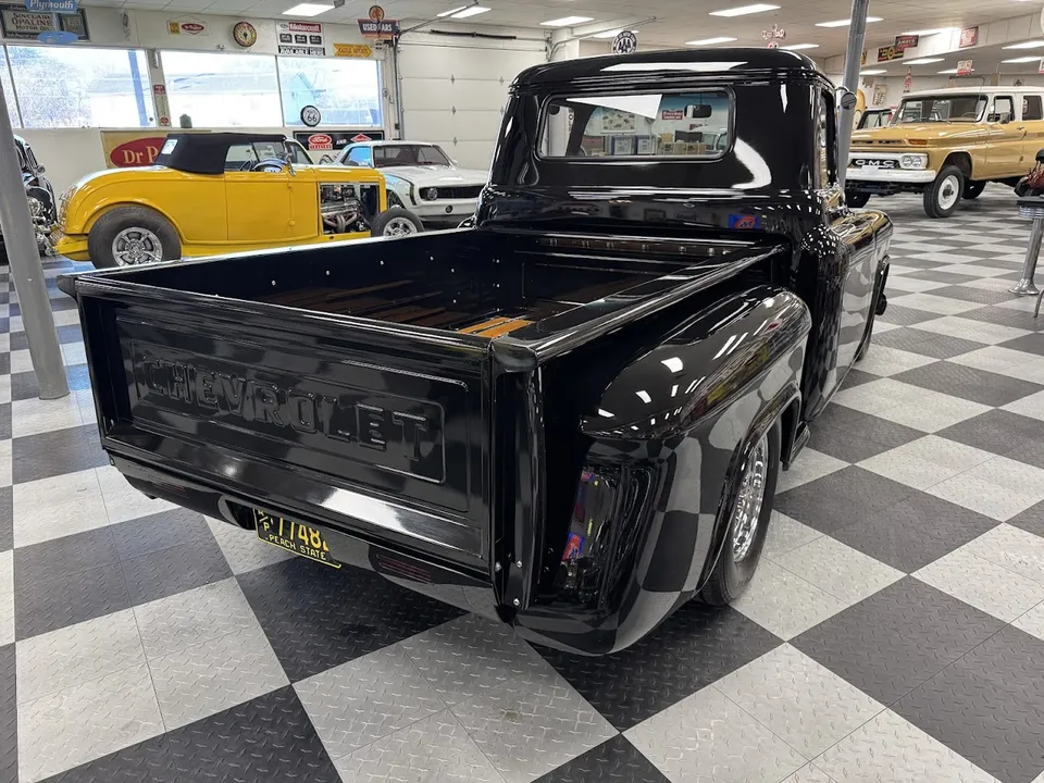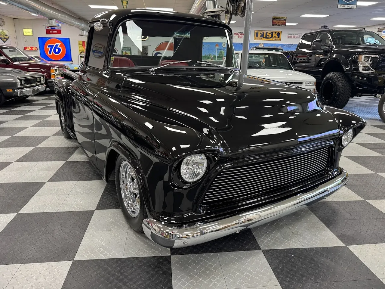 Coming Soon! 1955 Chevrolet 3100, Frame Off Restored Street Rod pickup, beautiful Tuxedo black paint, custom red leather interior, ZZ3 350 ci crate engine, 700R4 automatic overdrive transmission, Billet frontrunner system, power steering, disc brake, Vintage A/C, Mustang II tubular front suspension, Dakota Custom Gauges, tilt column, Le Carra Leather wrapped wheel, power windows, 10 bolt rear axle, oak wood bed with stainless strips, relocated aluminum fuel tank, 15” chrome American Torque Thrust wheels, Ready to Cruise! $62,900