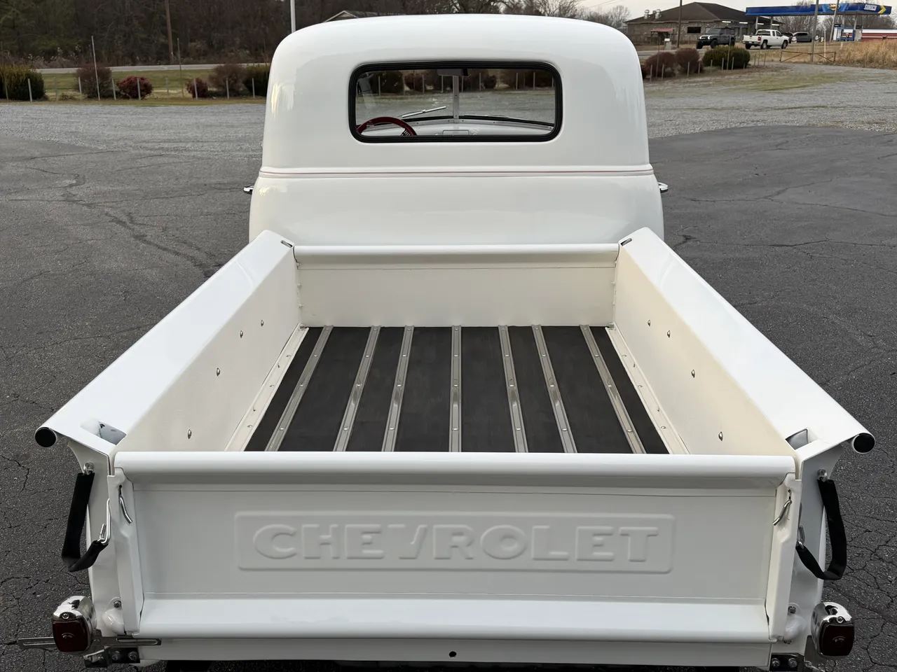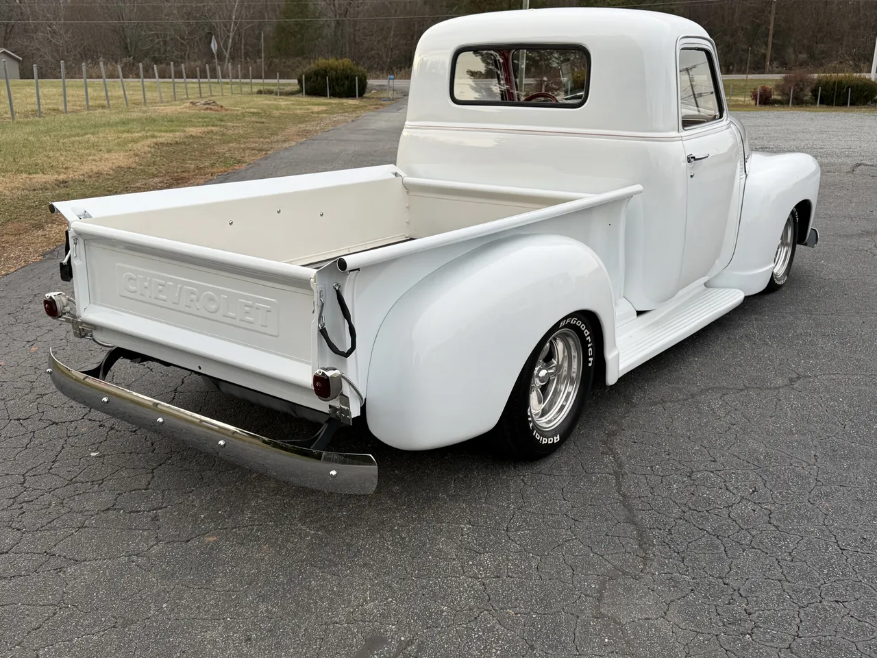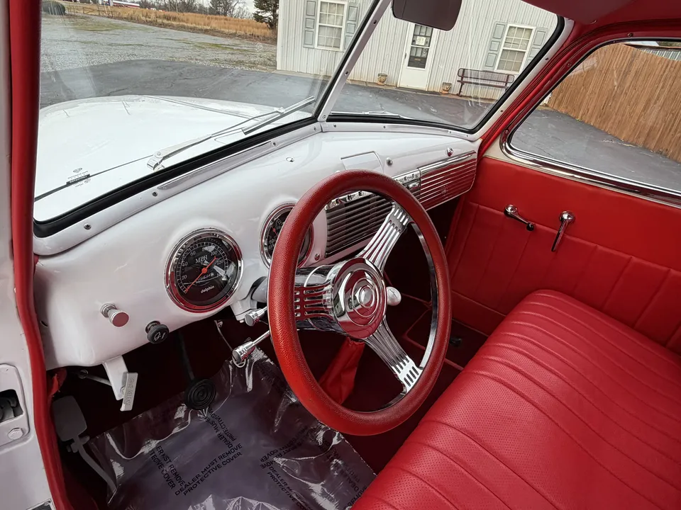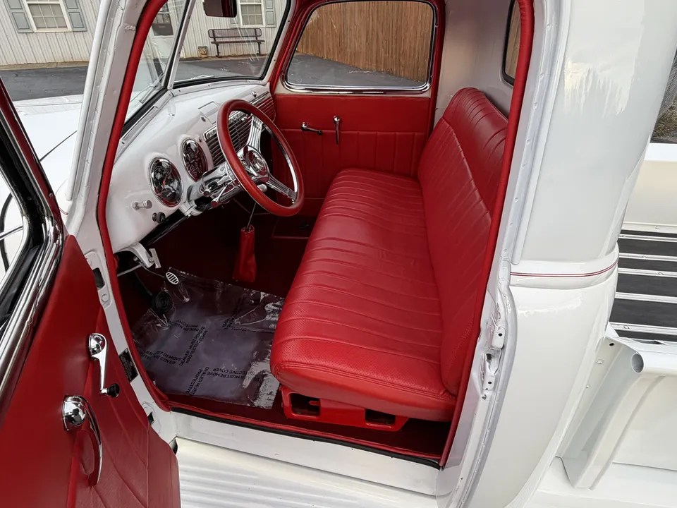 Coming Soon! 1952 Chevrolet 3100, All Steel Street Rod pickup, beautiful Artic White paint, custom red leather interior, 350 ci engine, 350 automatic transmission, Nova front sub-frame, power steering, power front disc brakes, air conditioning, updated wiring harness, bench seat, chrome tilt column with billet wheel, Dolphin gauges, Lokar shifter, power windows, dual exhaust, 10 bolt rear end, custom bed, custom fuel tank, 15” American Racing Torque Thrust wheels with BFG’s, Ready to Cruise! $52,900