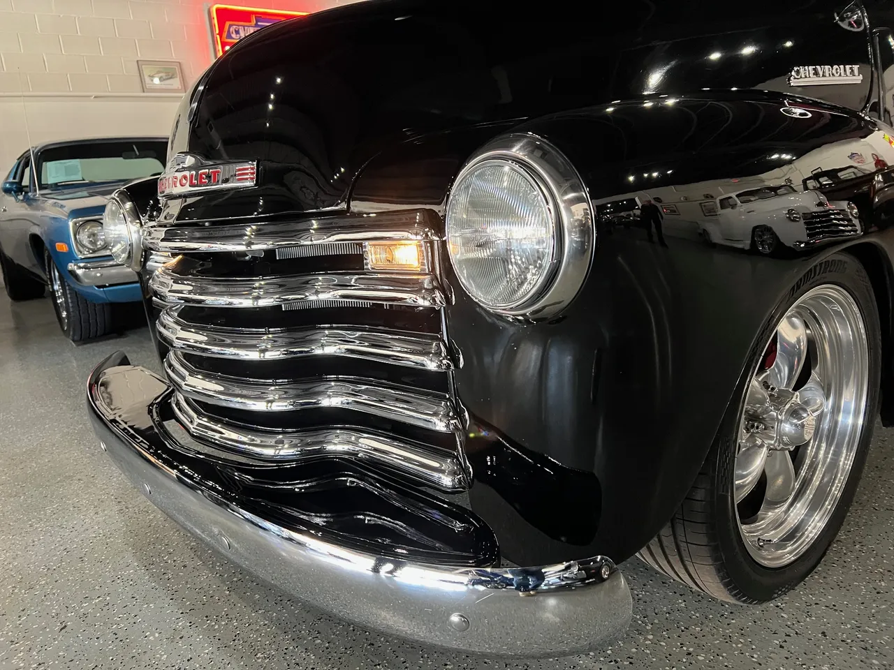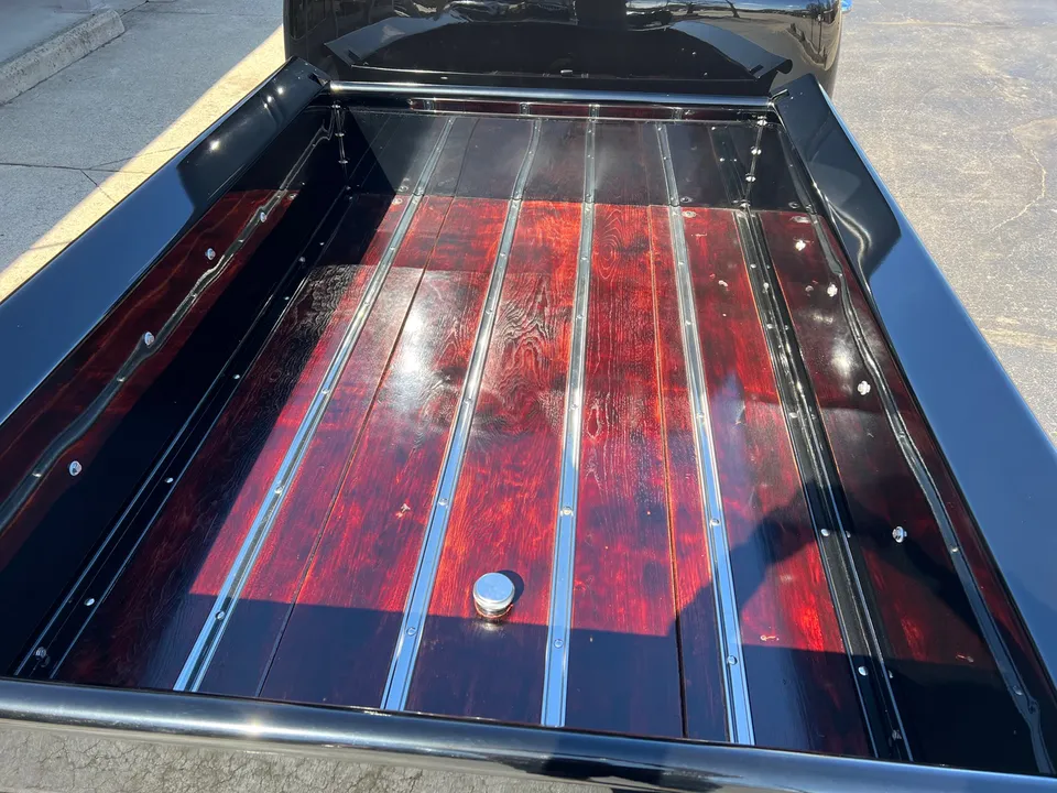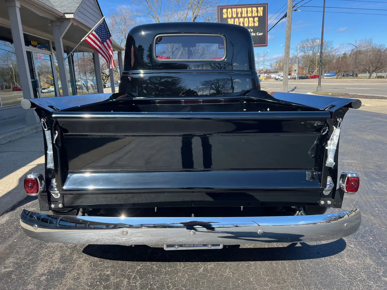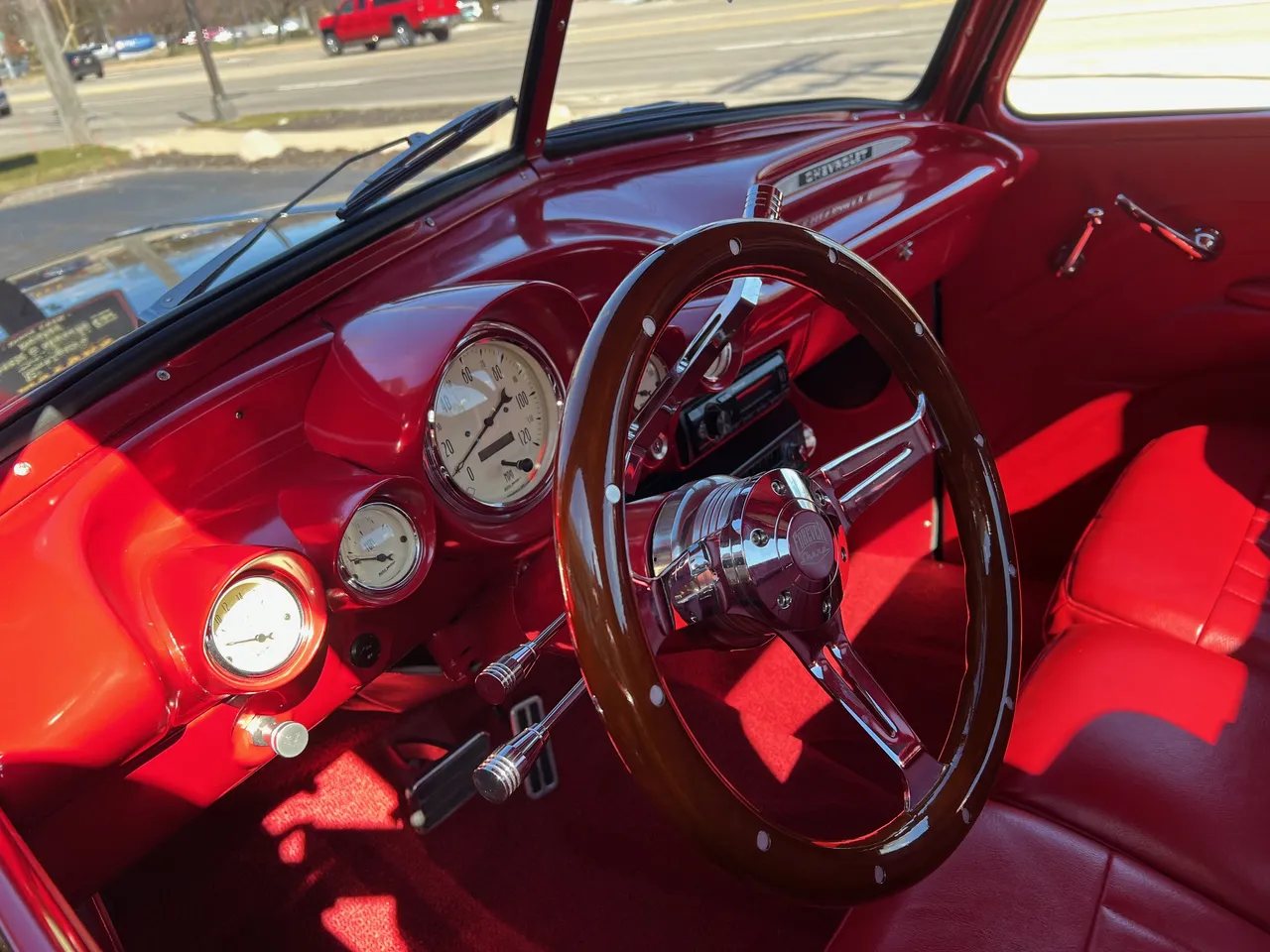 All Steel Frame Off Restored Custom Built Restomod Truck, beautiful Tuxedo black paint, custom red leather interior, LS1 EFI engine, power steering, power 4-wheel disc brakes, electric air conditioning, 4L60 automatic overdrive transmission, aluminum radiator with electric fan, custom bucket seats with buddy seat, tilt column with billet wheel, 59’ Impala dash with Autometer gauges, Pioneer sound system with custom kick panels, sculpted door panels & headliner, dual exhaust with chrome tips, GM 10 bolt rear axle, custom fuel tank, Maple wood bed, 255/45R18 rear tires, 225/45R18 fronts, 18” American Racing Torque Thrust wheels, Ready to Cruise!