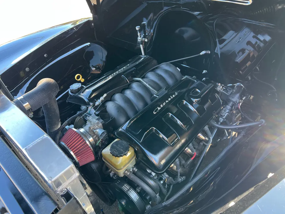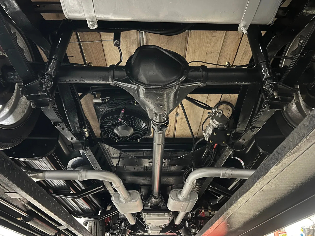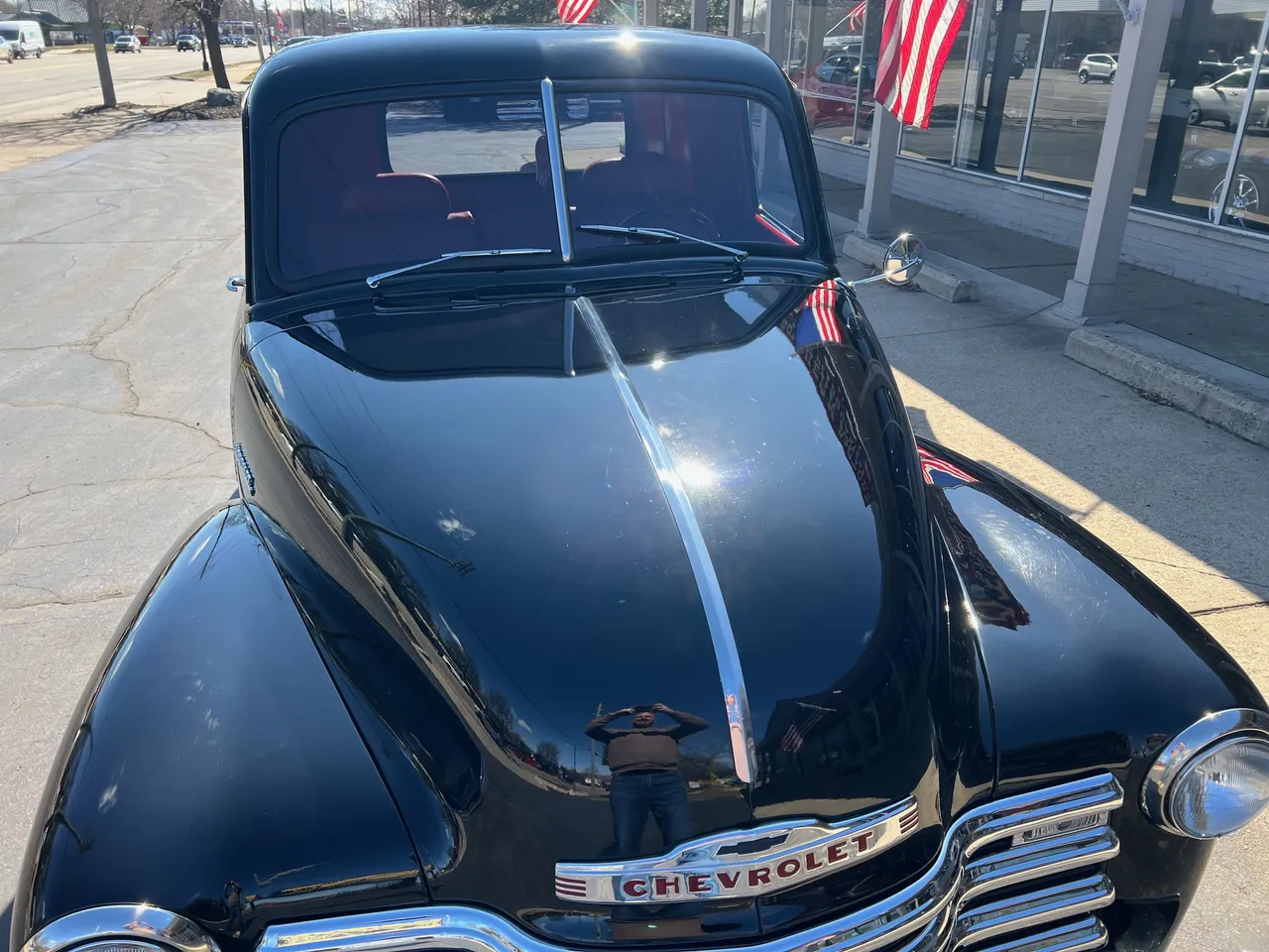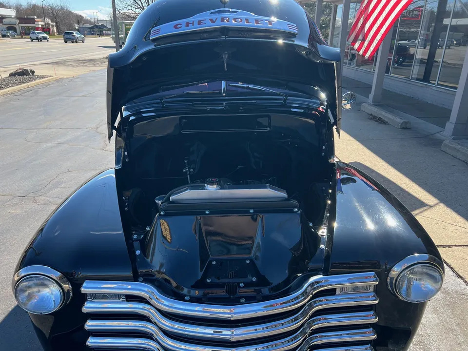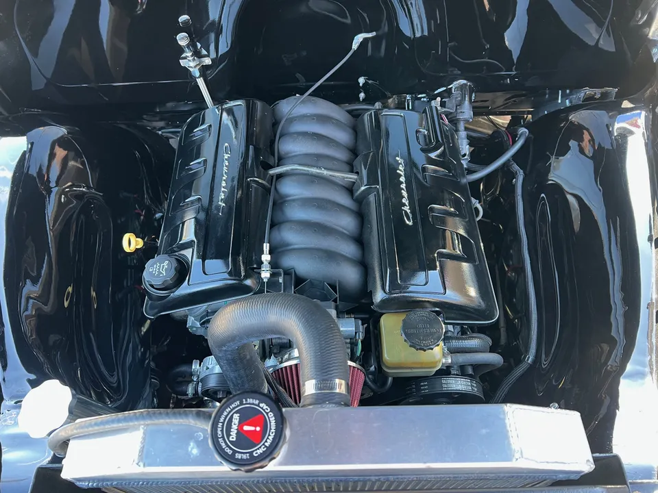 All Steel Frame Off Restored Custom Built Restomod Truck, beautiful Tuxedo black paint, custom red leather interior, LS1 EFI engine, power steering, power 4-wheel disc brakes, electric air conditioning, 4L60 automatic overdrive transmission, aluminum radiator with electric fan, custom bucket seats with buddy seat, tilt column with billet wheel, 59’ Impala dash with Autometer gauges, Pioneer sound system with custom kick panels, sculpted door panels & headliner, dual exhaust with chrome tips, GM 10 bolt rear axle, custom fuel tank, Maple wood bed, 255/45R18 rear tires, 225/45R18 fronts, 18” American Racing Torque Thrust wheels, Ready to Cruise!