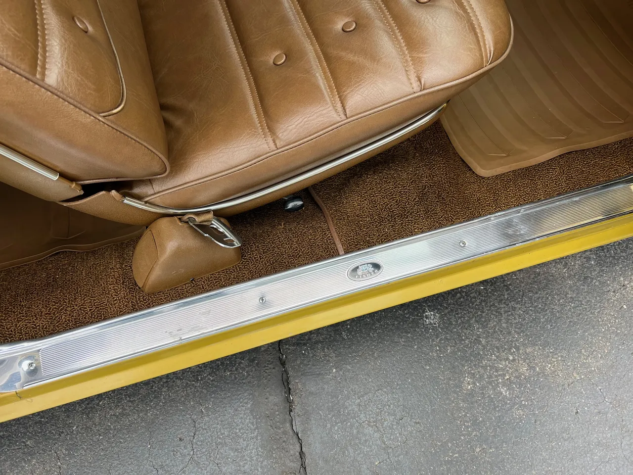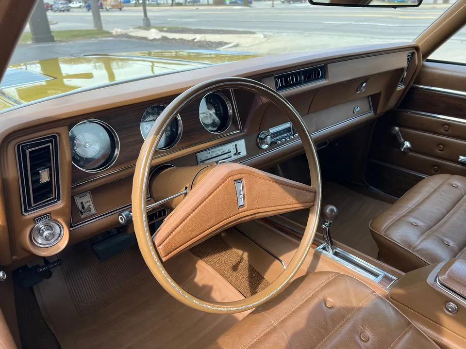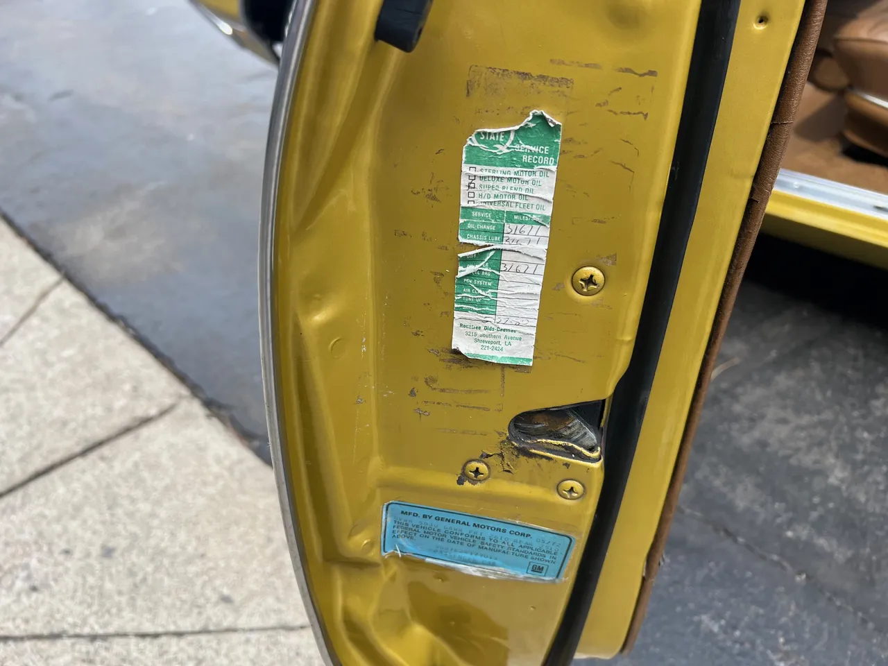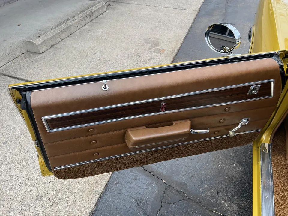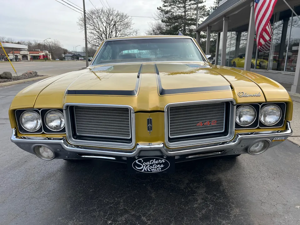 46,ooo original mile 2 Owner car, beautiful factory (53) Saturn gold metallic paint, factory (949) Saddle vinyl interior, factory black 442 striping, matching numbers 350 ci engine, 4 bbl, factory intake & exhaust manifolds, factory air cleaner & valve covers, power steering, power front disc brakes, factory air conditioning, 350 turbohydramatic transmission, factory bucket seats with center console, factory dash & gauges, remote driver’s mirror, factory Delco am radio, Flowmaster dual exhaust with correct chrome tips, factory 10 bolt 3.23 rear axle & sway bar, 205/70R14 Goodyear Eagle tires, factor 14” SSII wheels, original Goodyear bias-ply spare with factory jack, original owner’s manuals & Protect-O-Plate, T3 headlights, original Soft Ray glass, Collector Quality!