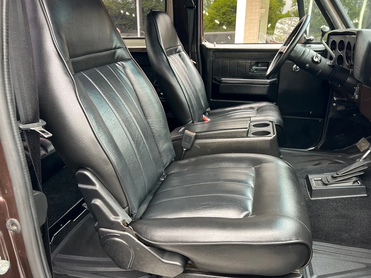 Clean Original Georgia truck, 6” lift kit, 4X4, beautiful factory (66) Indian bronze metallic with matching removeable top, black vinyl interior, GM 350 ci crate engine, 4 bbl, factory intake & exhaust manifolds, power steering, power front disc brakes, factory air conditioning, 700R4 automatic overdrive transmission, buckets with console, factory dash, tilt column with Grant steering wheel, Kenwood sound system, fold-down rear seat, H pipe Magnaflow dual exhaust with chrome tips, factory rear with 3.42 limited slip rear end, new 35X12.5R15LT BF Goodrich Mud Terrain tires, 15” Michey Thompson aluminum wheels, 31 gallon fuel tank, power rear window, Carr Super Hoop aluminum original owner’s manuals, Ready to Cruise!IN STOCK