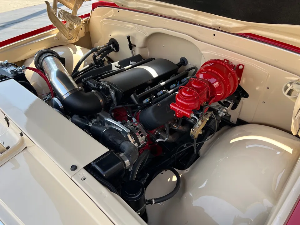 480 miles on Frame Off Restoration, clean Tennessee truck, stunning PPG Victory red & Chrysler cream paint scheme, custom two-tone plaid interior, 5.3 LS EFI engine with GM controller, Edelbrock cold air kit, BTR Stage II camshaft, ceramic headers, Chevrolet script valve covers, power steering, power front disc brakes, Vintage air conditioning, March aluminum pulley’s & brackets, 4L60 automatic overdrive transmission, custom bench seat, chrome Ididit tilt column with billet wheel, Dakota VHX gauge cluster, H-pipe dial exhaust, 12 bolt 3.73 limited slip rear axle, custom fuel tank, 295/40ZR20 rear tires, 245/45ZR20 fronts, 20” Billet Specialties Tech 5 wheels, new glass, custom hood, Ready to Cruise!