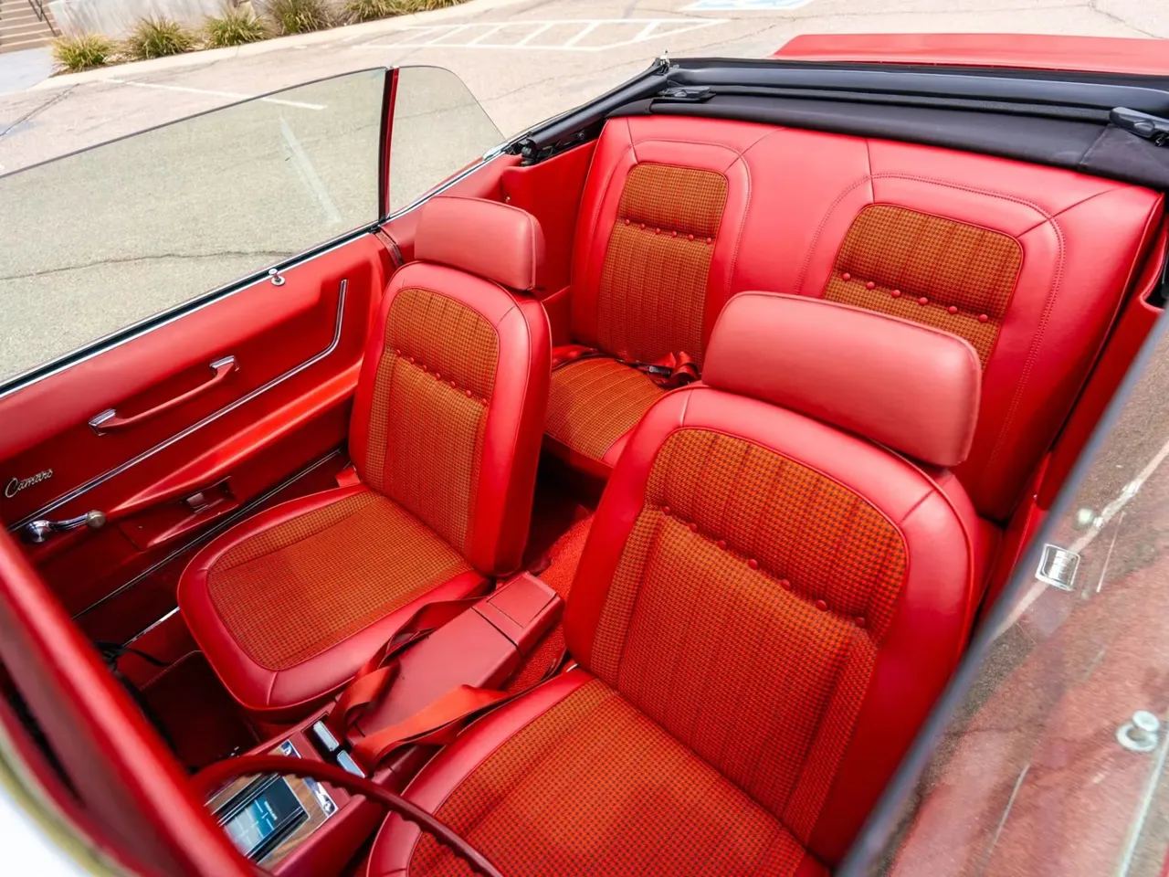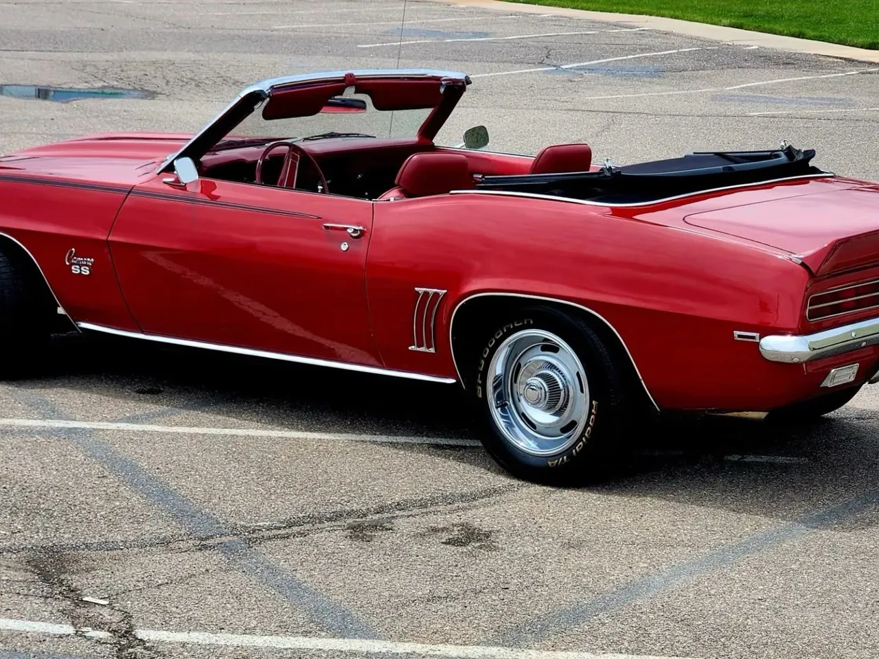Coming Soon! 1969 Chevrolet Camaro RS/SS Convertible, 4500 miles on Custom Built RS/SS Resto-mod Convertible, beautiful factory (52) Garnet red car, (719) Hounds Tooth Deluxe interior, new Haartz power convertible top with glass rear window, Hennessey sourced LS3 6.2 liter EFI engine with GM controller, 4L65E automatic overdrive transmission, billet valve covers, headers, power steering, power front disc brakes, Viking adjustable shocks, Vintage air conditioning, aluminum radiator, factory bucket seats with center console, Dakota RTX gauges, Premier sound system, GM deluxe seat belts, Flowmaster H-pipe dual exhaust, 12 bolt 4.10 limited slip rear axle, new 255/45R18 rear tires, BF Goodrich Radial T/A tires, factory 15" GM Rally wheels, front & rear spoilers, cowl hood, dual chrome mirrors, functional hide-away headlights, Drive Anywhere!One Bad Bowtie! $75,900