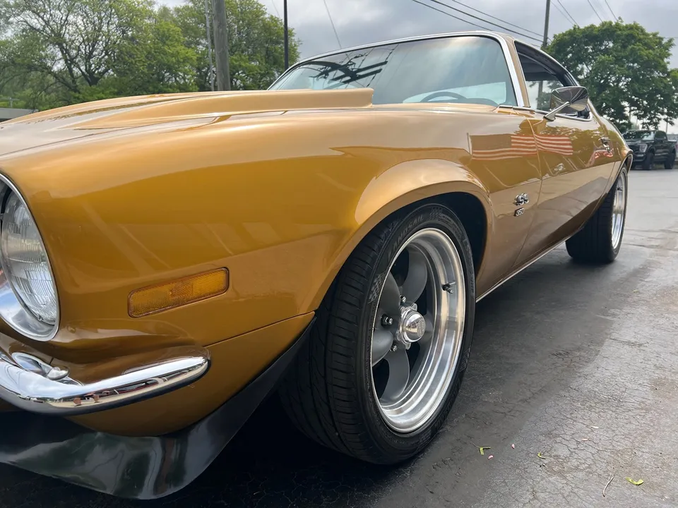Documented True RS/SS, clean Tennessee car, Complete Body-Up Restoration, stunning Inca gold metallic paint, Comfort Weave black vinyl interior, matching numbers (CNJ) 350 ci/300 hp engine, 4 bbl, factory intake manifold, ceramic headers, HEI distributor, factory air cleaner, finned aluminum valve covers, power steering, 4 wheel disc brakes, aluminum radiator Richmond 5 speed manual transmission, Global West tubular front suspension, factory bucket seats with console, factory tach & gauges, am-fm radio, Long custom shifter, H-pipe Flowmaster dual exhaust with correct chrome tips, 10 bolt 3.55 limited slip rear end with sway bar, frame-ties, new 275/40ZR18 rear tires, 225/45ZR17 fronts, 17 & 18” American Racing Torque Thrust wheels, cowl hood, front & rear spoilers, original Purchase Agreement-A title-Sales Receipt-Protect O Plate-Owner’s Manual, 69,000 original miles, Same Owner Since 1999, Collector Quality! `IN STOCK