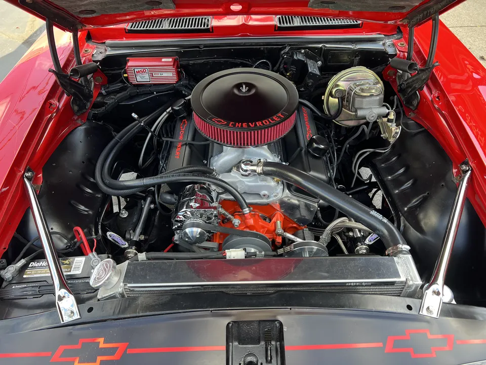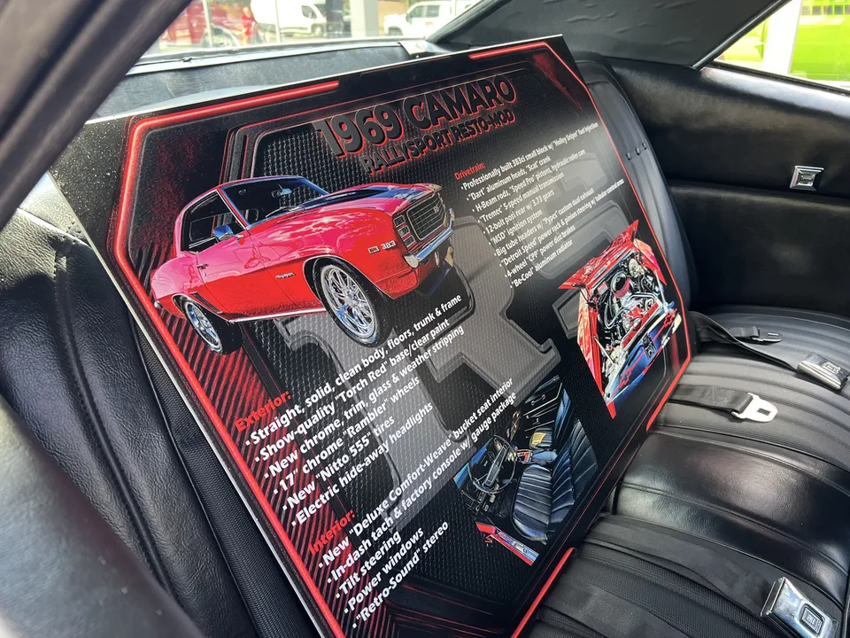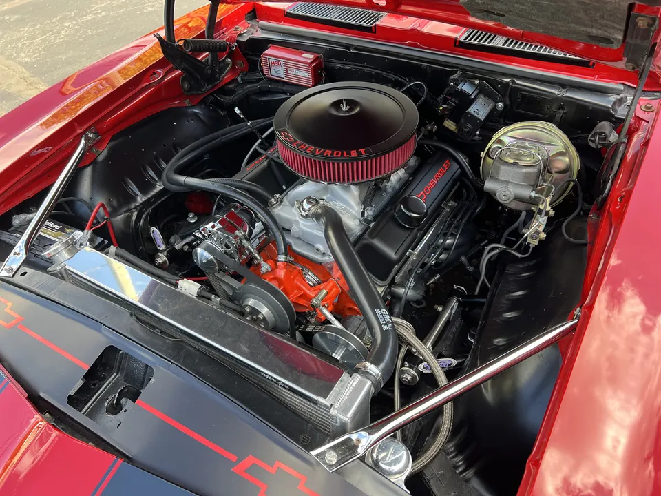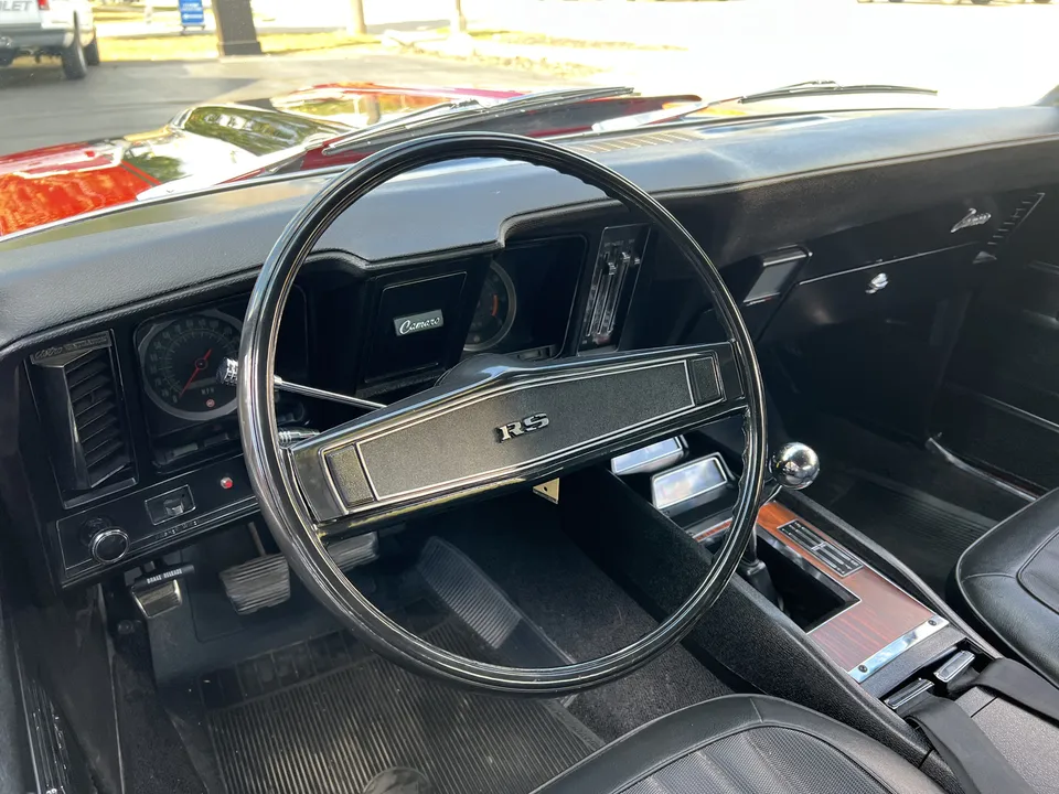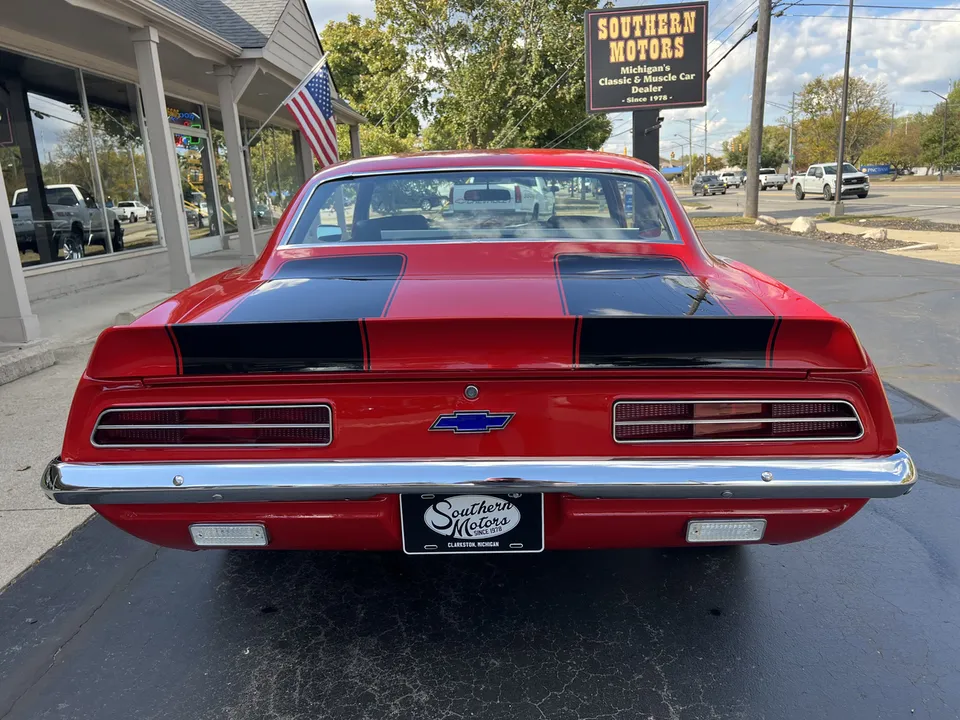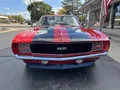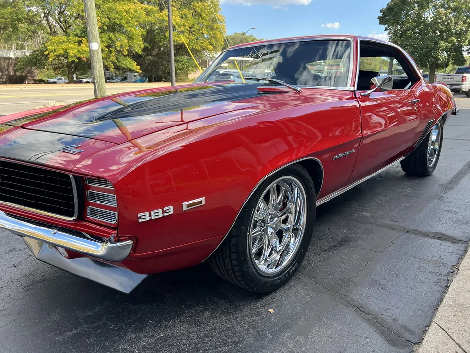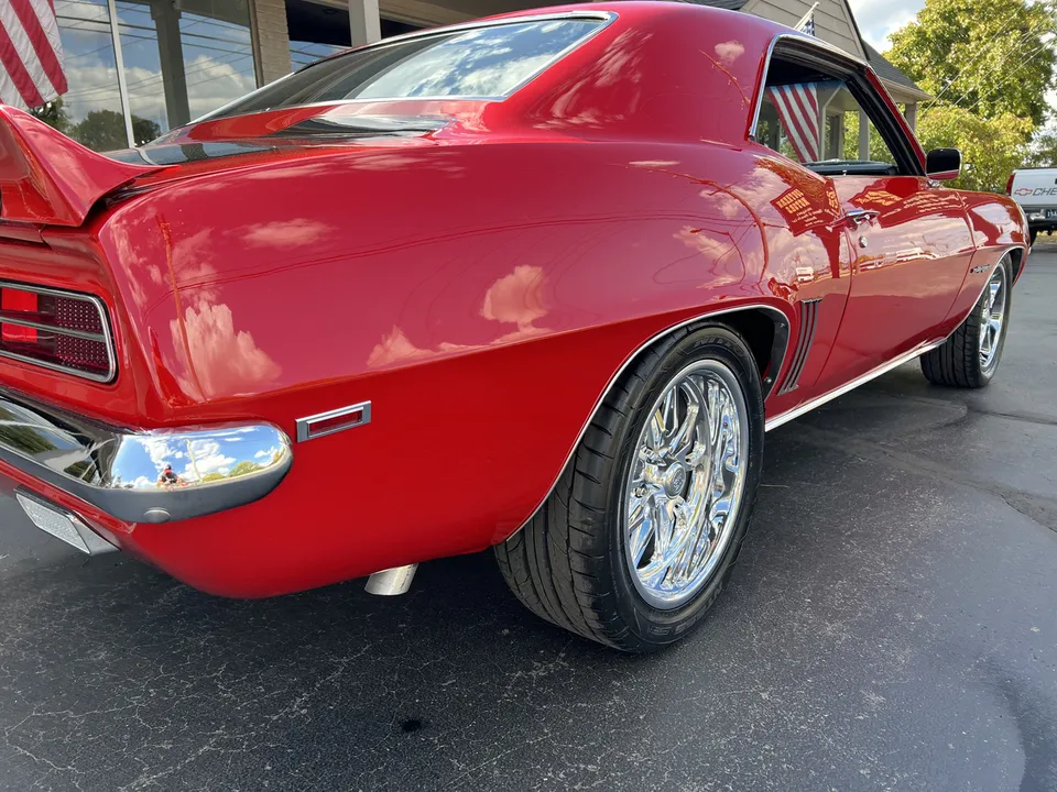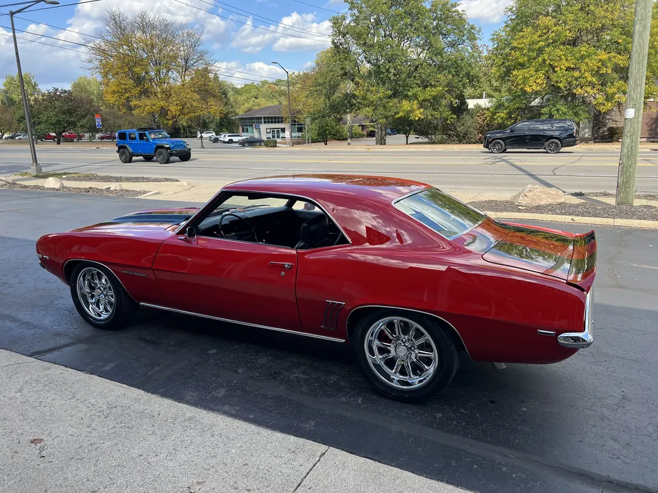 Sneak Peek! 1969 Chevrolet Camaro RS, 397 miles on Complete Professionally Built Restomod, stunning Torch red paint with black striping, black Deluxe interior, professionally built 383 ci stroker engine with Holley Sniper EFI, Dart aluminum heads, scat crank, H-beam rods, Speed Pro pistons, hydraulic roller camshaft, MSD ignition, Detroit speed tubular control arms, CCP 4-wheel disc brakes, Detroit Speed rack & pinion steering, Tremec 5 speed manual transmission, Be Cool aluminum radiator, bucket seats with center console, factory tach & gauges, tilt column, power windows, Retrosounds radio, Pypes dual exhaust, Perfect Launch 12 bolt 3.73 rear axle, 17" US Mag wheels with Nitto rubber, Detroit Speed hideaway headlights, cowl hood, front & rear spoilers, Show or Go! $69900