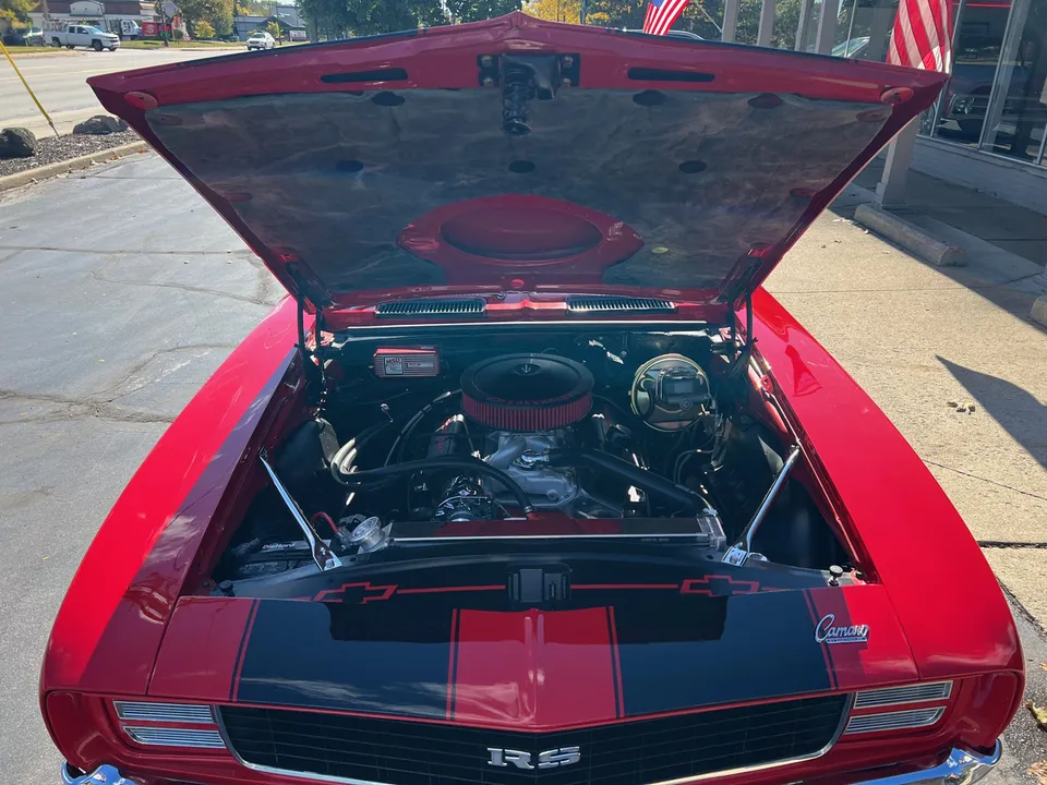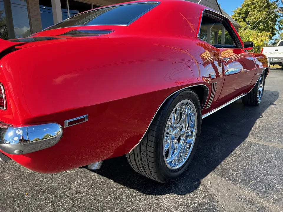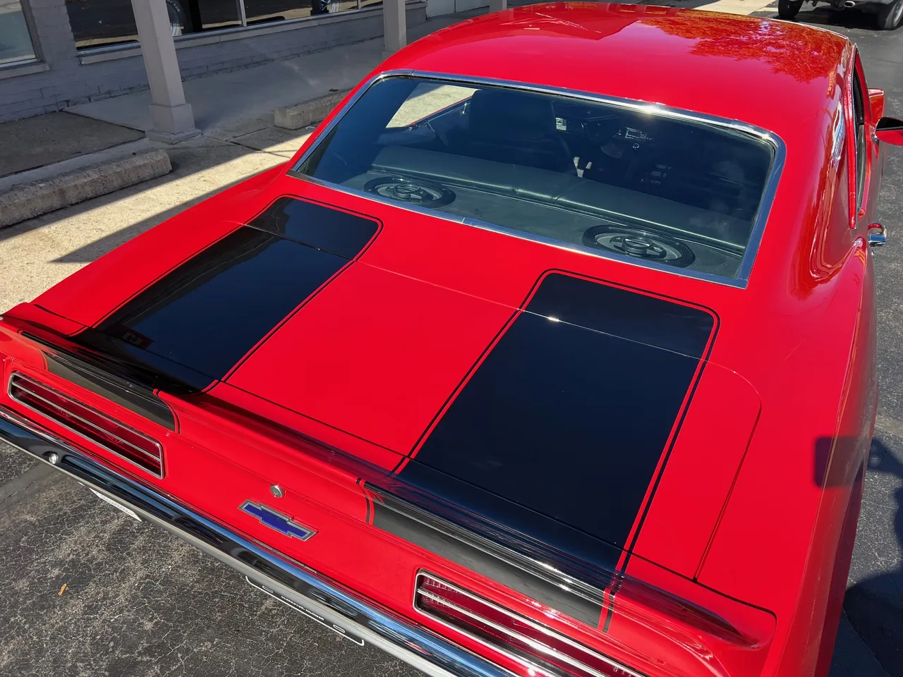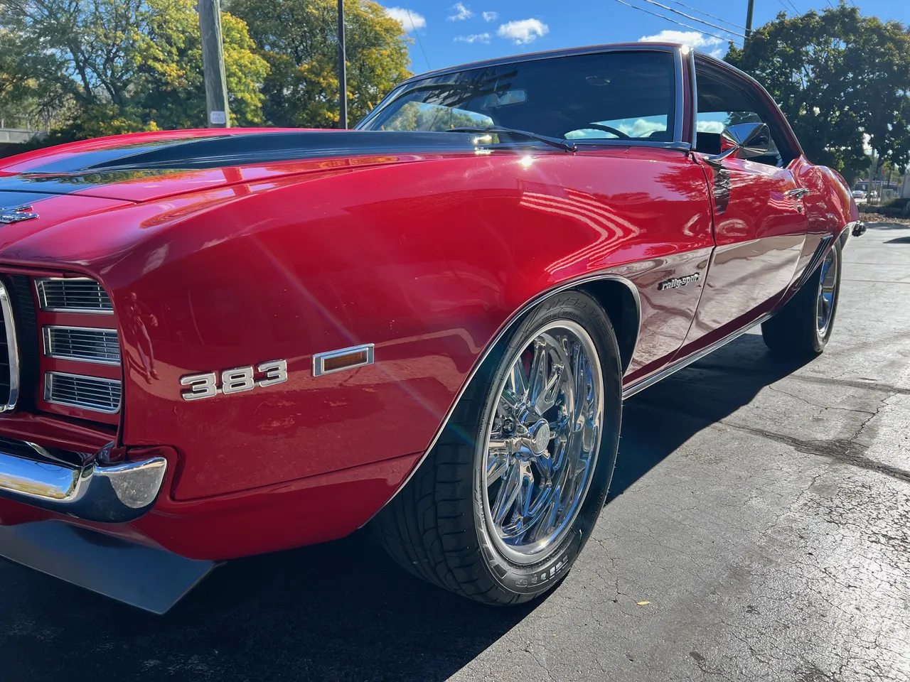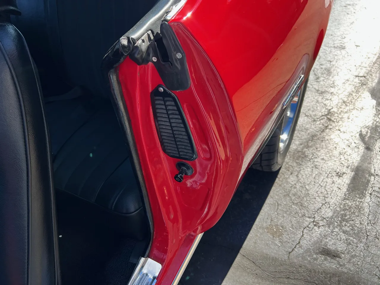 Complete Professionally Built Restomod, stunning Torch red paint, black striping, black Deluxe interior, professionally built 383 ci stroker engine with Holley Sniper EFI, Edelbrock Performer aluminum, Dart aluminum heads, scat crank, H-beam rods, Speed Pro pistons, hydraulic roller camshaft, headers, MSD ignition, Chevrolet air cleaner & valve covers, Detroit speed tubular control arms, power CCP 4-wheel disc brakes, Detroit Speed rack & pinion steering, billet pulley’s, Be Cool aluminum radiator with dual electric fans, Tremec 5 speed manual transmission, bucket seats with center console, tilt column, factory tach & gauges, power windows, Retrosounds radio, Pypes stainless X-pipe dual exhaust, Perfect Launch 12 bolt 3.73 rear axle, 255/45ZR17 Nitto rear tires, 245/45ZR17 fronts, 17" chrome US Mag wheels, Detroit Speed hideaway headlights, cowl hood, front & rear spoilers, ceramic coated, Show or Go!
