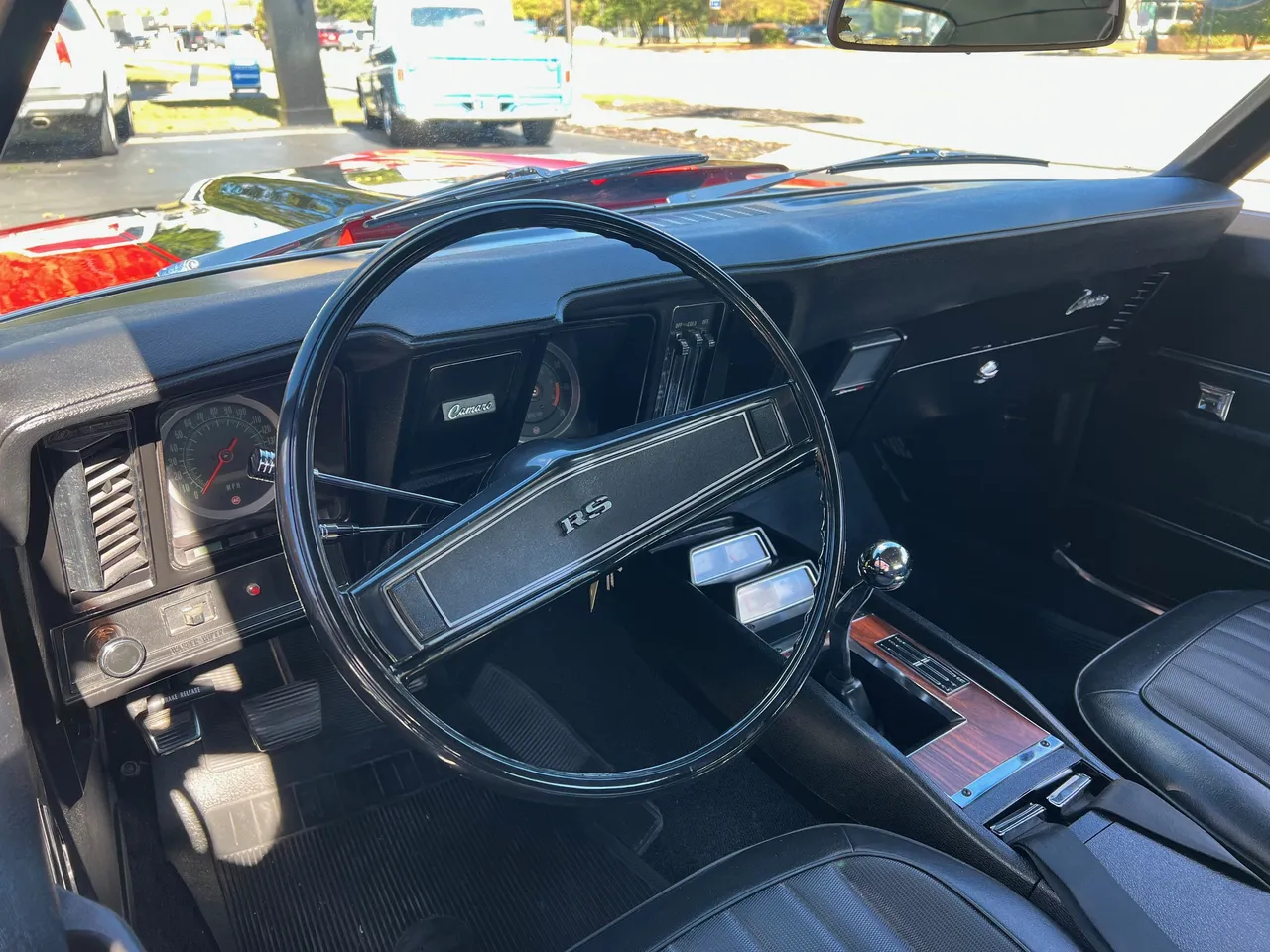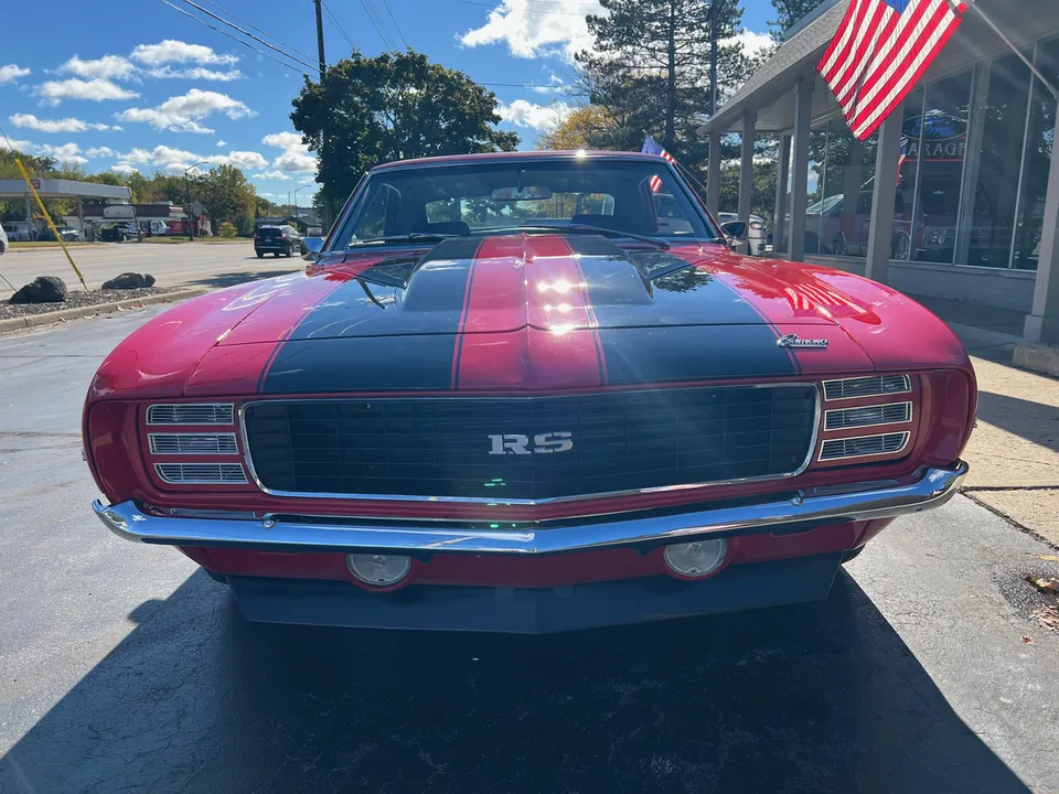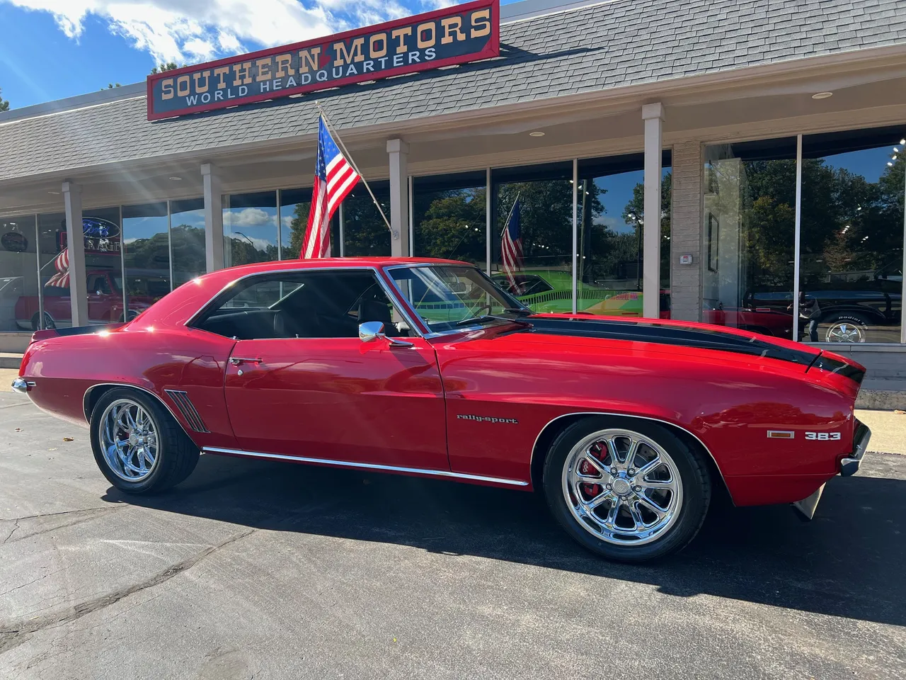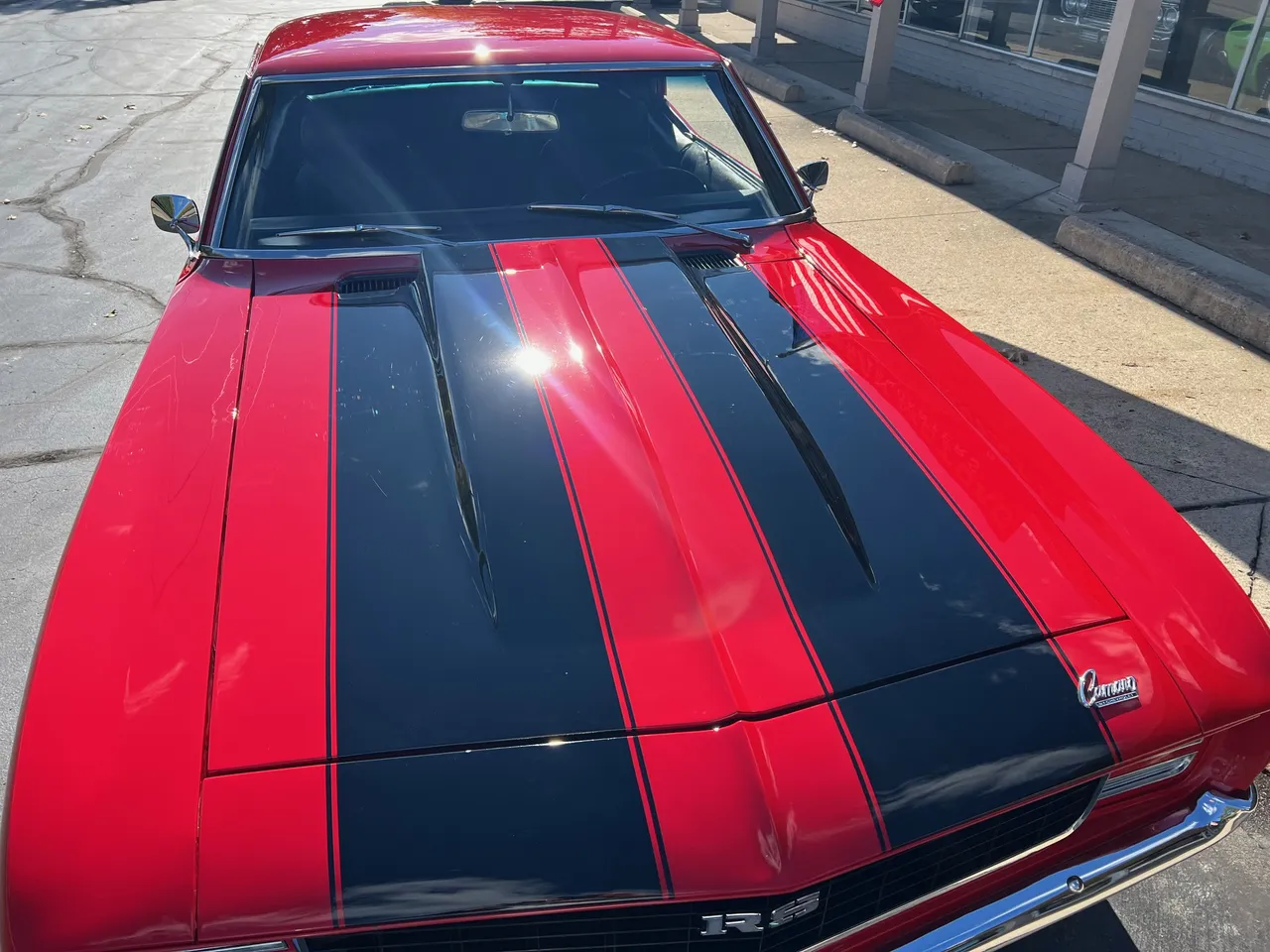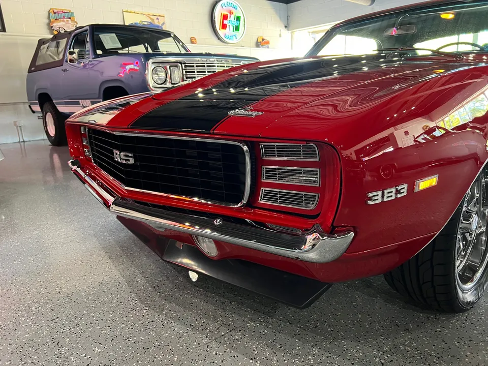 Complete Professionally Built Restomod, stunning Torch red paint, black striping, black Deluxe interior, professionally built 383 ci stroker engine with Holley Sniper EFI, Edelbrock Performer aluminum, Dart aluminum heads, scat crank, H-beam rods, Speed Pro pistons, hydraulic roller camshaft, headers, MSD ignition, Chevrolet air cleaner & valve covers, Detroit speed tubular control arms, power CCP 4-wheel disc brakes, Detroit Speed rack & pinion steering, billet pulley’s, Be Cool aluminum radiator with dual electric fans, Tremec 5 speed manual transmission, bucket seats with center console, tilt column, factory tach & gauges, power windows, Retrosounds radio, Pypes stainless X-pipe dual exhaust, Perfect Launch 12 bolt 3.73 rear axle, 255/45ZR17 Nitto rear tires, 245/45ZR17 fronts, 17" chrome US Mag wheels, Detroit Speed hideaway headlights, cowl hood, front & rear spoilers, ceramic coated, Show or Go!