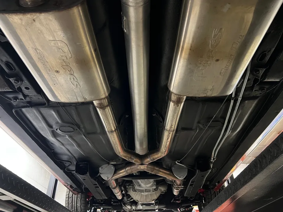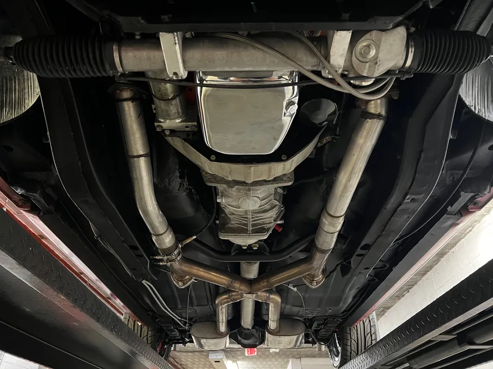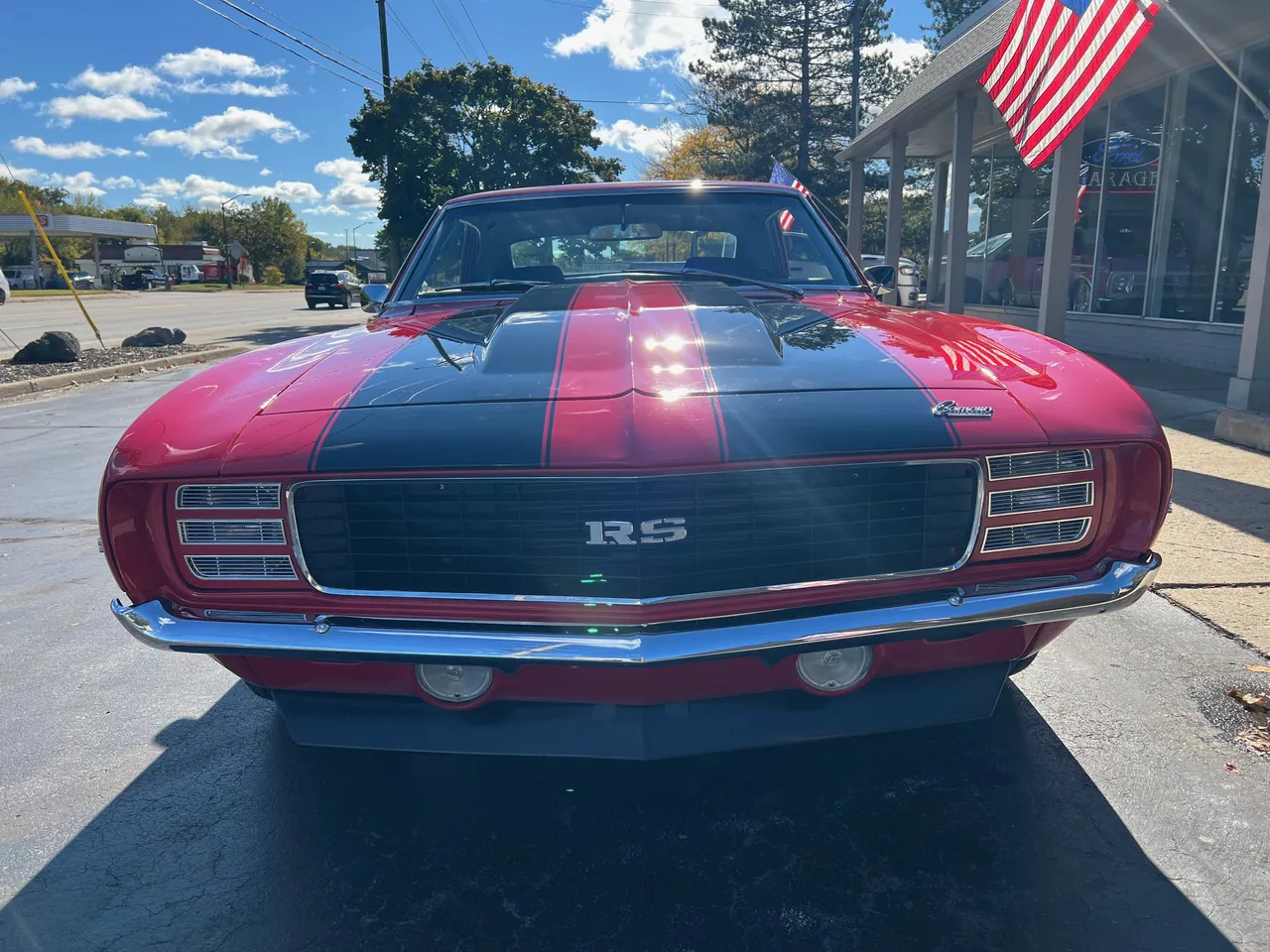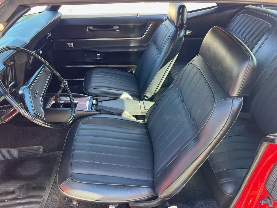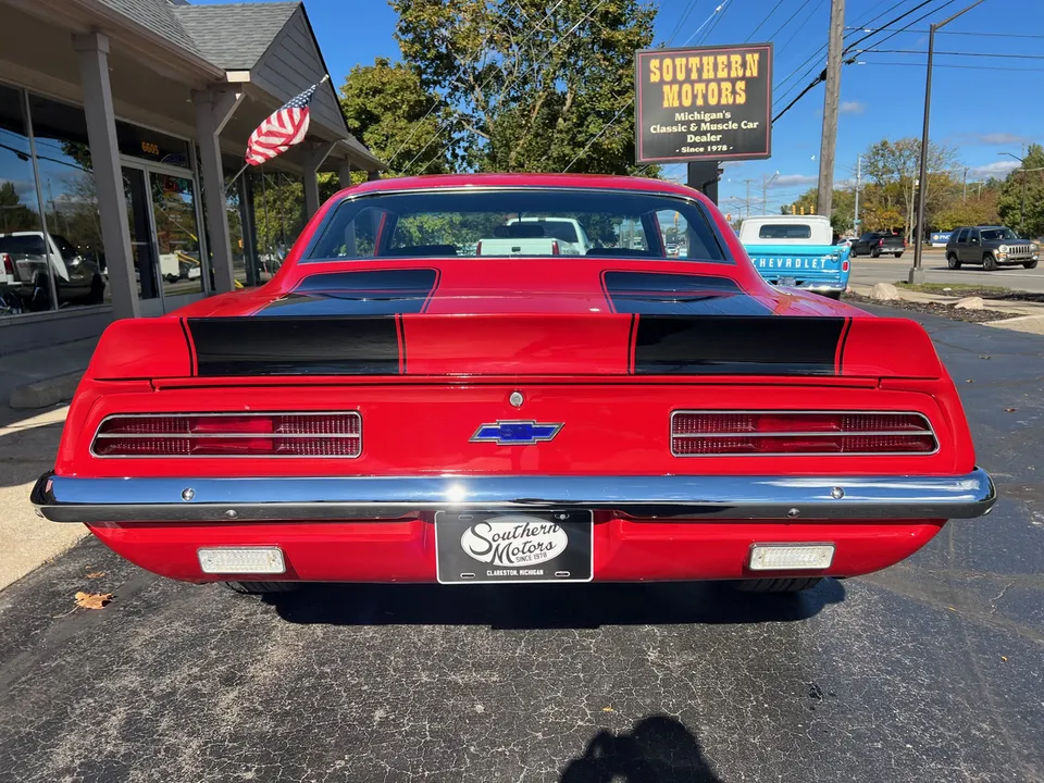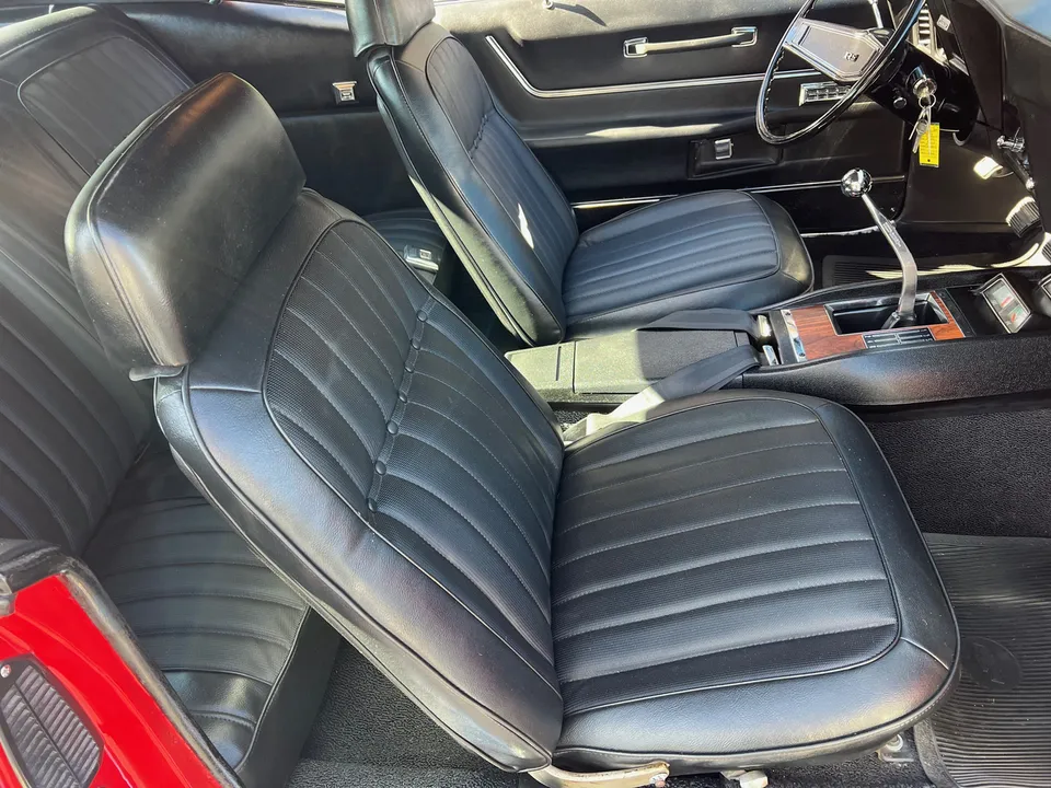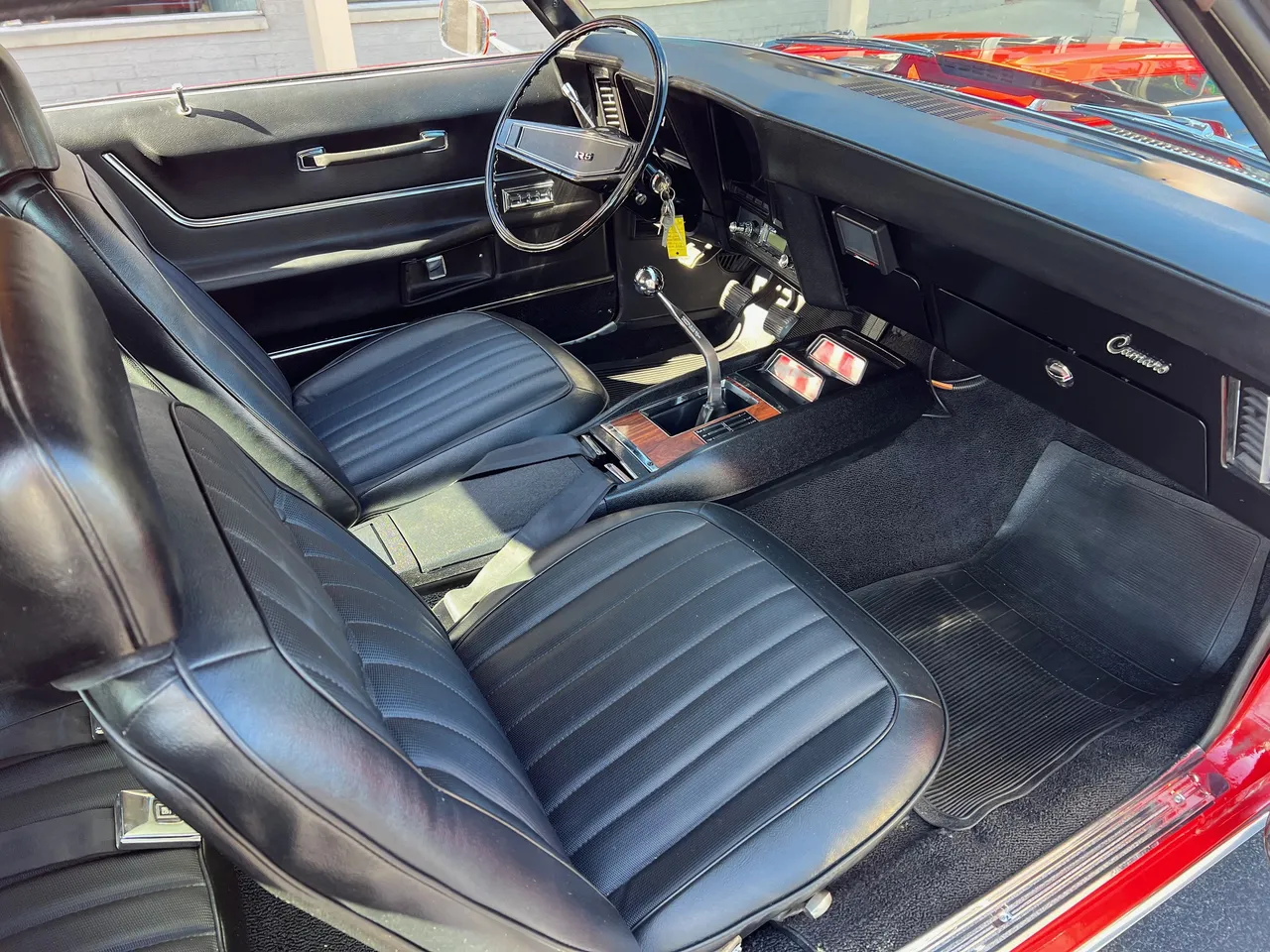 Complete Professionally Built Restomod, stunning Torch red paint, black striping, black Deluxe interior, professionally built 383 ci stroker engine with Holley Sniper EFI, Edelbrock Performer aluminum, Dart aluminum heads, scat crank, H-beam rods, Speed Pro pistons, hydraulic roller camshaft, headers, MSD ignition, Chevrolet air cleaner & valve covers, Detroit speed tubular control arms, power CCP 4-wheel disc brakes, Detroit Speed rack & pinion steering, billet pulley’s, Be Cool aluminum radiator with dual electric fans, Tremec 5 speed manual transmission, bucket seats with center console, tilt column, factory tach & gauges, power windows, Retrosounds radio, Pypes stainless X-pipe dual exhaust, Perfect Launch 12 bolt 3.73 rear axle, 255/45ZR17 Nitto rear tires, 245/45ZR17 fronts, 17" chrome US Mag wheels, Detroit Speed hideaway headlights, cowl hood, front & rear spoilers, ceramic coated, Show or Go!