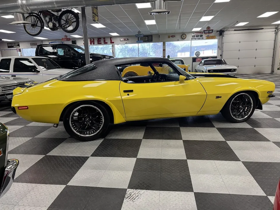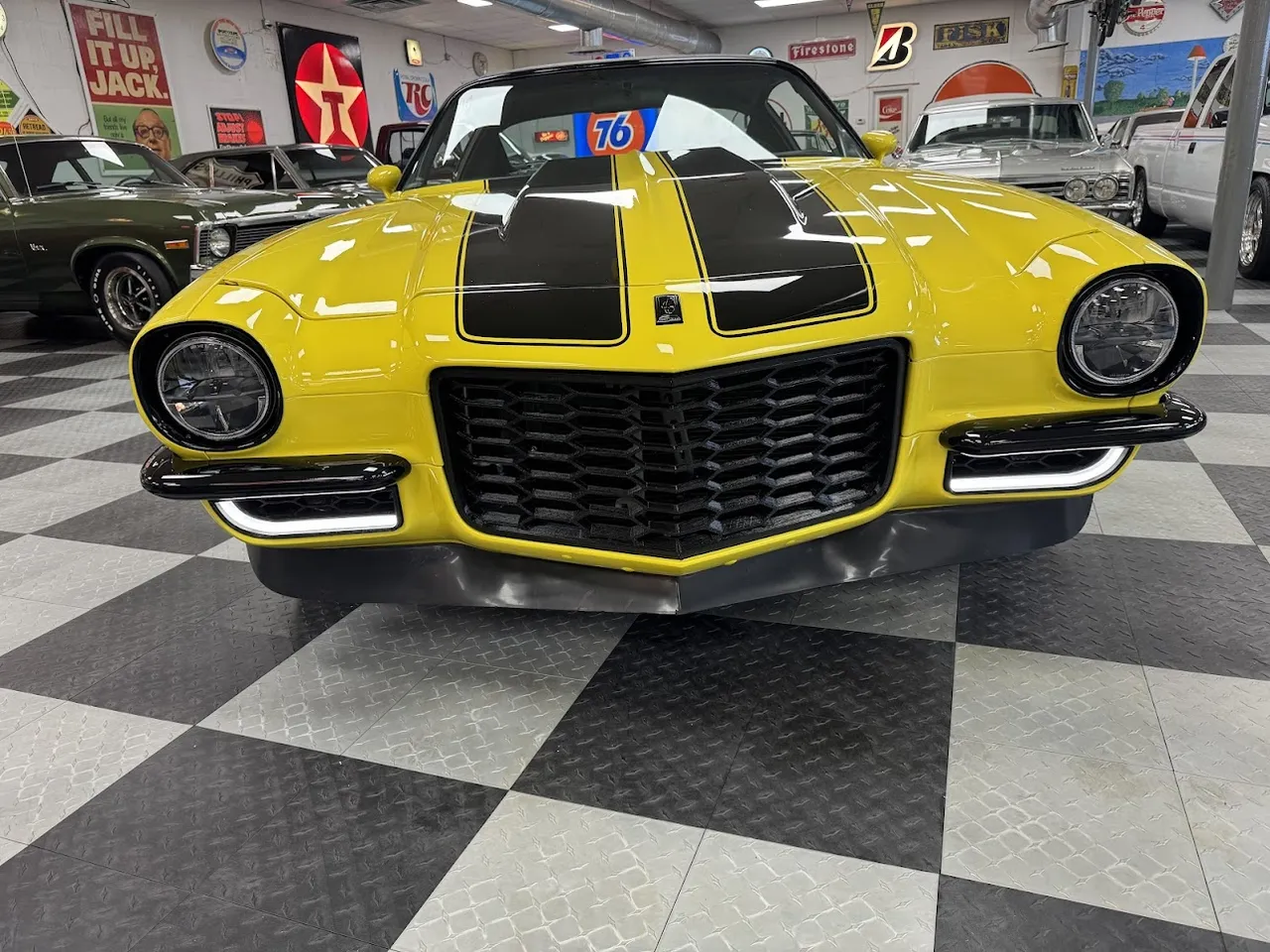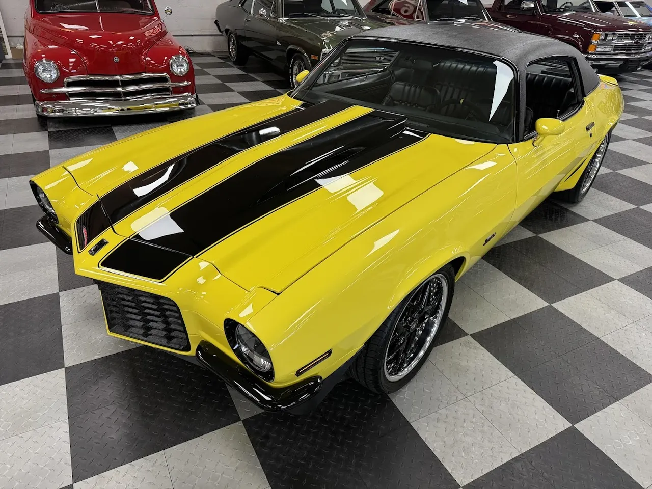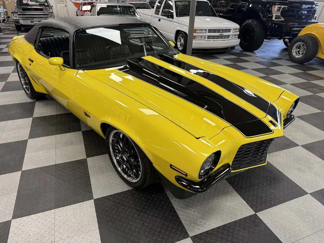 Coming Soon! 1973 Chevrolet Camaro RS Restomod, stunning Corvette yellow paint, black custom leather interior, LS1 5.7L EFI engine, 4L60 Automatic Overdrive transmission, power steering, disc brakes, Vintage A/C, tubular control arms, coil over Suspension, bucket seats with center console, Dakota gauges, MoMo custom leather wrap steering wheel, 18” Custom Built Billet Hydro wheels, LED lighting, Red Oxide floors, $68,900