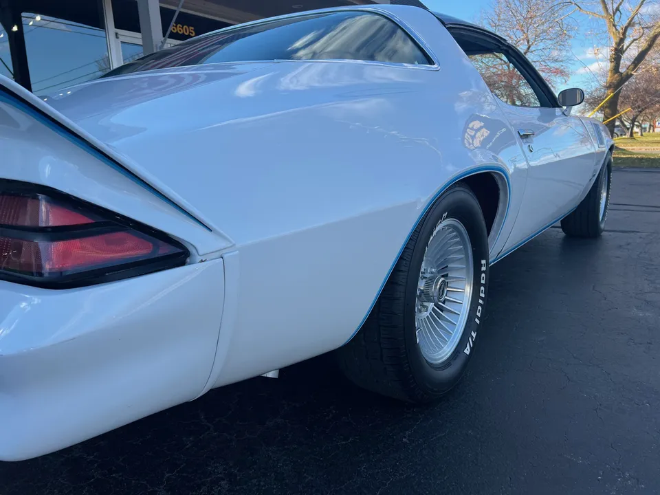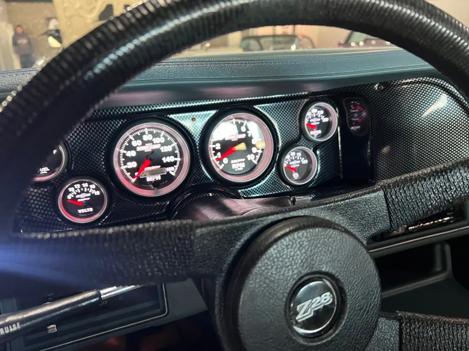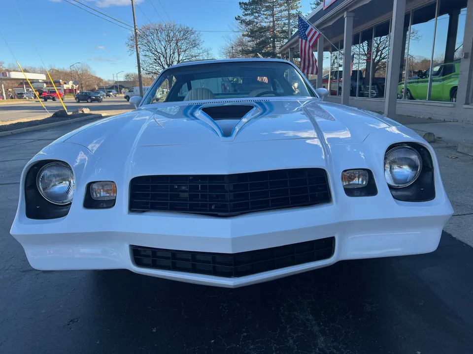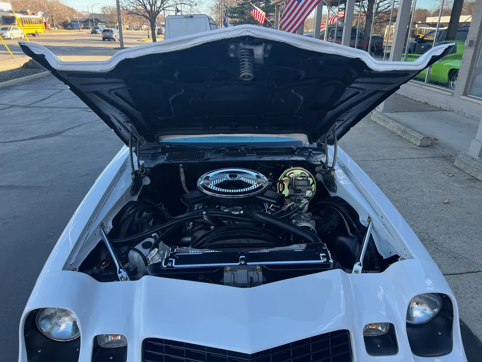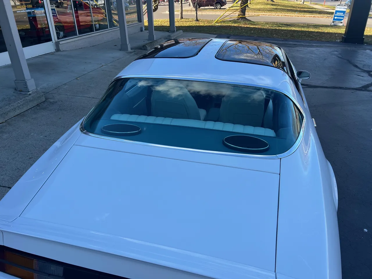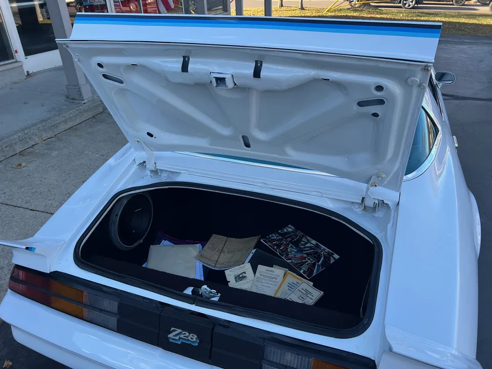 1,100 miles Rotisserie Restoration, clean original Texas car, true Z28, factory (11) Antique white, factory (11) white& vinyl interior, balanced 383 ci/429 hp stroker engine, Holley dual feed 4 bbl, Edelbrock Performer aluminum intake, 280 lift camshaft, roller rockers, steel crank, Keith Black 10-1 pistons, Edelbrock E Force aluminum heads, Hedman ceramic headers, HEI distributor, chrome air cleaner & valve covers, power steering, power disc brakes, Vintage air conditioning, aluminum radiator with shroud, built 700R4 automatic overdrive transmission with B&M 2400 converter, factory bucket seats with center console, Automatic tach & gauges, Kenwood sounds system, remote driver’s mirror, Flowmaster H-pipe dual exhaust, factory 10 bolt 3.42 limited slip rear axle with F41 suspension, 235/60R15 BF Goodrich Radial T/A rear tires, factory 15” aluminum wheels, T-Tops, dual sport mirrors, original build sheet & docs, oxidized primer floors, Ready to Cruise!