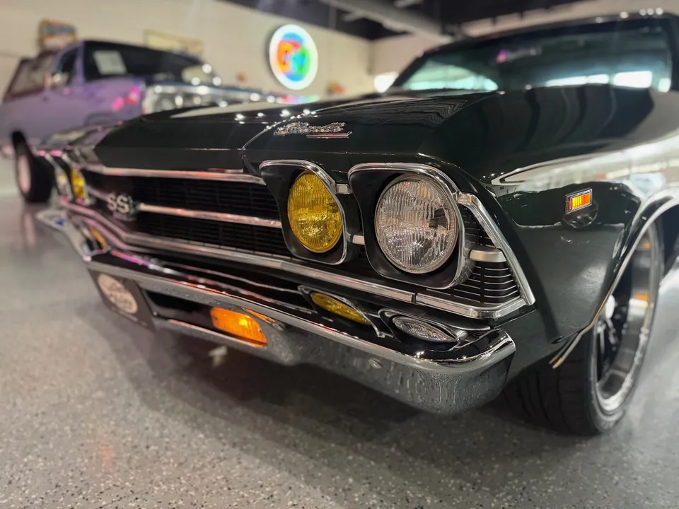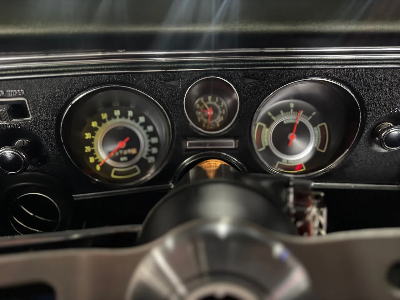 Recent Frame Off Restoration, stunning Fathom green metallic, dark green vinyl interior, white Super Sport stripe, 454 ci engine, Edelbrock 4 bbl, Edelbrock aluminum intake, factory exhaust manifolds, chrome air cleaner & valve covers, HEI distributor, power steering, power 4-wheel disc brakes, 4 speed manual transmission, factory bench seat, factory dash, Sport wheel, Delco am radio, Hurst shifter, Flowmaster dual exhaust, 12 bolt 3.73 limited slip rear axle, 255/40ZR18 rear tires, 245/40ZR18 fronts, American Racing 18” Mags, Holley Retrobright LED Headlights, One Bad Bowtie!
