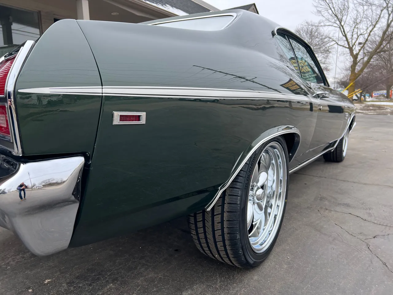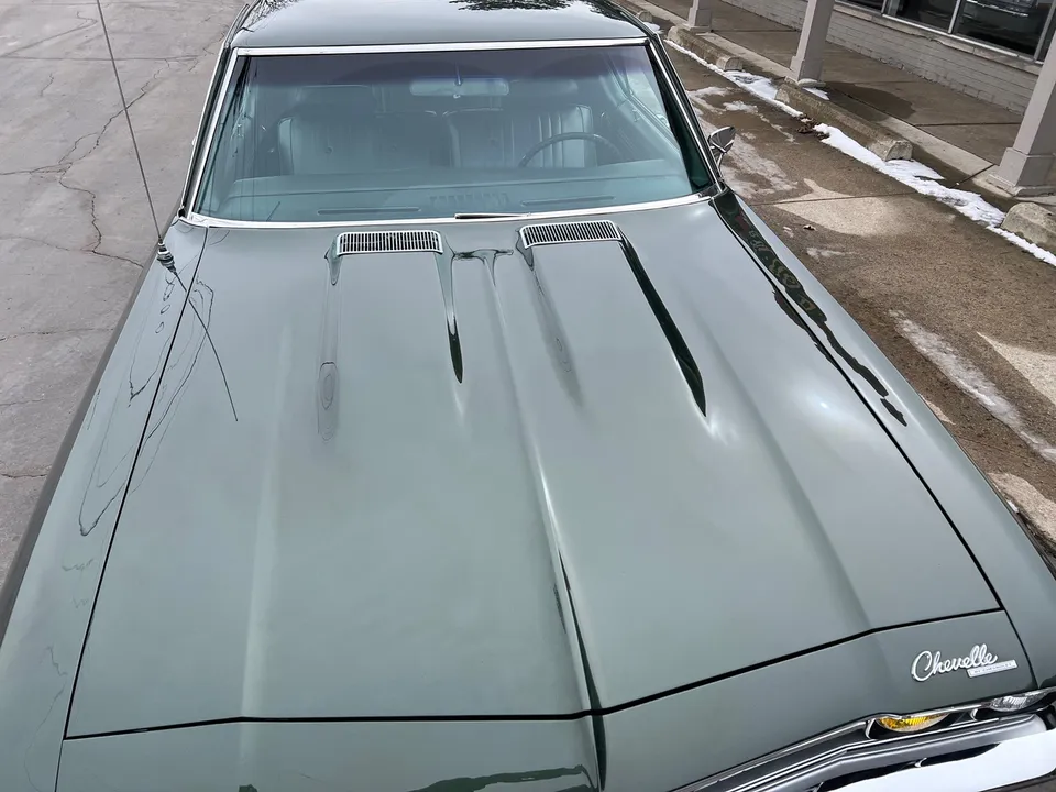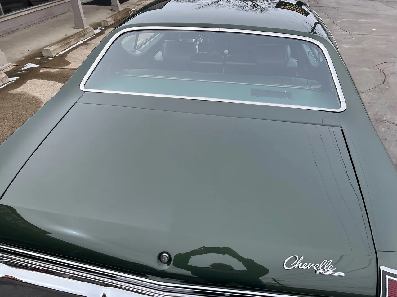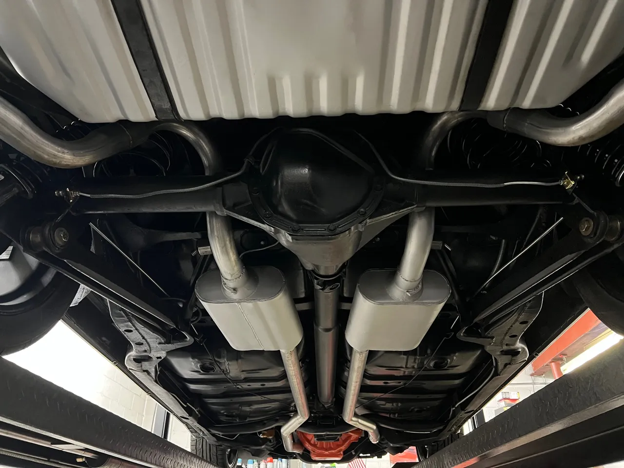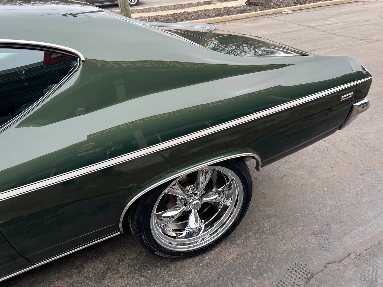 Recent Frame-Off Restoration, stunning Fathom green metallic paint, white SS striping, dark green vinyl interior, 454 ci engine, 4 speed manual transmission, Edelbrock 4 bbl, Edelbrock aluminum intake, mild camshaft, factory exhaust manifolds, chrome air cleaner & valve covers, HEI distributor, power steering, power 4-wheel disc brakes, factory bench seat, factory dash, Sport wheel, Delco am radio (aftermarket radio in glove box), Hurst shifter, Flowmaster dual exhaust, 12 bolt 3.73 limited slip rear axle, 18 & 20” chrome American Racing Torque Thrust wheels, 275/40R10 rear tires, 225/45R18 fronts, Holley Retrobright headlights, Soft Ray glass, One Bad Bowtie!