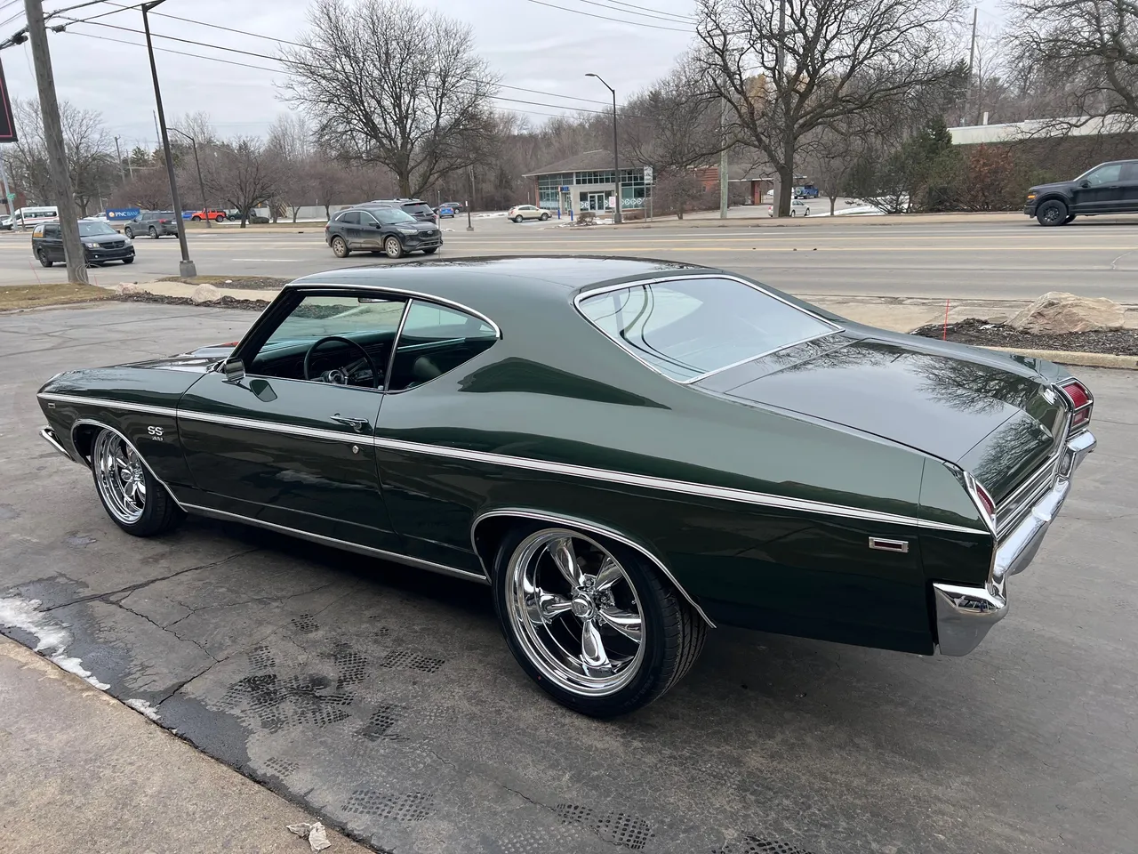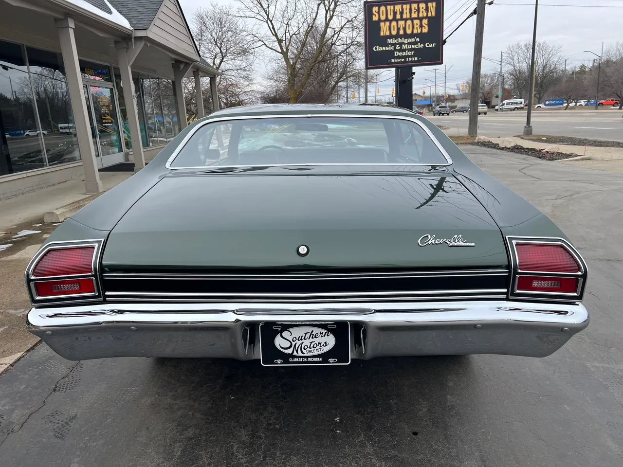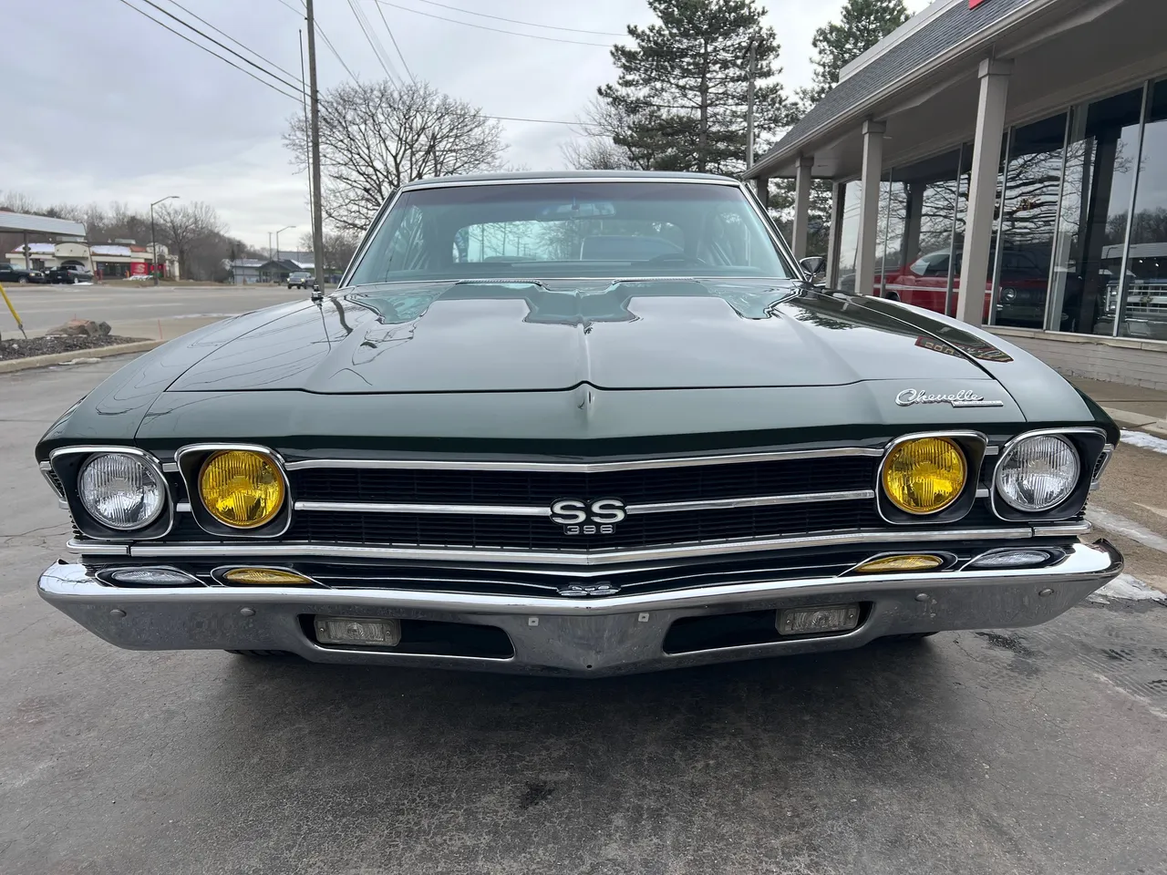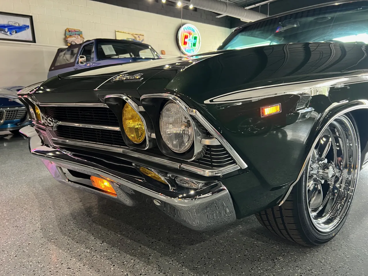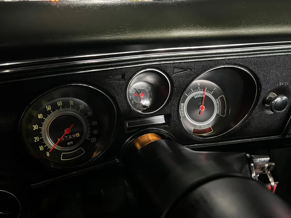 Recent Frame-Off Restoration, stunning Fathom green metallic paint, white SS striping, dark green vinyl interior, 454 ci engine, 4 speed manual transmission, Edelbrock 4 bbl, Edelbrock aluminum intake, mild camshaft, factory exhaust manifolds, chrome air cleaner & valve covers, HEI distributor, power steering, power 4-wheel disc brakes, factory bench seat, factory dash, Sport wheel, Delco am radio (aftermarket radio in glove box), Hurst shifter, Flowmaster dual exhaust, 12 bolt 3.73 limited slip rear axle, 18 & 20” chrome American Racing Torque Thrust wheels, 275/40R10 rear tires, 225/45R18 fronts, Holley Retrobright headlights, Soft Ray glass, One Bad Bowtie!