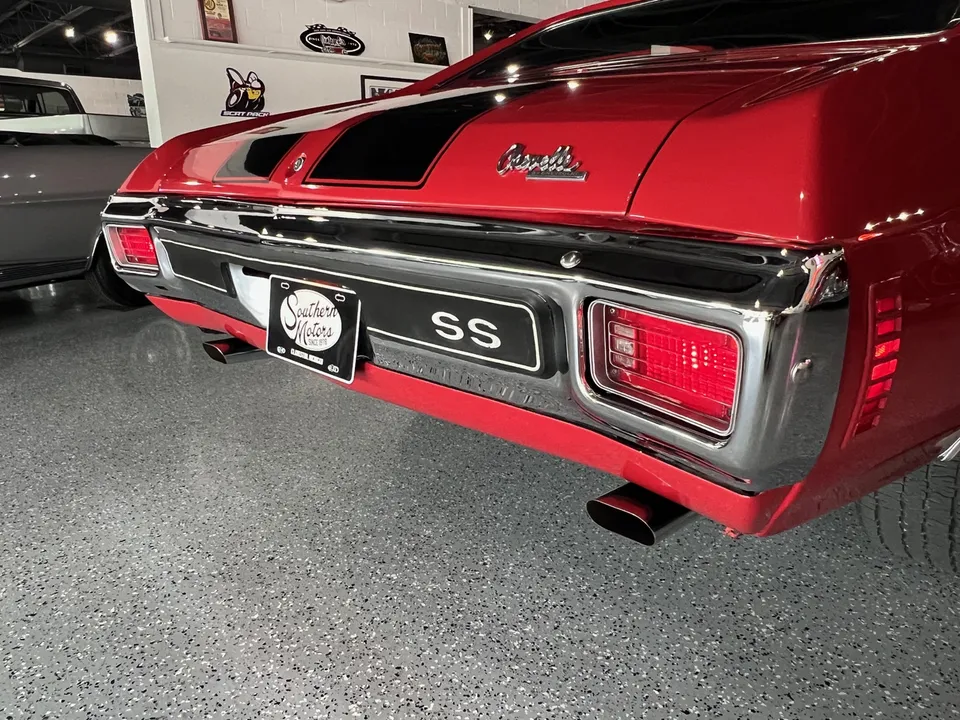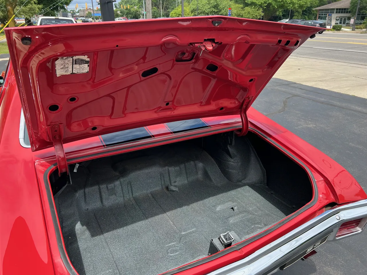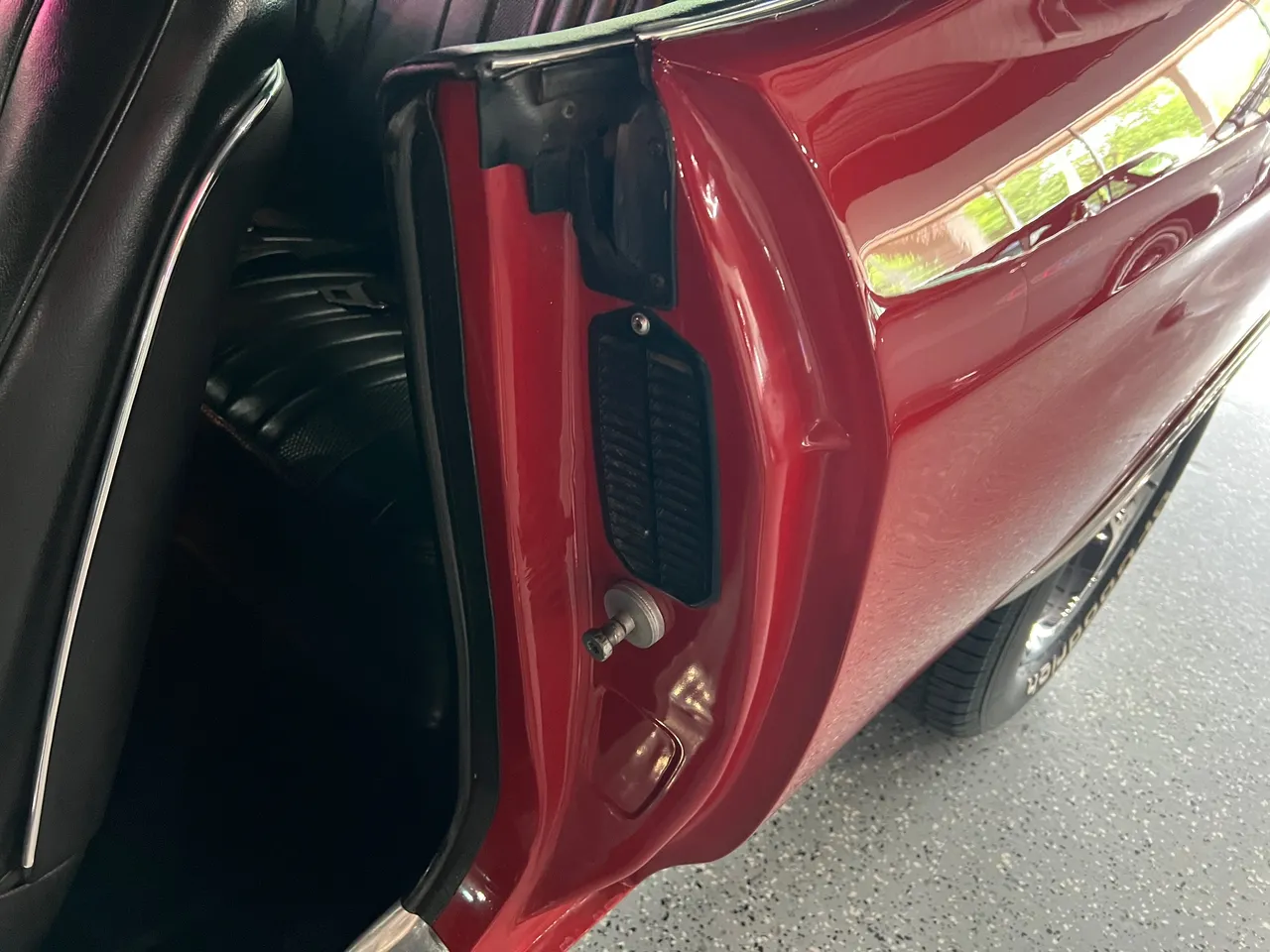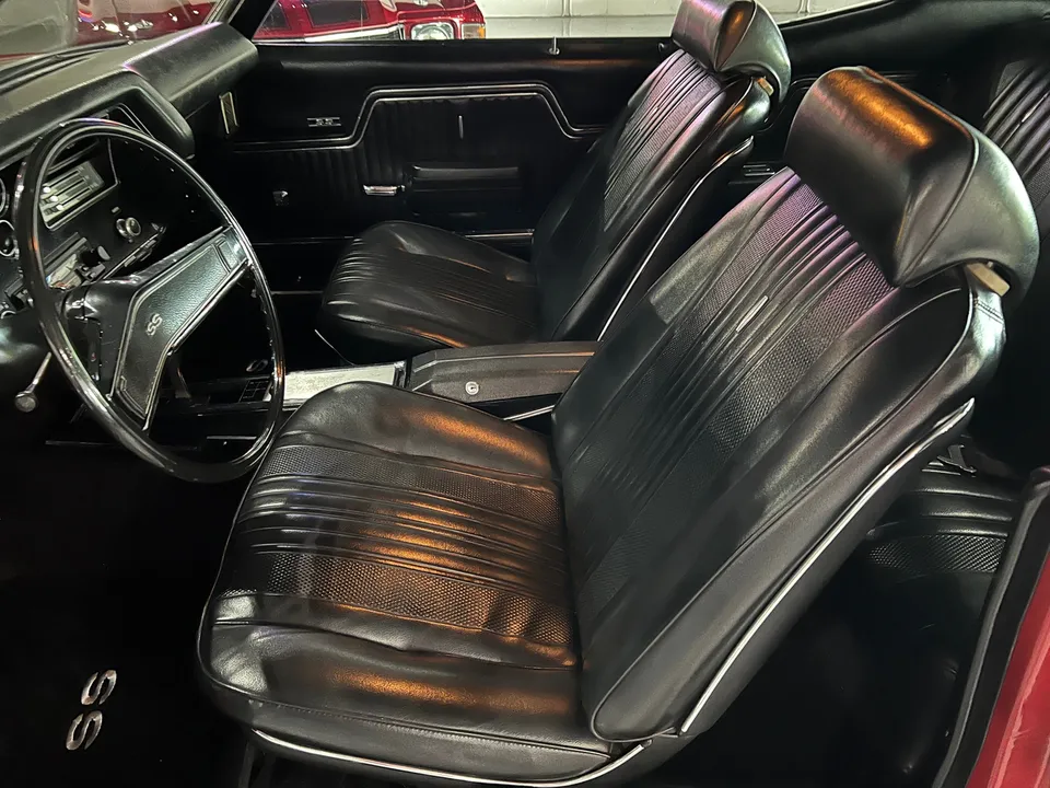 Body-Up Restoration, beautiful factory (75) Cranberry red car, black Super Sport stripes, factory (756) black vinyl interior, 454 ci/425 hp crate engine, Muncie M22 “Rock Crusher” 4 speed manual transmission with scatter shield, Holley dual feed 4 bbl, GM “Winters” aluminum intake, LS6 rectangular port heads, factory exhaust manifolds, chrome air cleaner & vale covers, HEI distributor, power steering, power front disc brakes, factory bucket seats with center console, Hurst shifter, factory SS steering wheel, factory tach & gauges, am/fm radio, power windows, new dual exhaust with chrome tips, factor (CCF) 12 bolt 3.31 limited slip rear axle with F41 suspension & traction bars, 255/60R15 Goodrich Radial T/A rear tires, 235/60R15 fronts, 15” Rally wheels with flat caps, operable cowl hood with pins, Drive Anywhere!