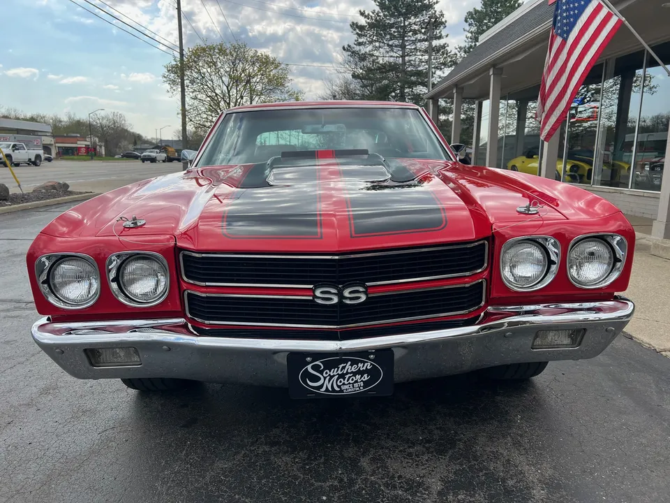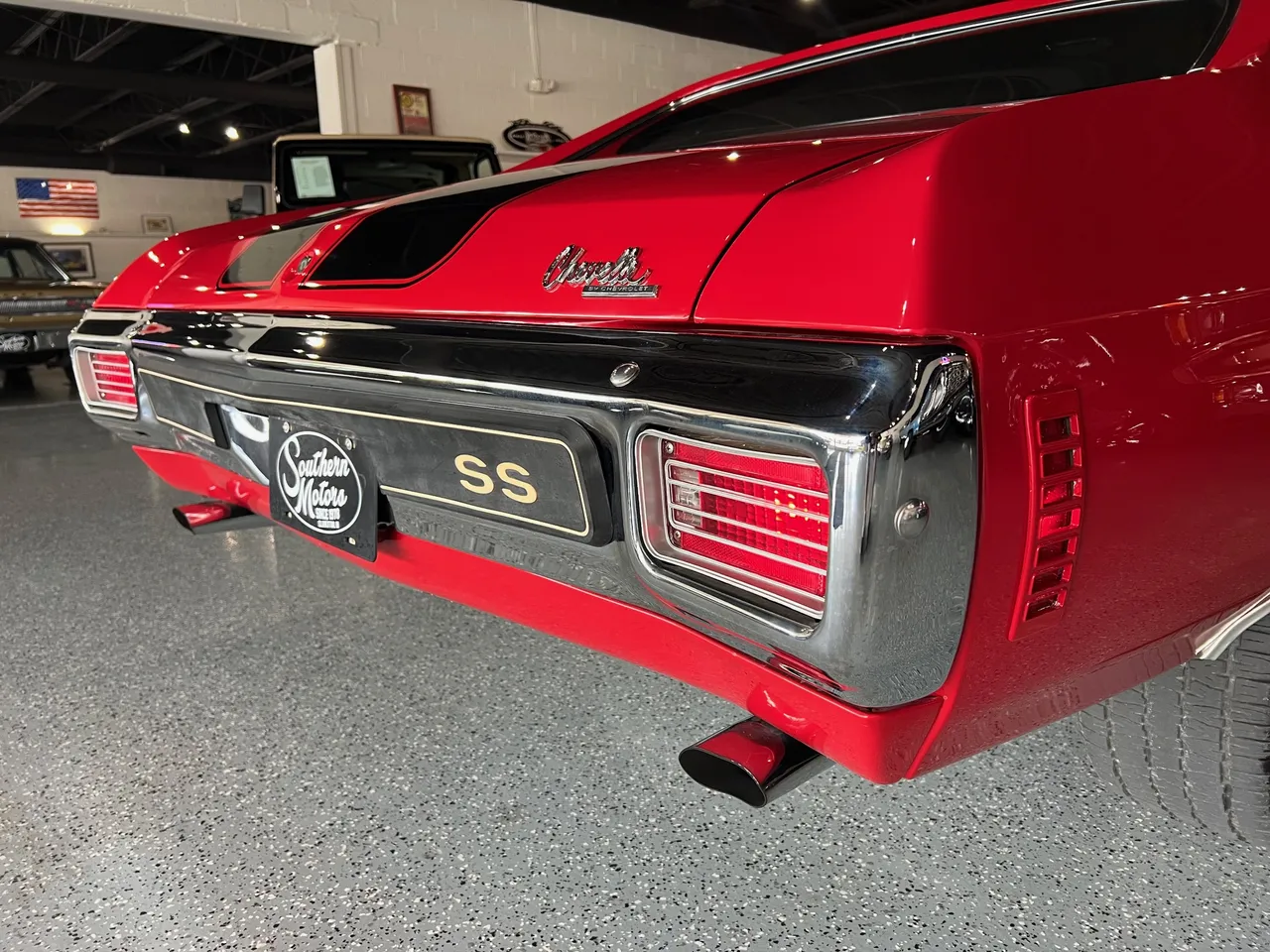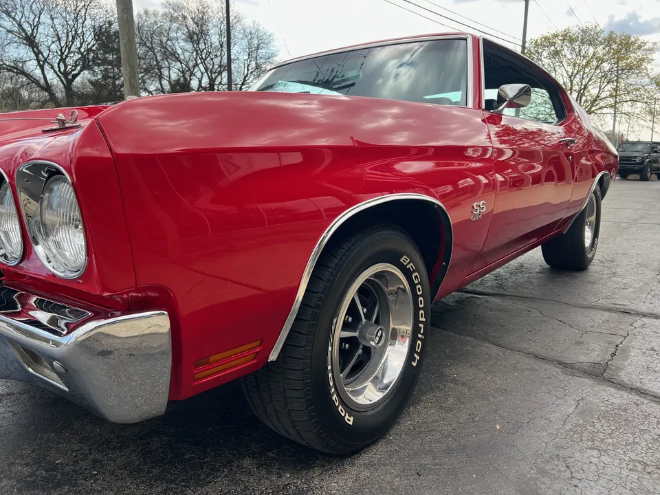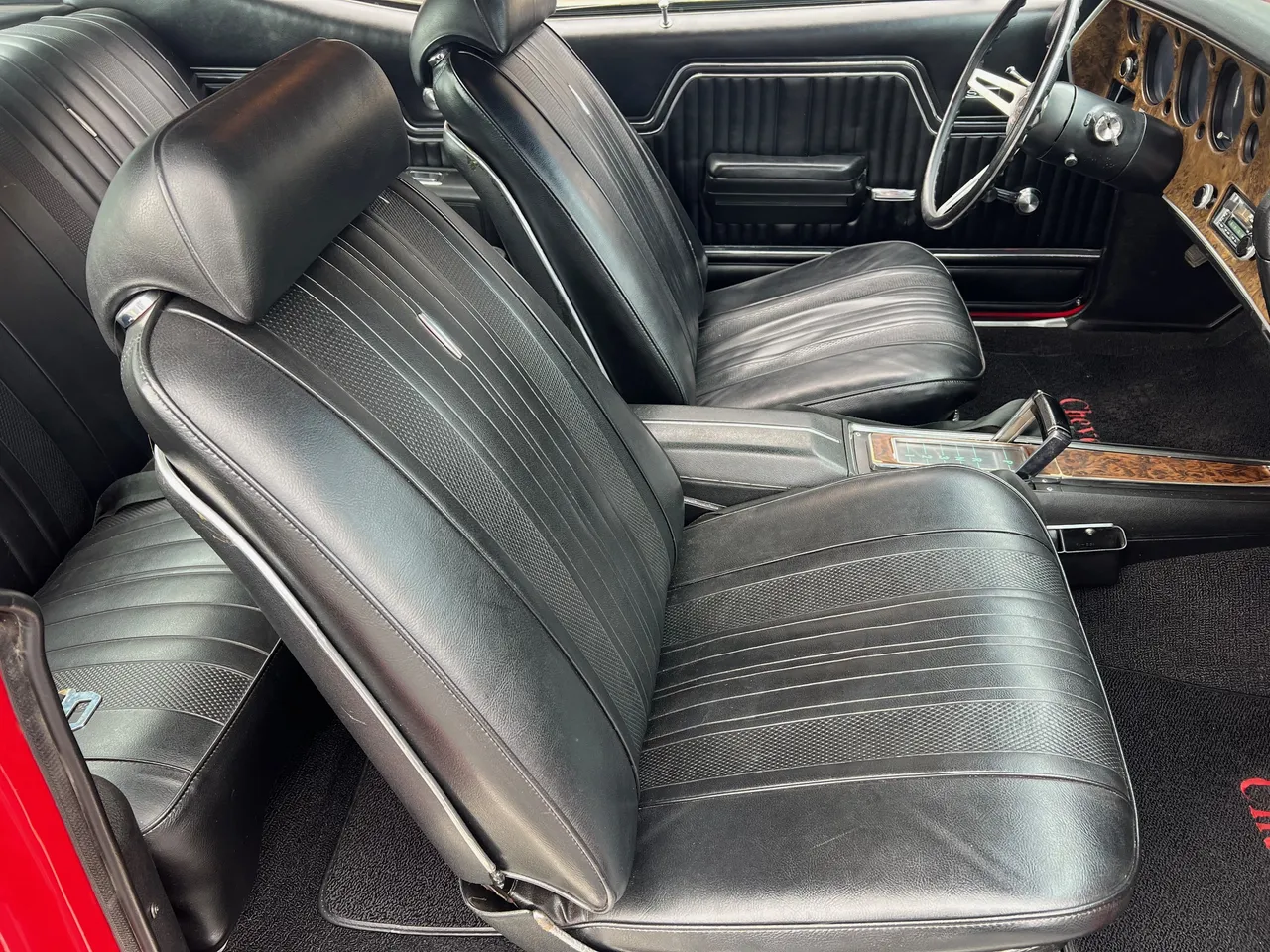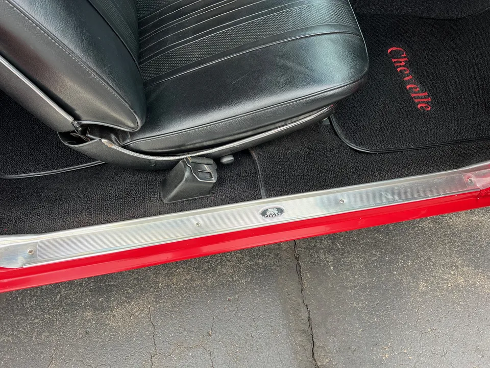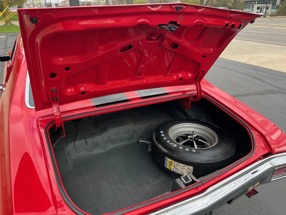 Same Owner For 20 Years, beautiful Cranberry red paint, black Super Sport stripes, factory black vinyl interior, 454 ci engine, Edelbrock 800 cfm 4 bbl, aluminum intake, headers, HEI distributor, chrome air cleaner & valve covers, power steering, power front disc brakes, air conditioning, March aluminum pulley’s & brackets, aluminum radiator with electric fans, 400 turbohydramatic transmission, factory bucket seat interior with center console, tilt column with Sport wheel, factory tach & gauges, Audiosounds radio, Flowmaster dual exhaust with chrome tips, factory (CCW) 12 bolt 3.31 rear axle with F41 suspension, 275/60R15 BF Goodrich Radial T/A rear tires, 245/60R14 fronts, 14 & 15” SS Rally wheels, factory jack with Goodyear bias-ply spare, operable cowl hood with pins, T3 headlights, Soft Ray glass, One Bad Bowtie!