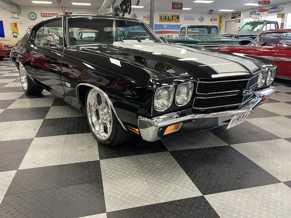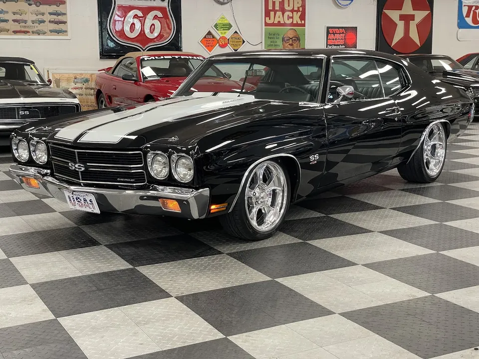 Coming Soon! 1970 Chevrolet Chevelle SS Restomod, factory (19) Tuxedo black car, Crate ZZ454 ci engine, TH400 transmission, power steering, power 4-wheel Wilwood disc brakes, factory A/C, bucket seat with console, factory tach & gauges, am/fm radio, Comfort grip steering, 12 Bolt 3.31 rear axle with F41 suspension, operable cowl induction hood, 18 & 20” American Racing Billet Gasser wheels, One Bad Bowtie! $82,900IN STOCK