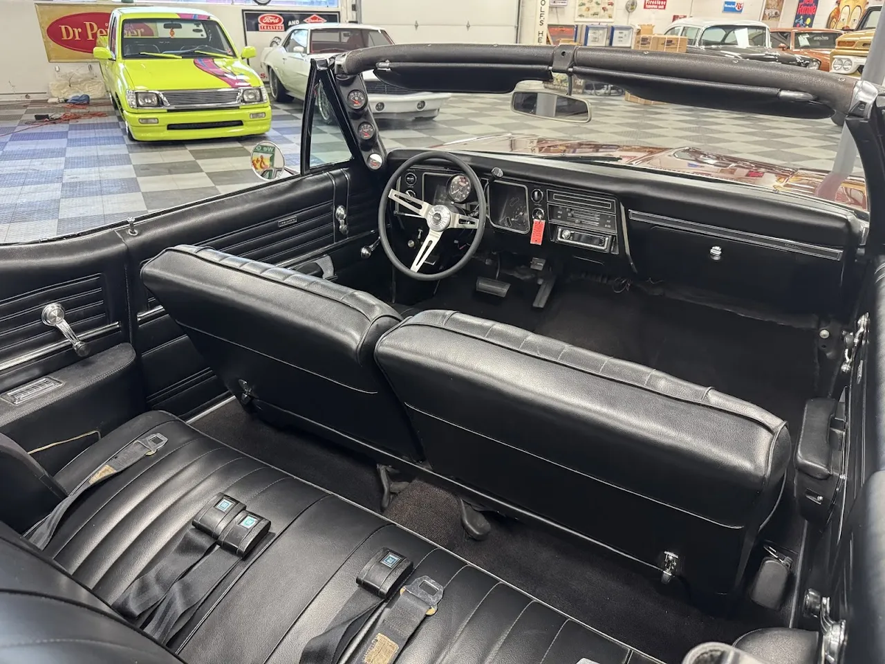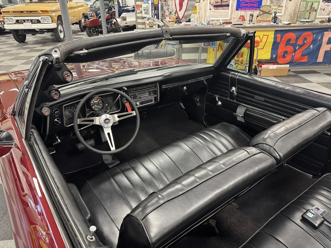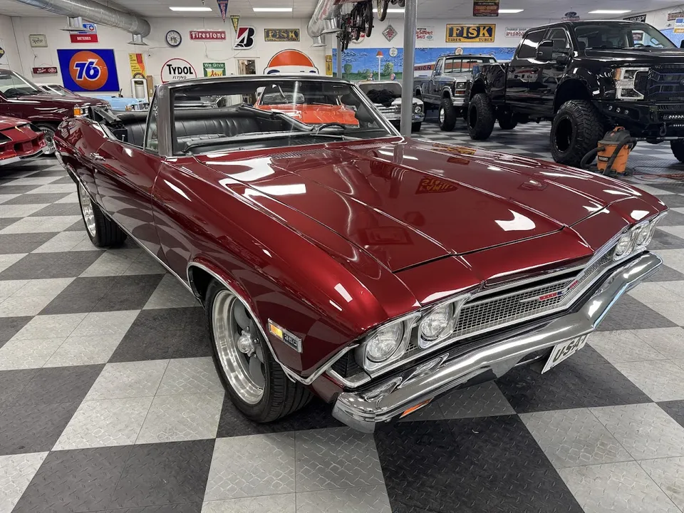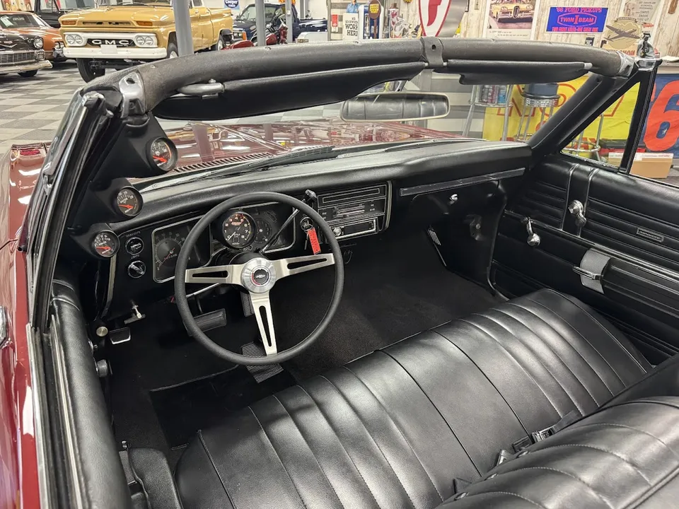 Coming Soon! 1968 Chevrolet Chevelle Malibu Convertible, stunning factory (N) Cordovan Maroon metallic, factory Black vinyl interior, pounding 383 ci stroker engine, 700R4 automatic overdrive transmission, power steering, power disc brakes, factory bench seat interior, stock dash & gauges, Sport steering wheel, added tach and a pillar gauge pod, power top, AM/FM stereo, 12 Bolt 3.73 posi rear axle w/ ladder bars, 18” American Racing Torque Thrust D wheels, Ready to Cruise! $48,900