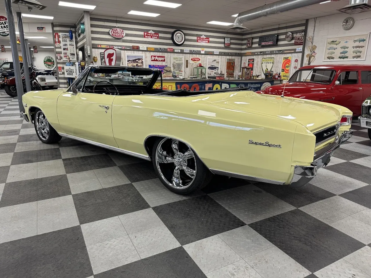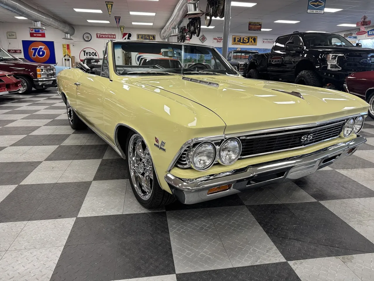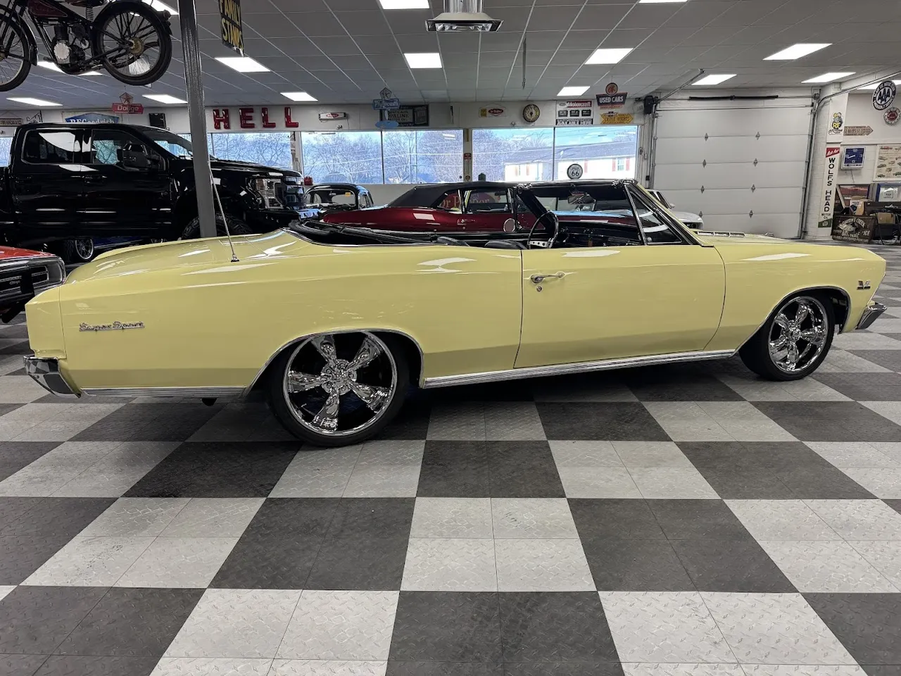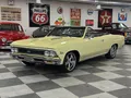 Coming Soon! 1966 Chevrolet Chevelle Convertible, beautiful Butternut Yellow car, factory black interior, 396 ci engine, Muncie 4 speed manual transmission, power steering, power disc brakes, Bucket seat interior with center console, factory dash & gauges, two bar wood wheel, Hurst shifter, power top, AM/FM stereo, 12 bolt rear axle, 18 & 20” Coys Chrome wheels, One Clean Bowtie! $58,900