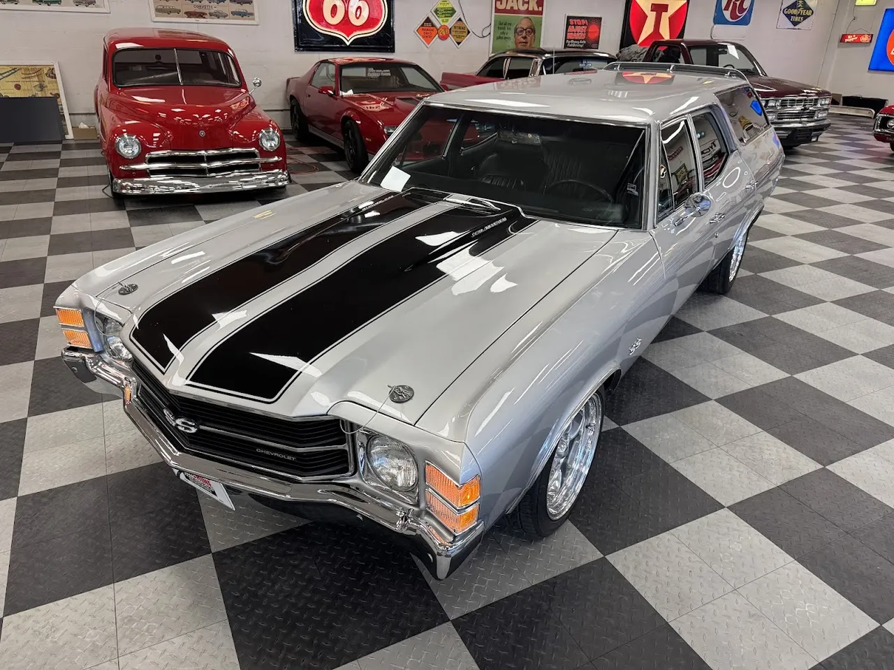 Coming Soon! 1971 Chevrolet Chevelle wagon, SS tribute, beautiful Cortez sliver, black vinyl interior, 350 ci engine, 700R4 automatic overdrive, power steering, power disc brakes, factory A/C, bucket seat interior with center console, tach & gauges, tilt column, cruise control, 4 bar wheel, power rear window, Retro sounds radio, factory 10 bolt rear axle, 17” American Racing Hopster wheels, Ready to Cruise! $38,900