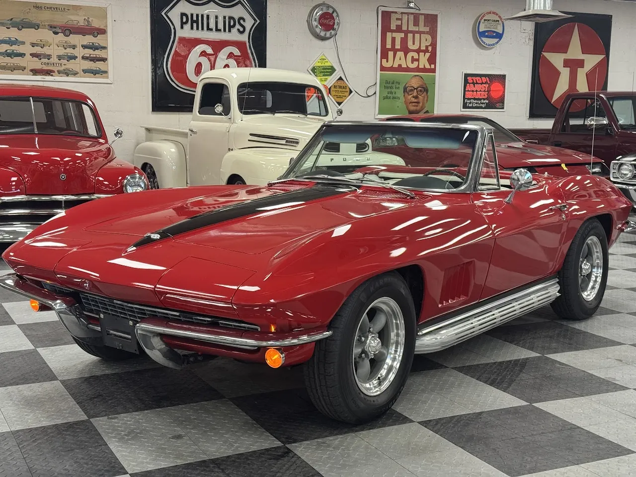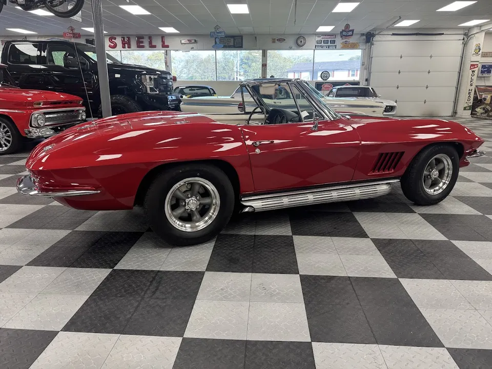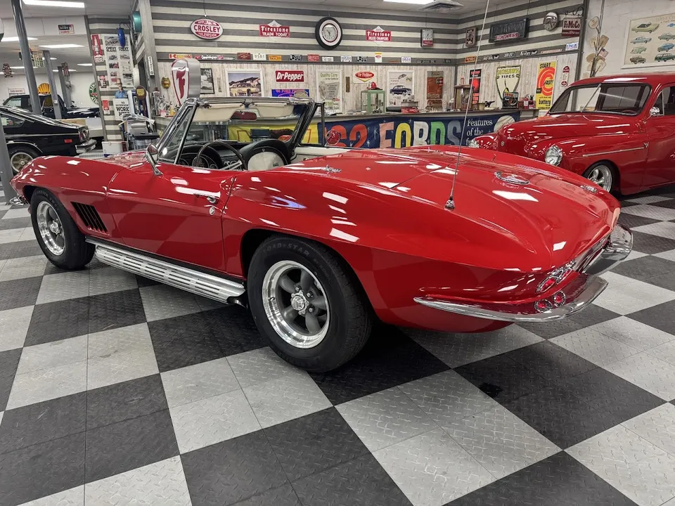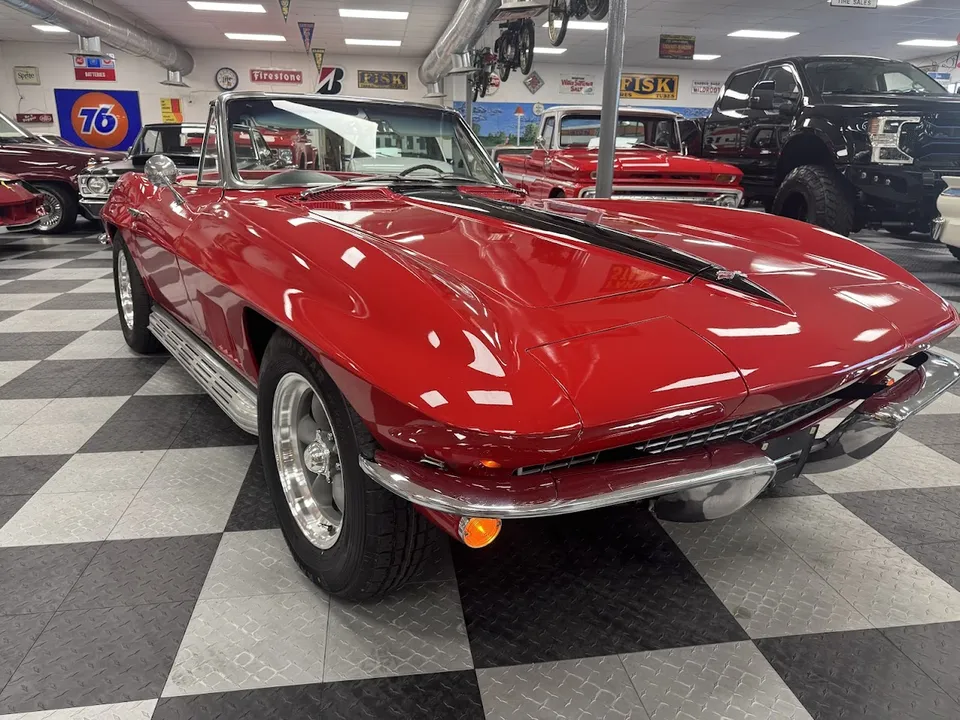 Coming Soon! 1967 Chevrolet Corvette Roadster, Rally Red paint, white interior, ate correct 327 cidengine, 4 speed manual transmission, factory power steering, power four wheel disc brakes, factory A/C, bucket seat interior, factory tach & gauges, factory wood wheel, power windows, am/fm stereo, actory rear axle, spare cover, white top, side exhaust, 15”Torque Thrust D wheels, Ready to Cruise! $69,900
