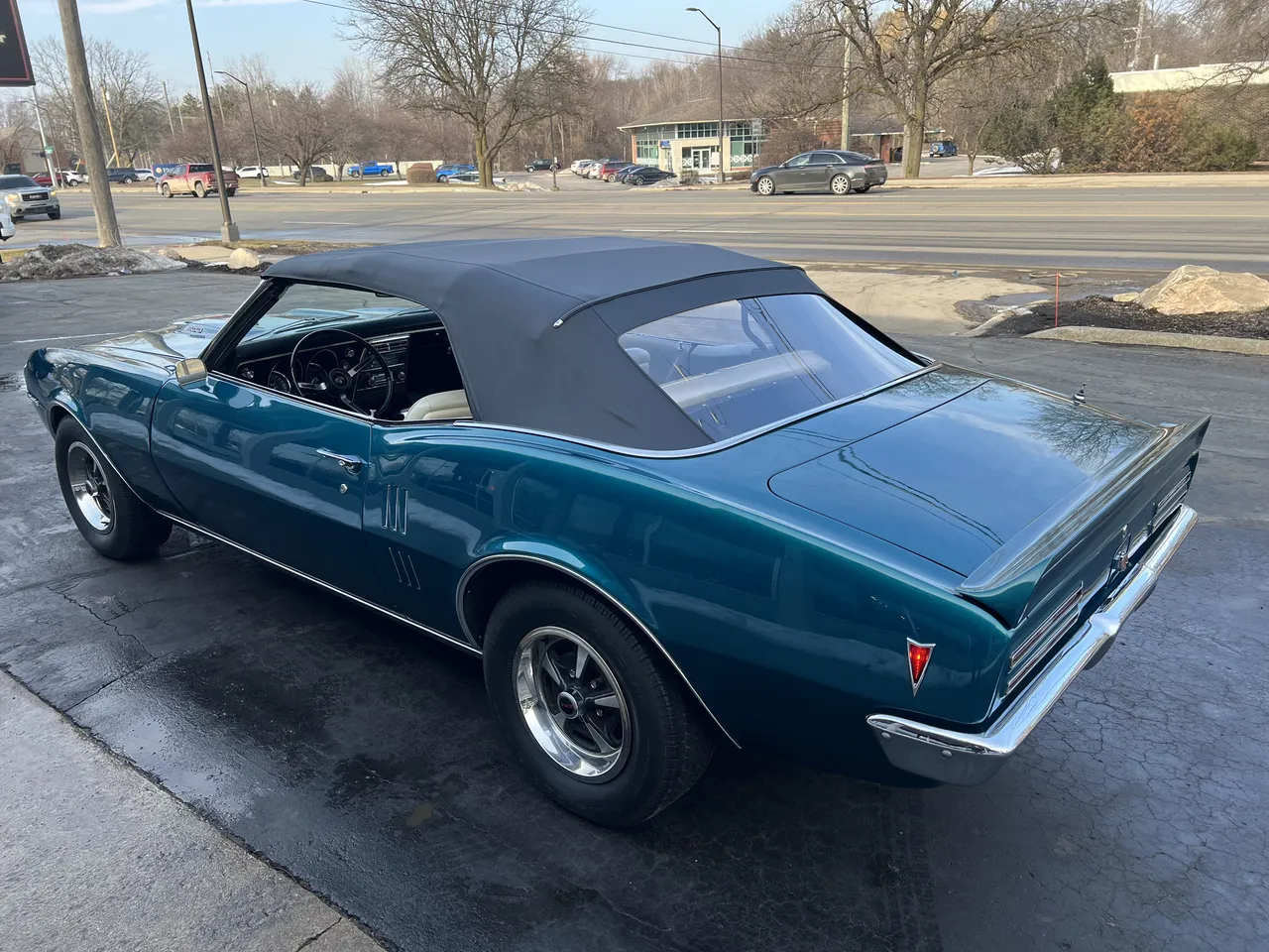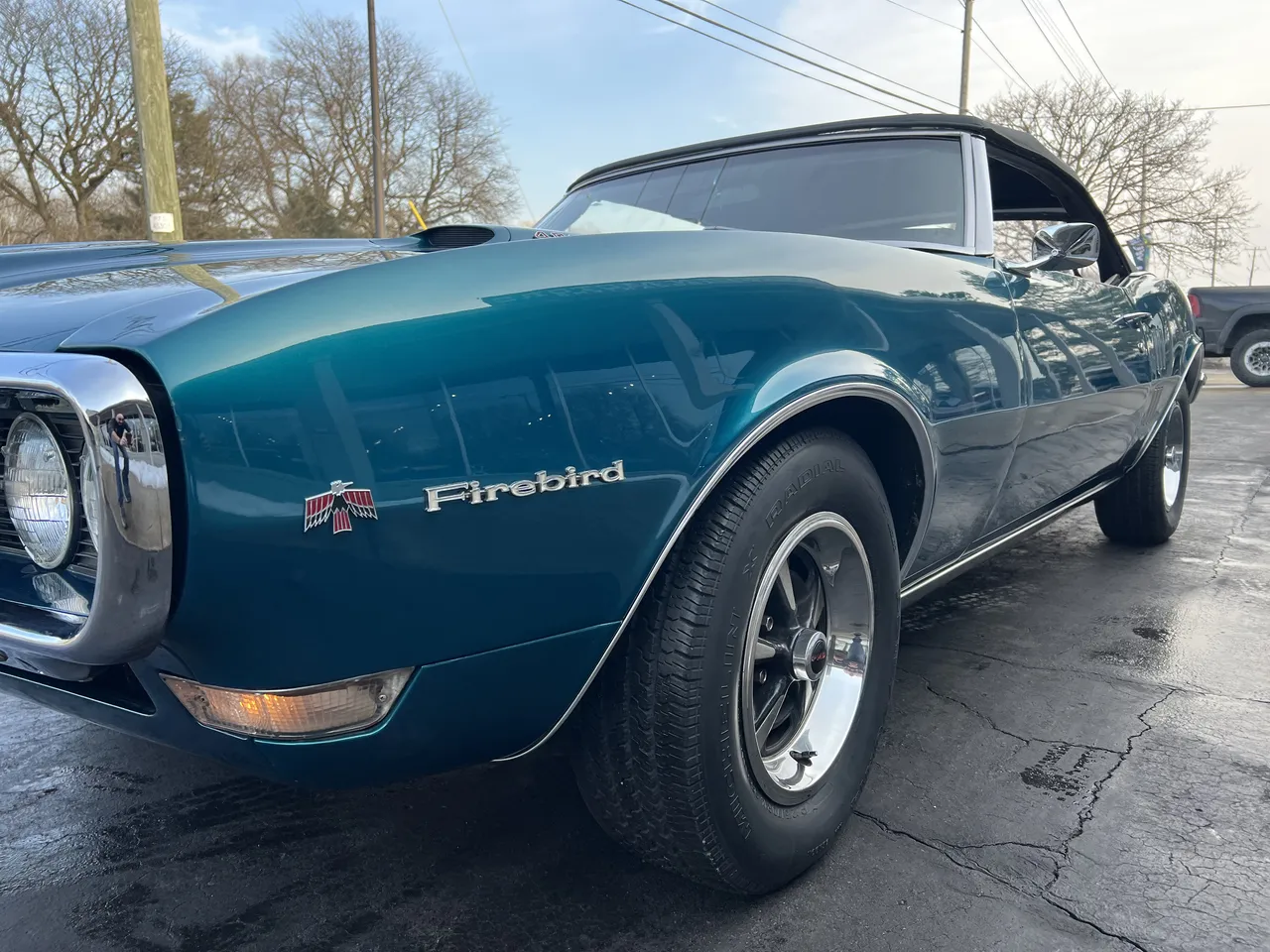 Sneak Peek! 1968 Pontiac Firebird Convertible, beautiful Tahoe turquoise metallic paint, white deluxe interior, matching number 400 ci engine, automatic, power steering, power disc brakes, air conditioning, bucket seats with center console, power windows, new power convertible top, factory rear axle, Rally II wheels, Read to Cruise! $46,900