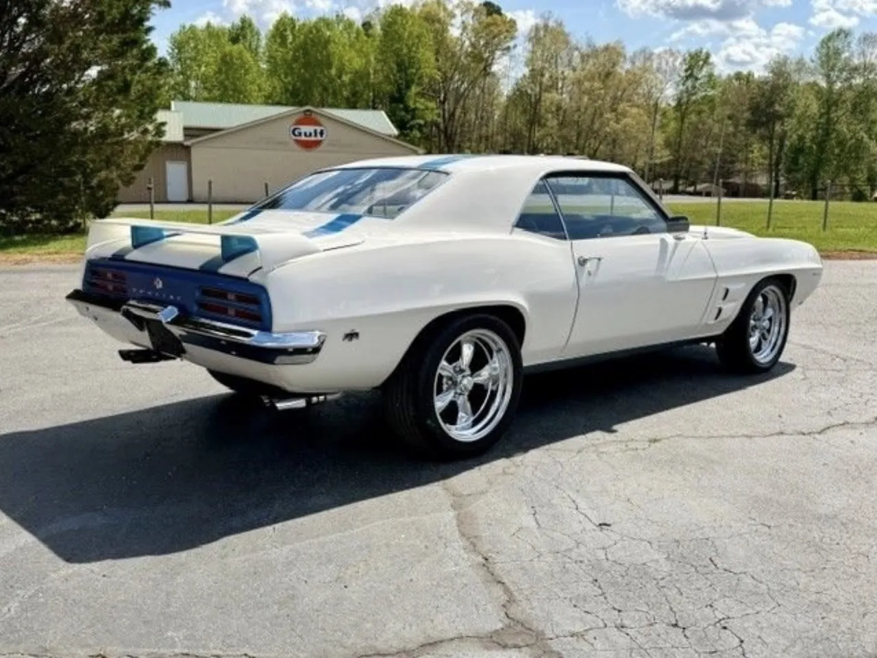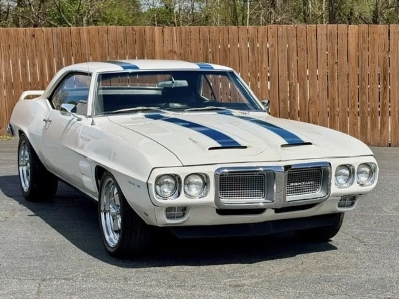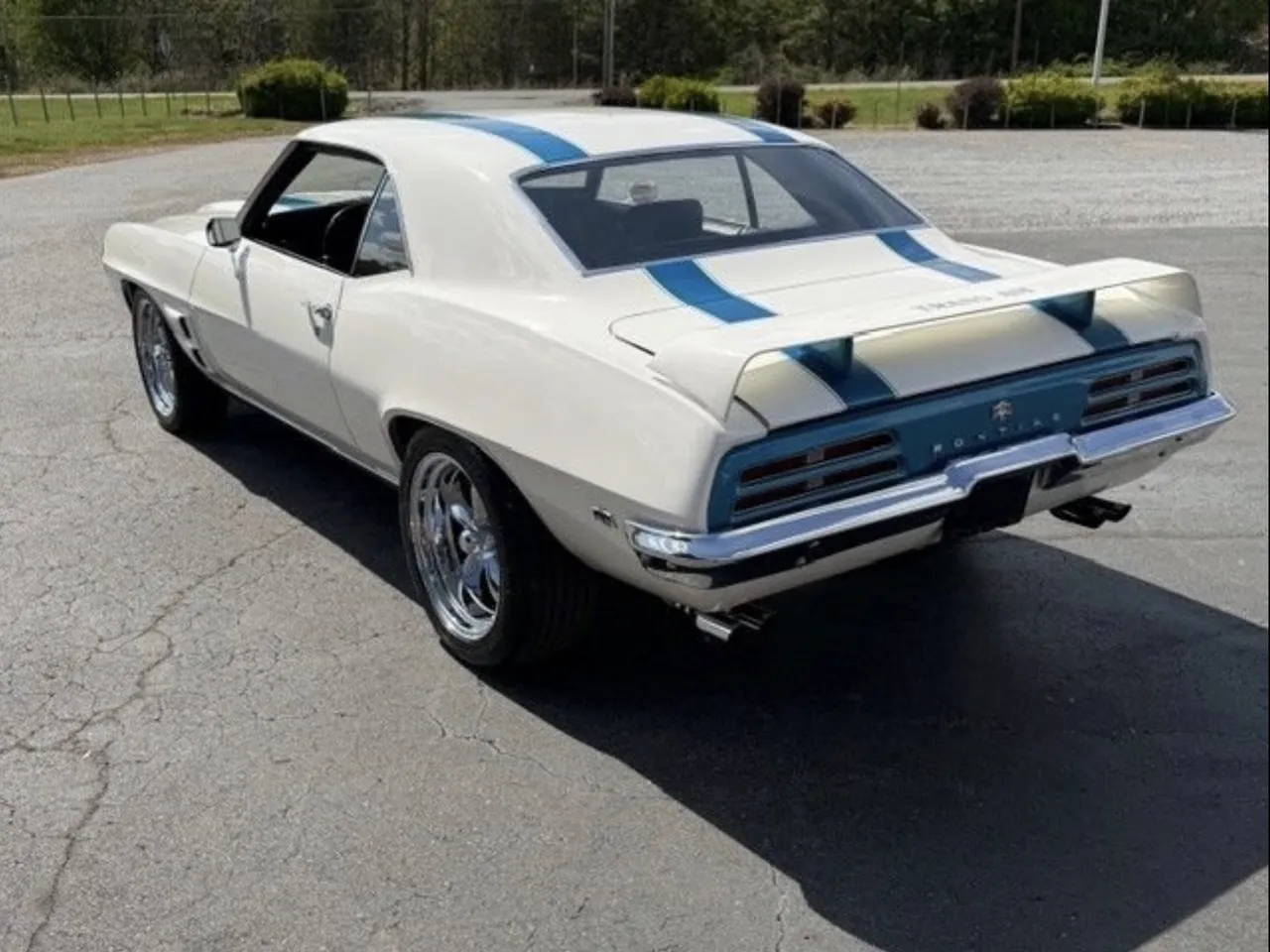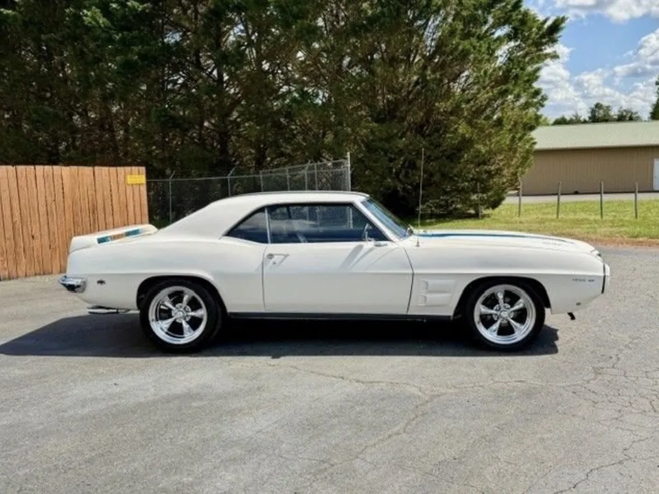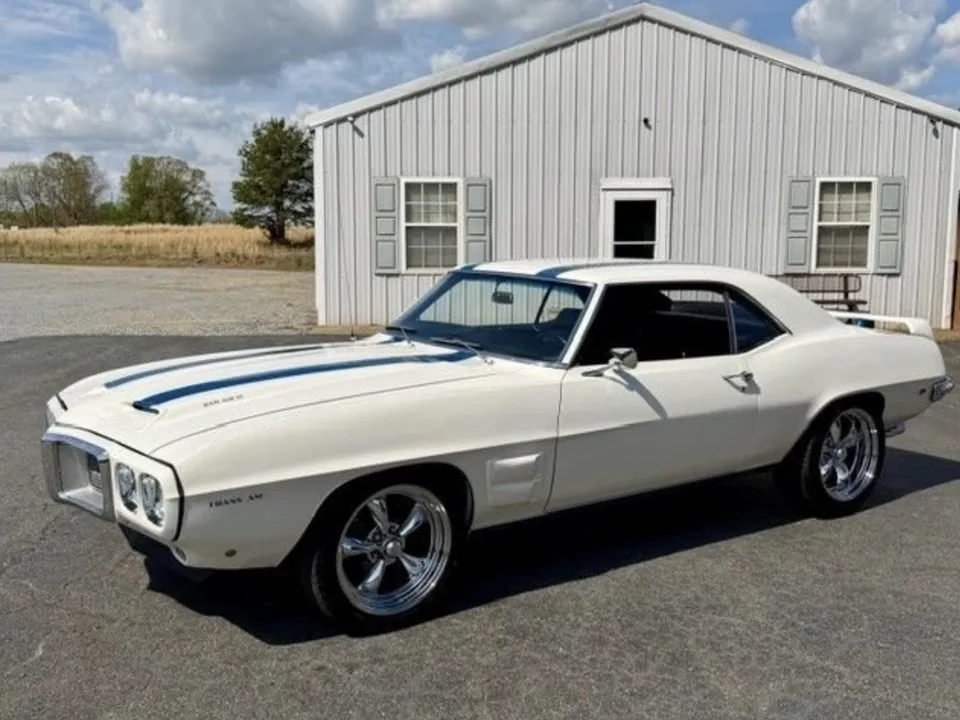 Coming Soon! 1969 Pontiac Firebird, Trans Am tribute, stunning Cameo white with Liberty Blue Trans Am stripes, black interior, 400 ci engine, automatic transmission, power steering, power disc brakes, bucket seats with center console, factory dash, dual exhaust, factory 10 bolt rear axle, chrome American Racing Torque Thrust wheels, Trans Am trim & spoiler, Pontiac Power! $53,900