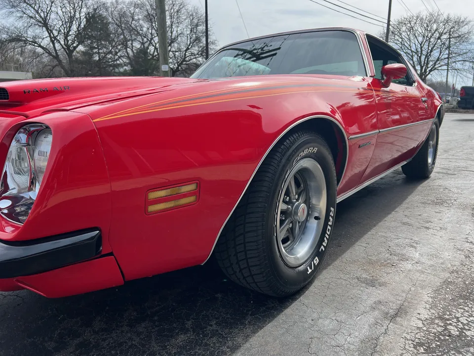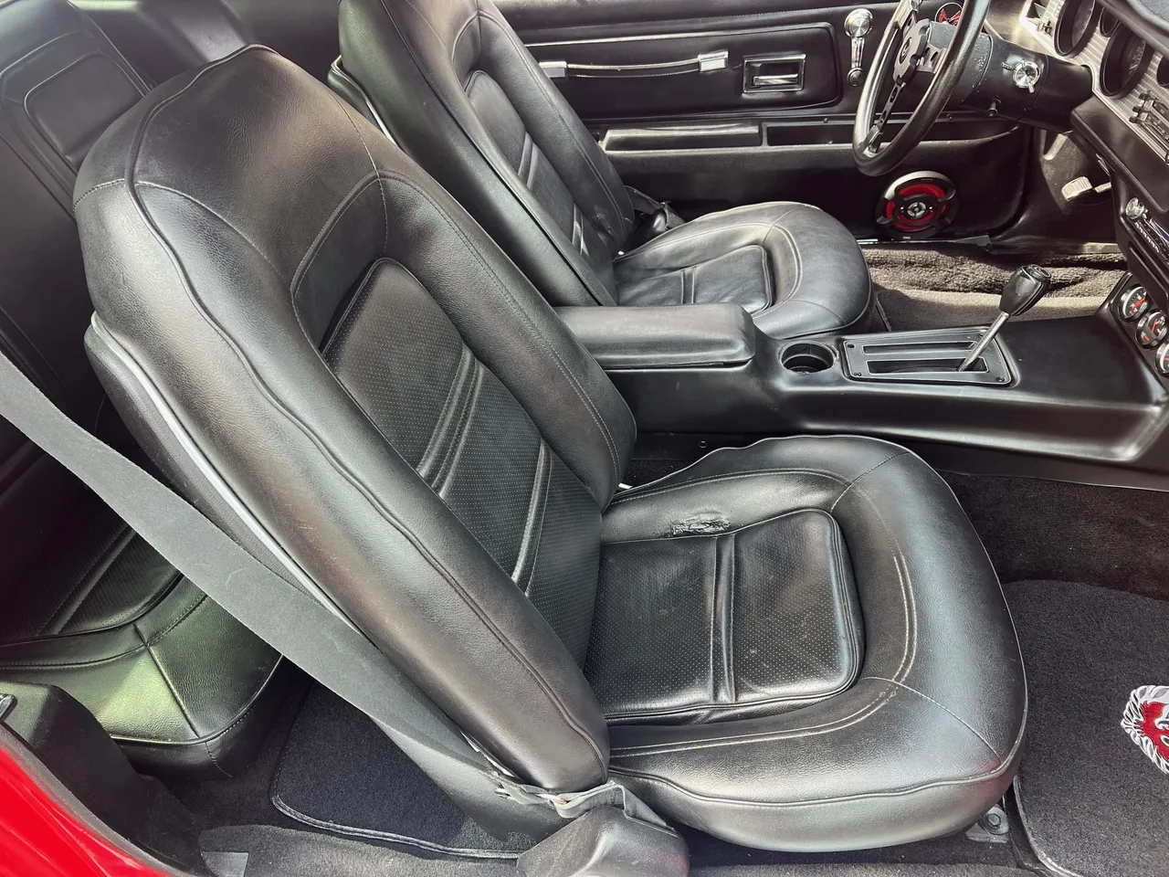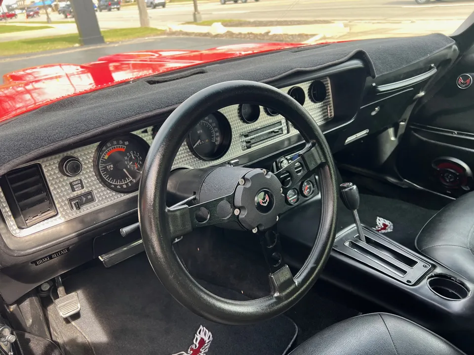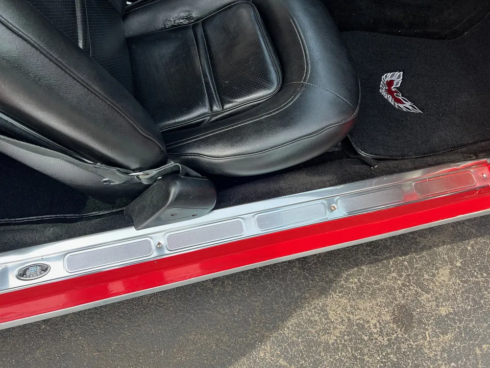 PHS Documented, factory U code Formula, Buccaneer red paint, black vinyl interior, era correct factory Y-code 455 ci engine, 4 bbl, factory intake & exhaust manifolds, Ram Air hood & air cleaner, chrome valve covers, HEI distributor, mild camshaft, power steering, power front disc brakes, factory air conditioning, 400 turbohydramatic transmission, bucket seats with center console, factory steering wheel, factory dash, custom sound system, remote drivers mirror, Flowmaster dual exhaust, 10 bolt rear axle with 3.55 gear, front & rear sway bars, 235/60R15 Cooper tires, 15” Rally II wheels, dual sport mirrors, factory spoilers, original owner’s manual & brochure, Pontiac Power!